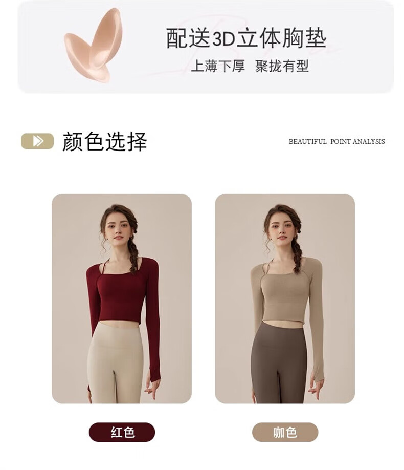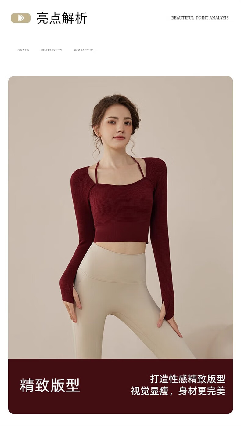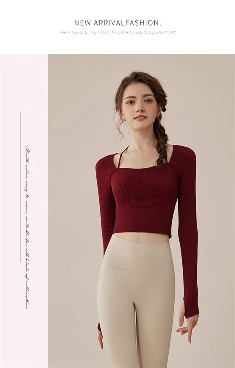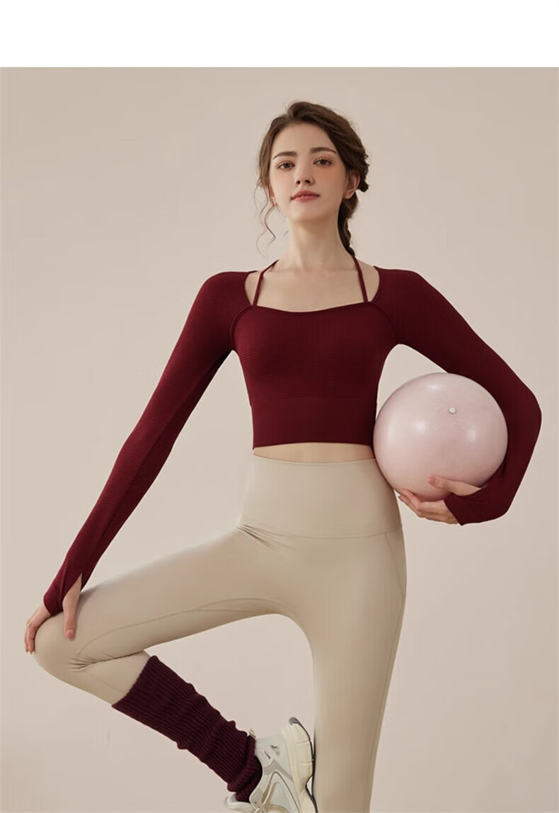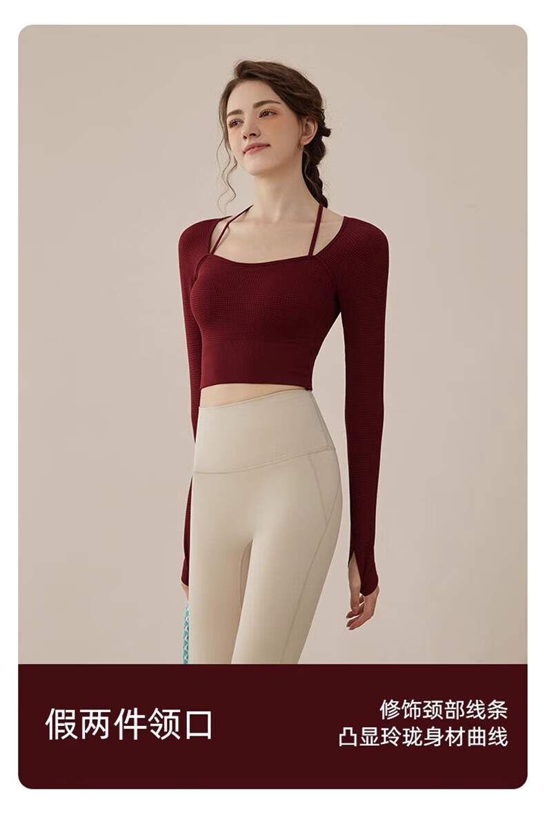 Youyou Yoga Wear Women's Sports 2025 Spring and Summer New Breathable Quick-Drying Pilates Training Wear Fitness Long Sleeve 34028 Burgundy Sports/Fitness/Yoga M (Recommended weight 100-110 Jin Jin equals 0.5 kg)