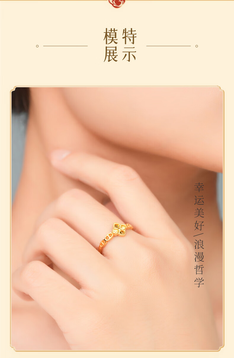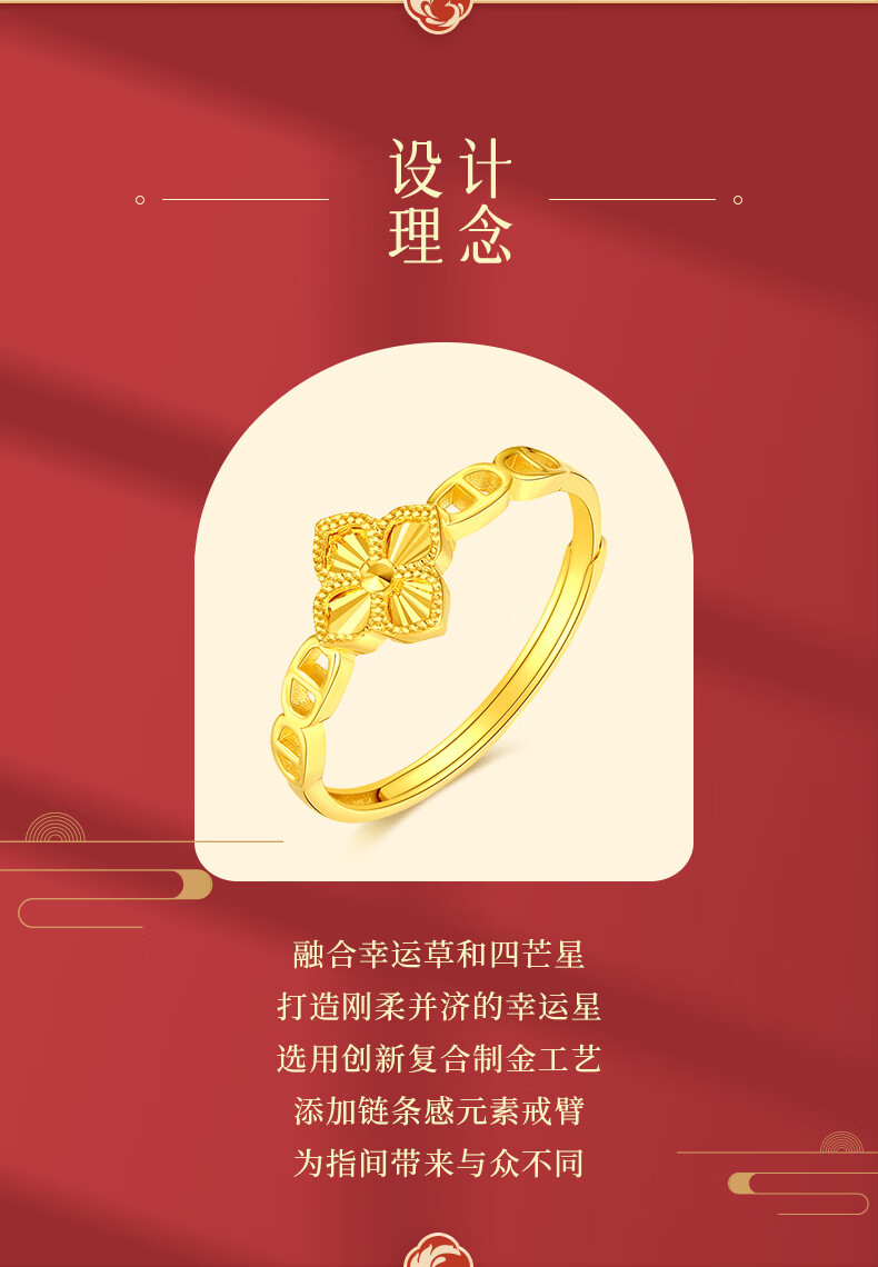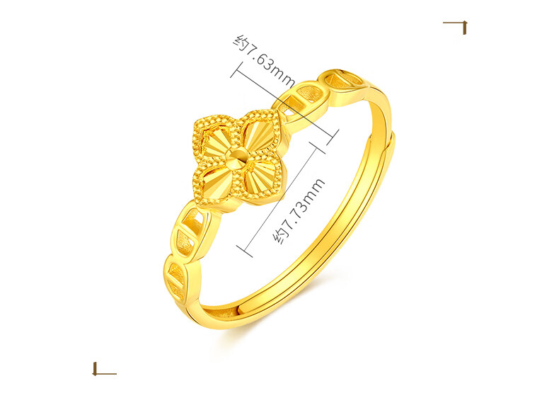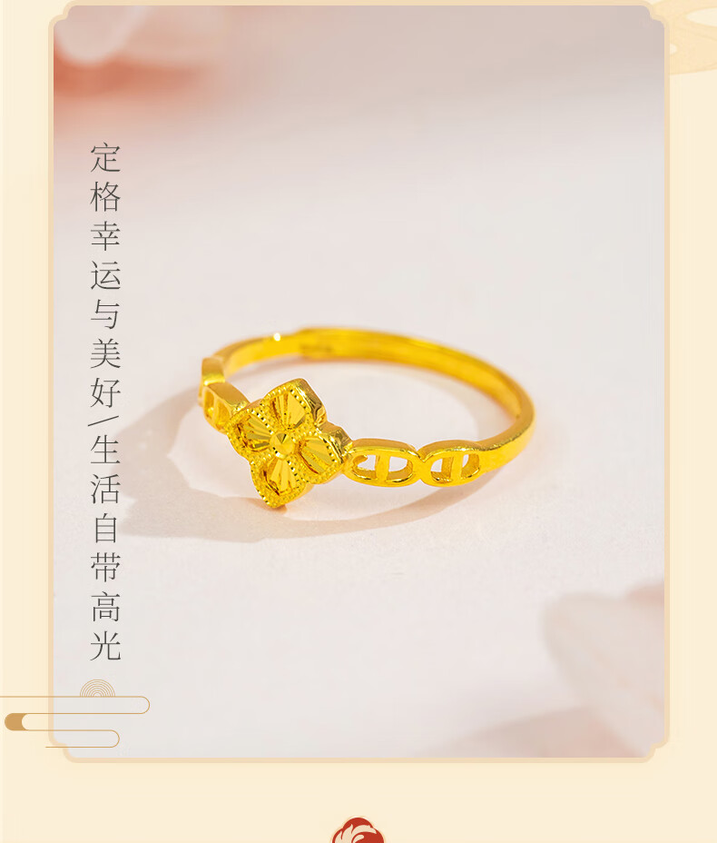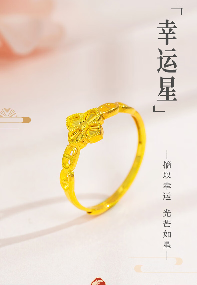 Lao Fengxiang gold lucky star four-leaf clover jewelry ring women's pure gold 999 female ring birthday gift for girlfriend and wife pure gold ring about 2.16 grams brand gift box
