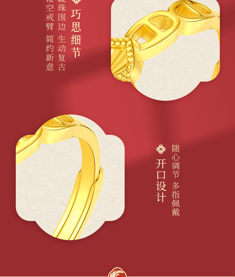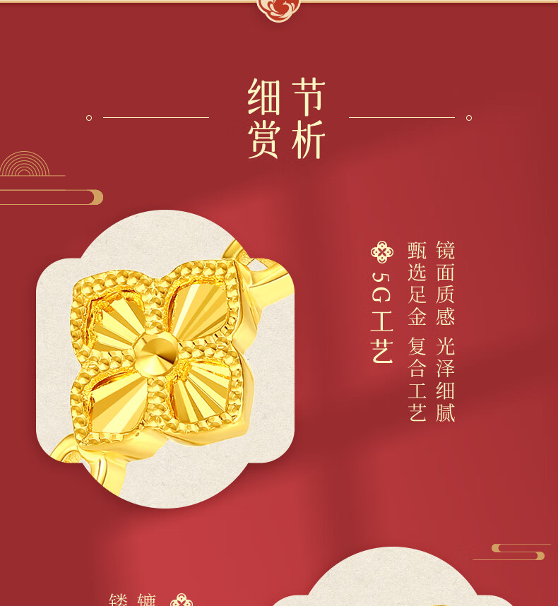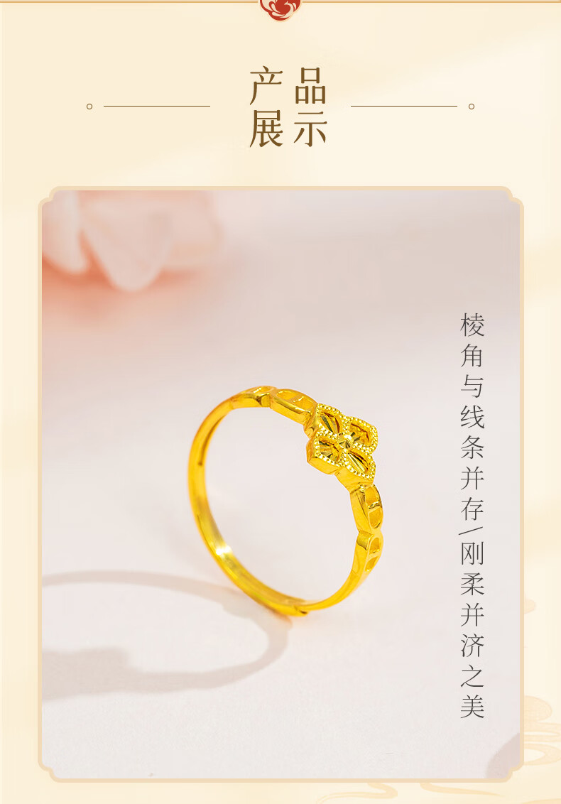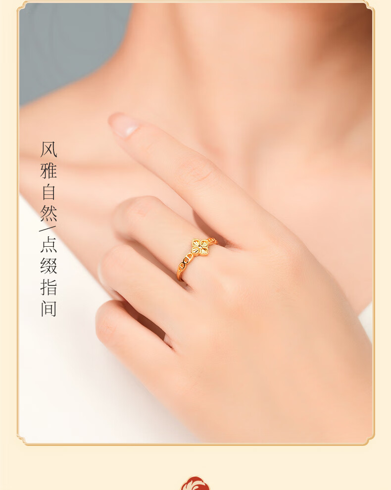 Lao Fengxiang gold lucky star four-leaf clover jewelry ring women's pure gold 999 female ring birthday gift for girlfriend and wife pure gold ring about 2.16 grams brand gift box