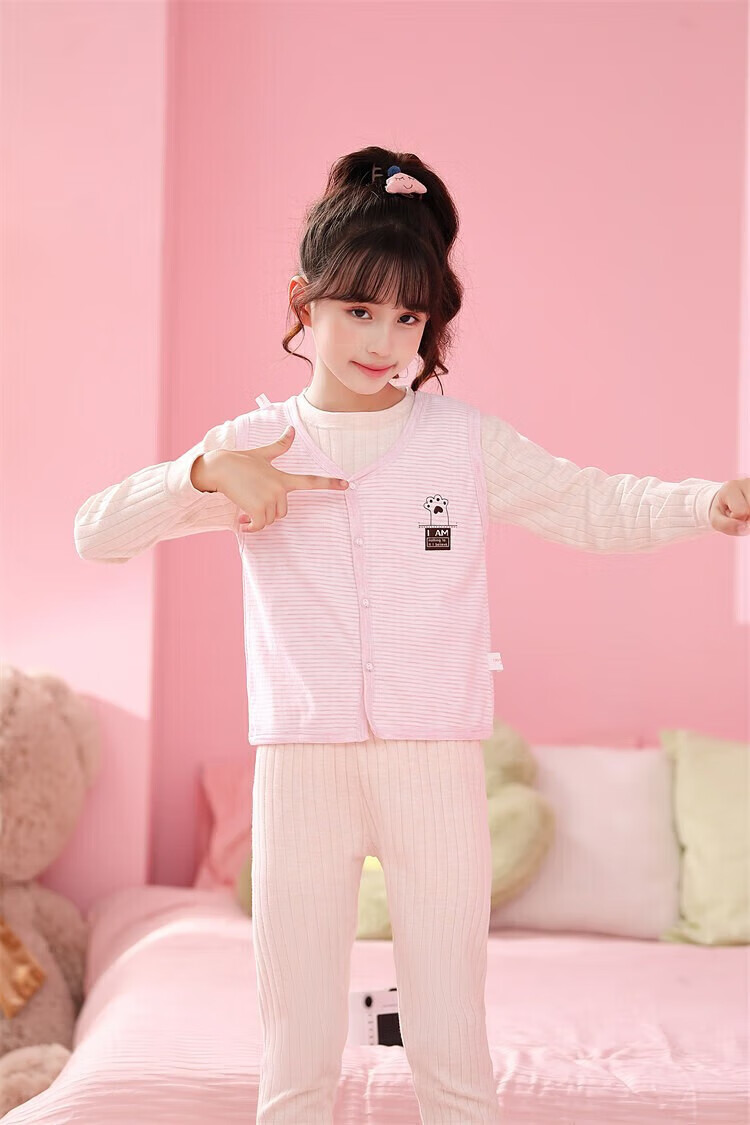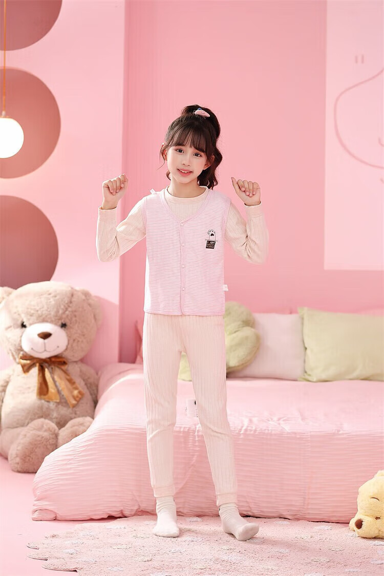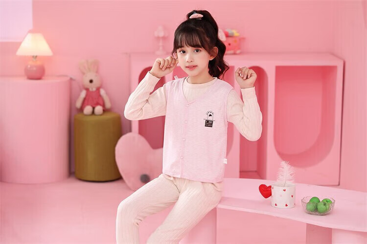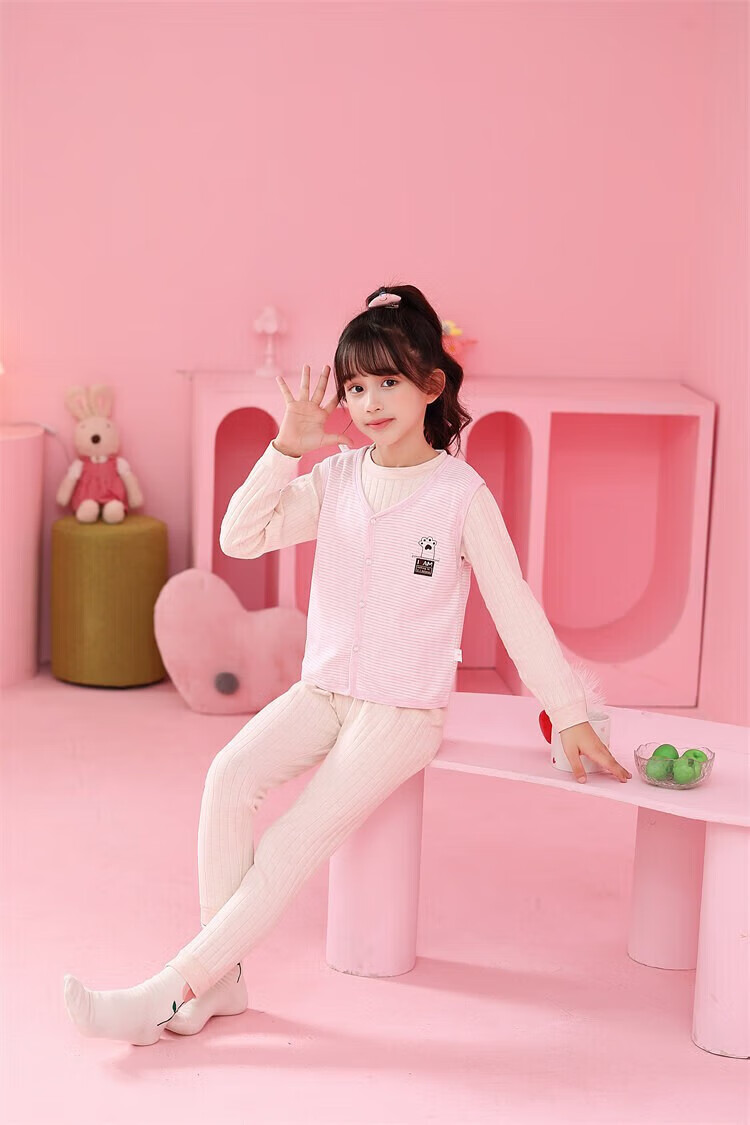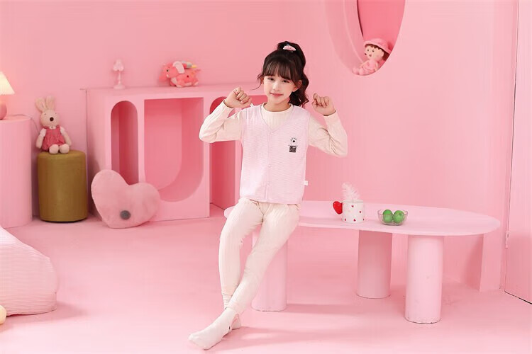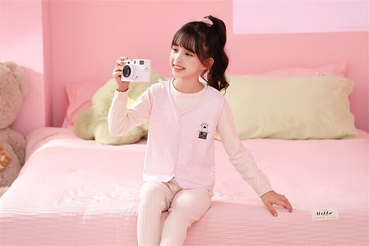 Sweet Girly Thermal Underwear Children's V-Neck Single-piece Vest Medium and Large Boys' Warm Light Pink S