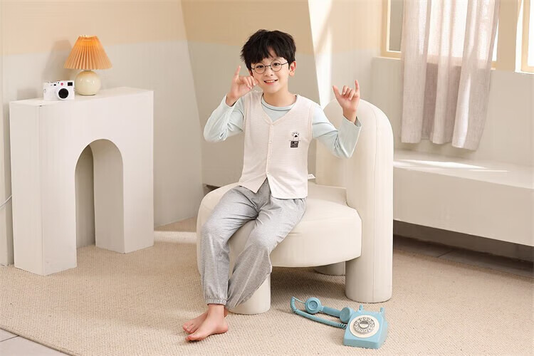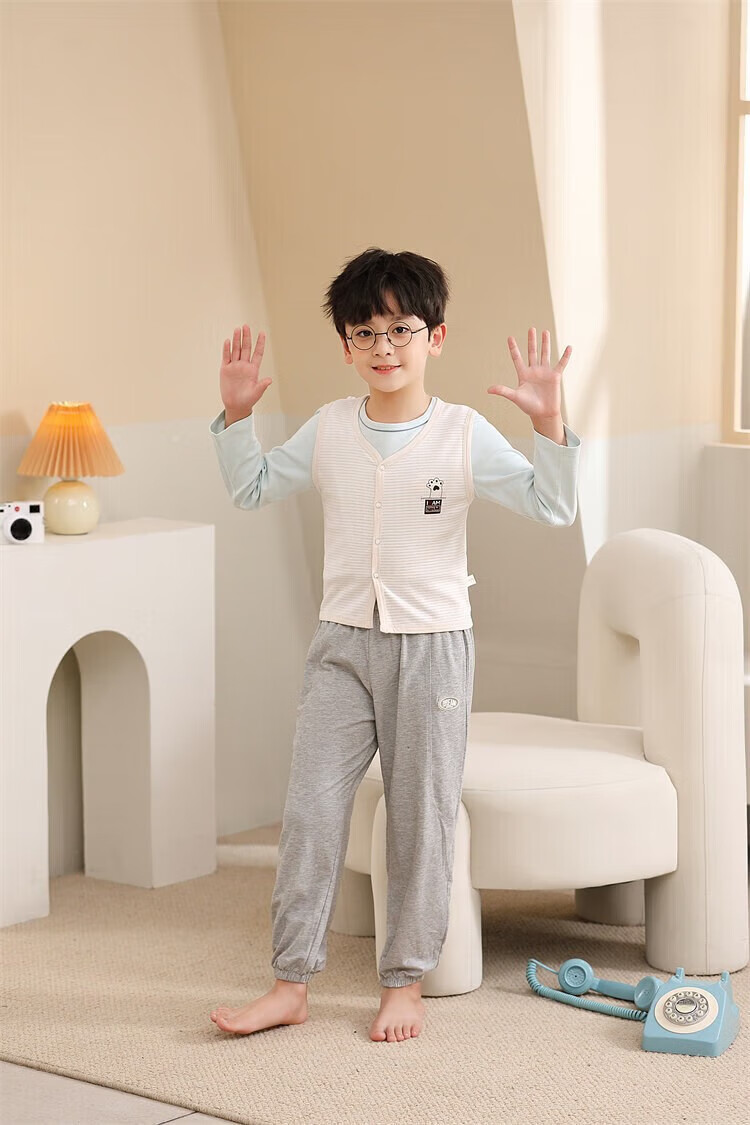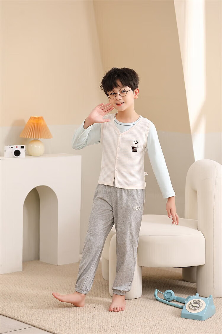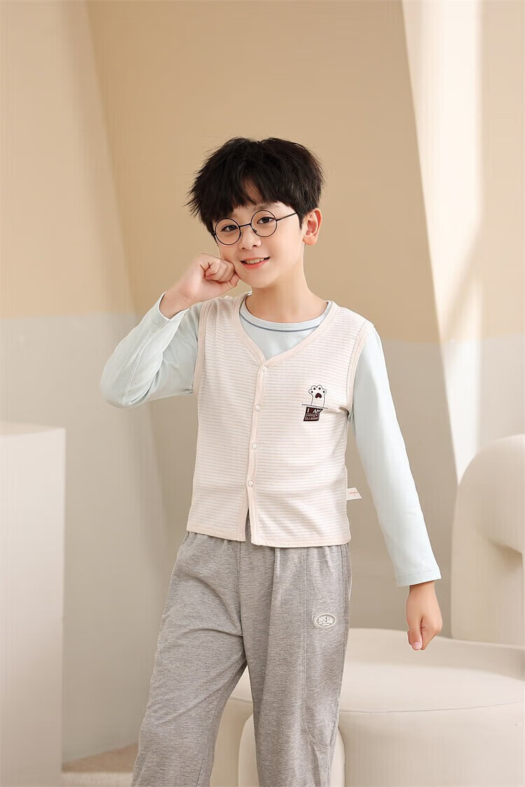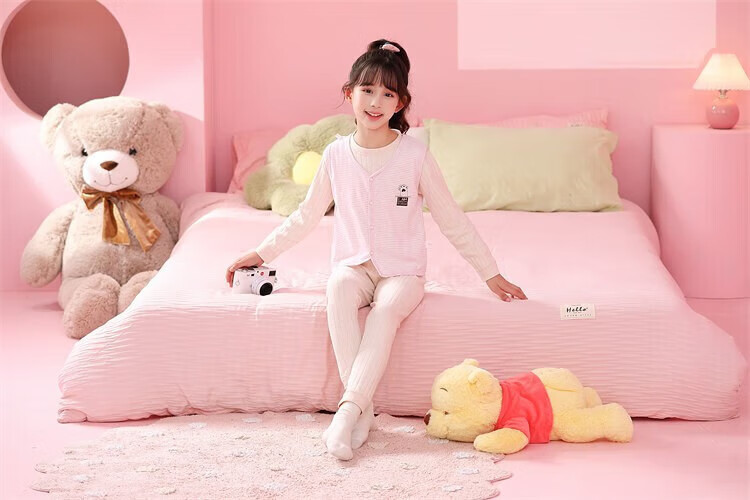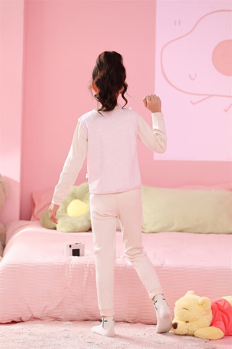 Sweet Girly Thermal Underwear Children's V-Neck Single-piece Vest Medium and Large Boys' Warm Light Pink S