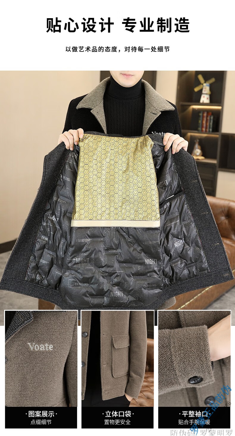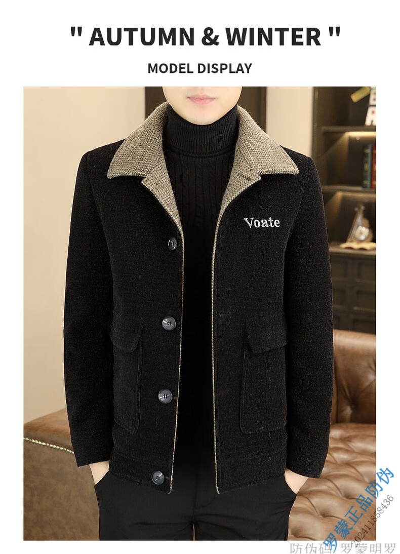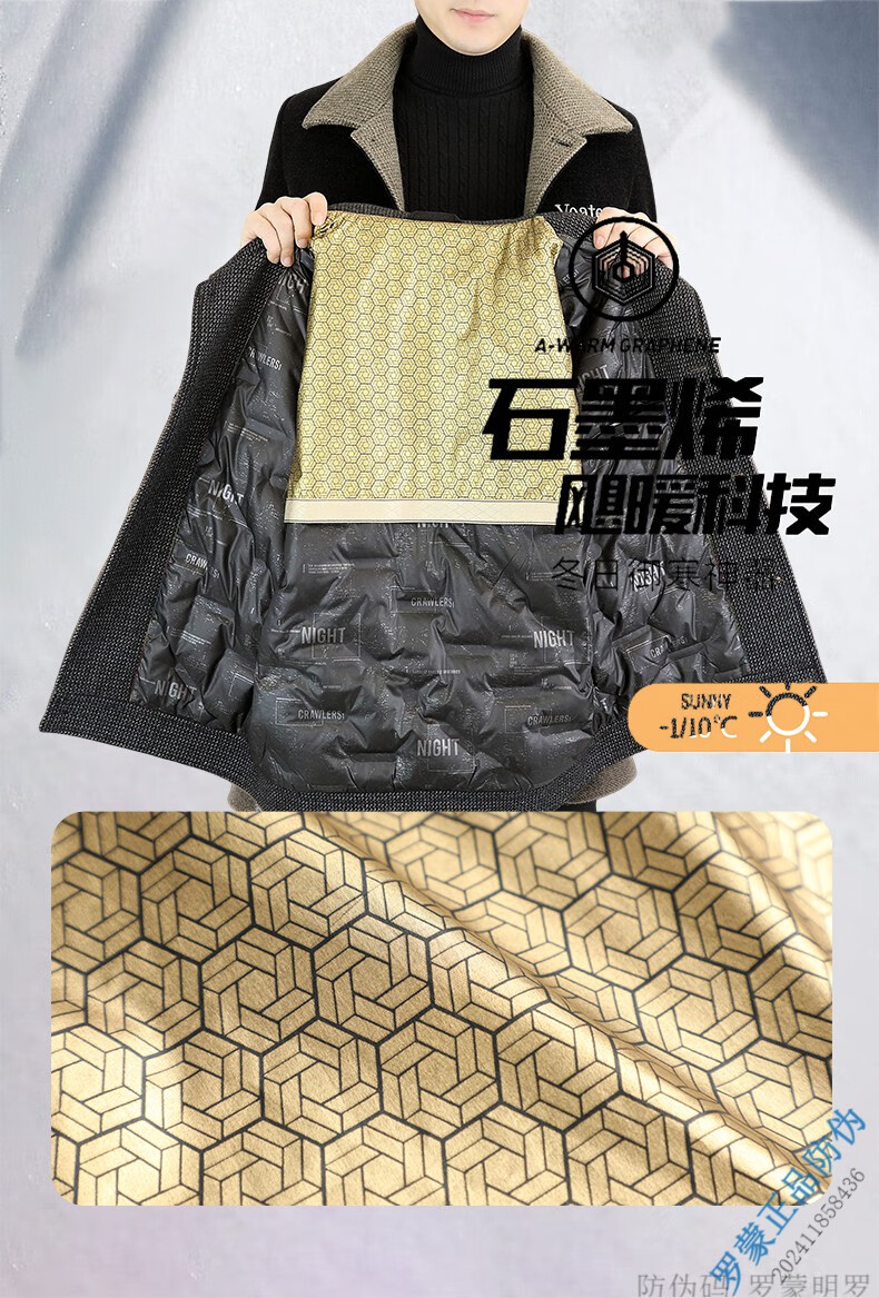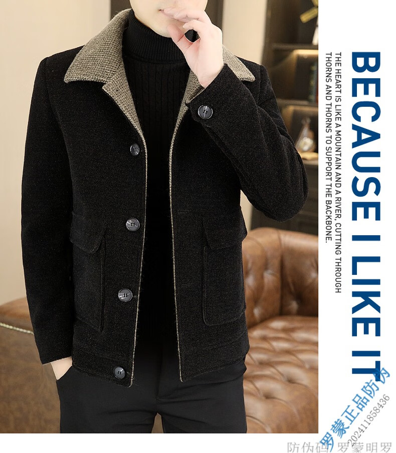 ROMON high-end winter gold mink jacket men's lapel thickened handsome woolen coat fashionable warm down jacket black M