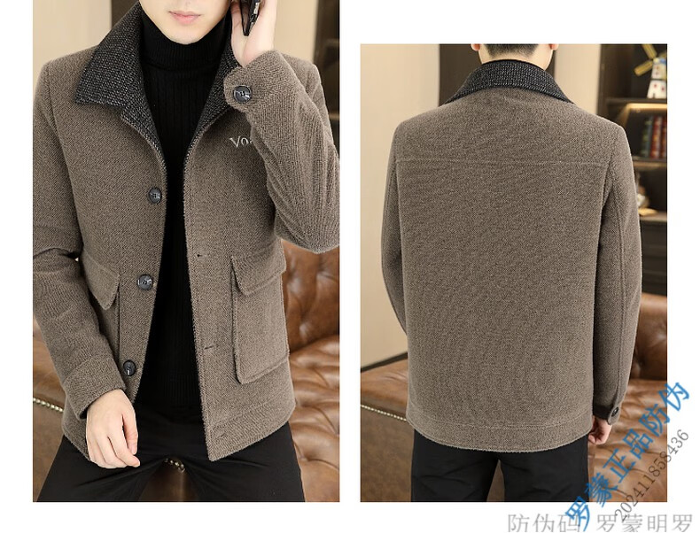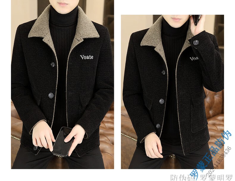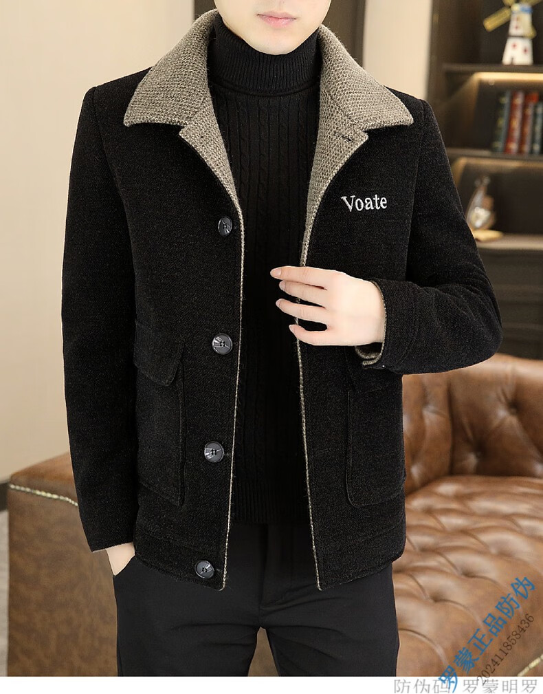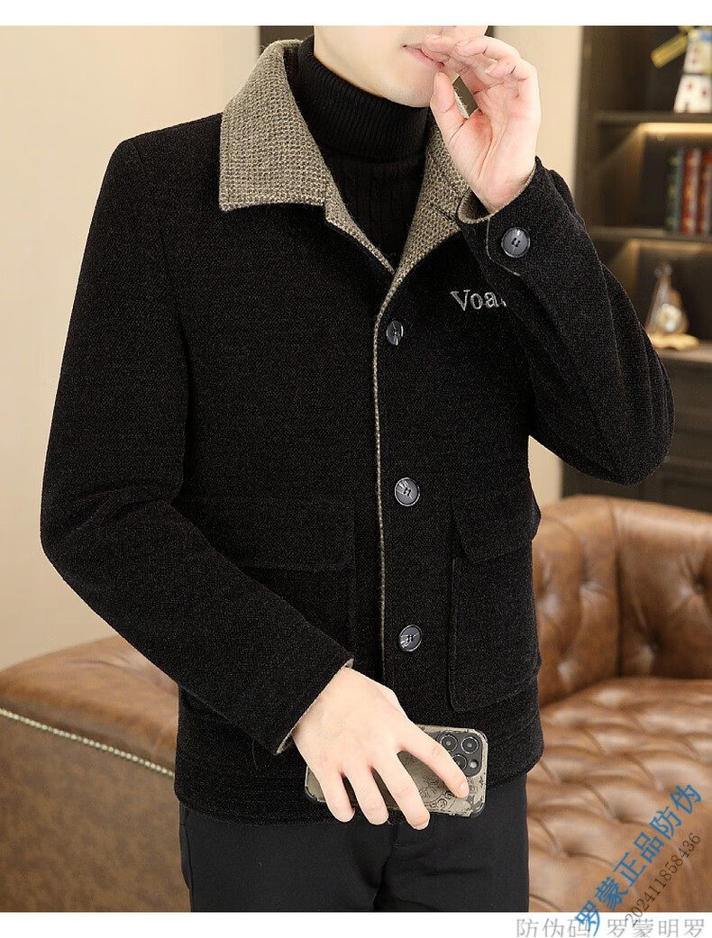 ROMON high-end winter gold mink jacket men's lapel thickened handsome woolen coat fashionable warm down jacket black M