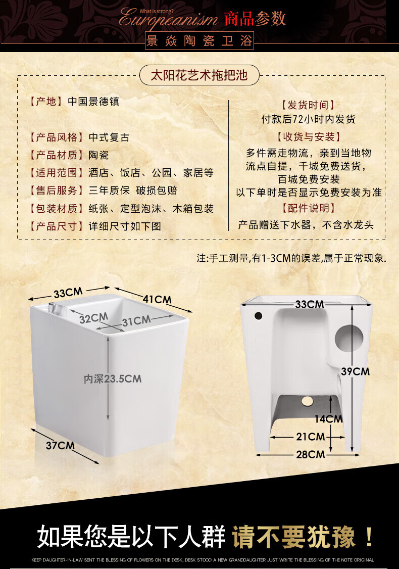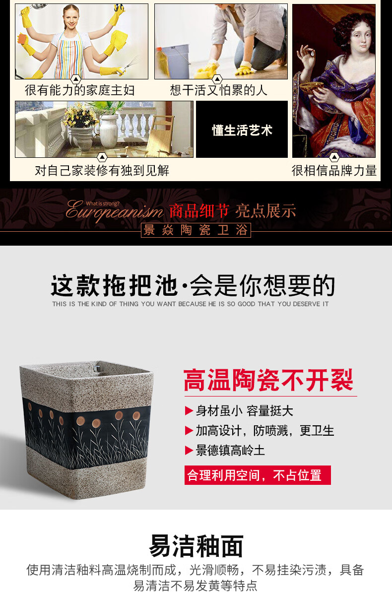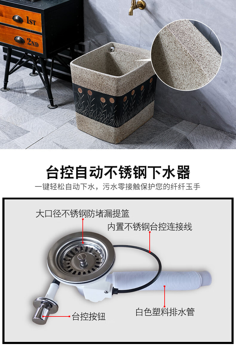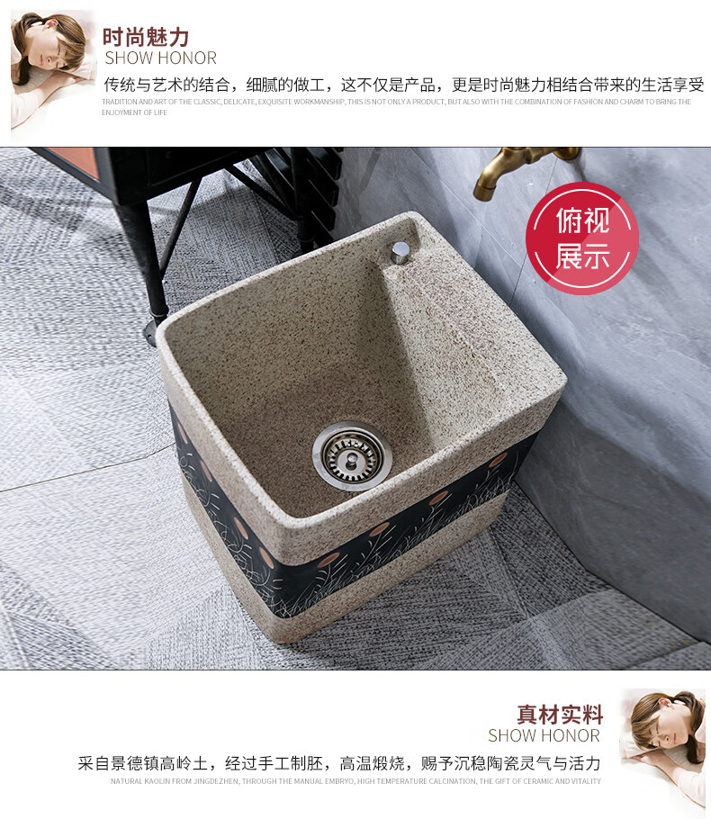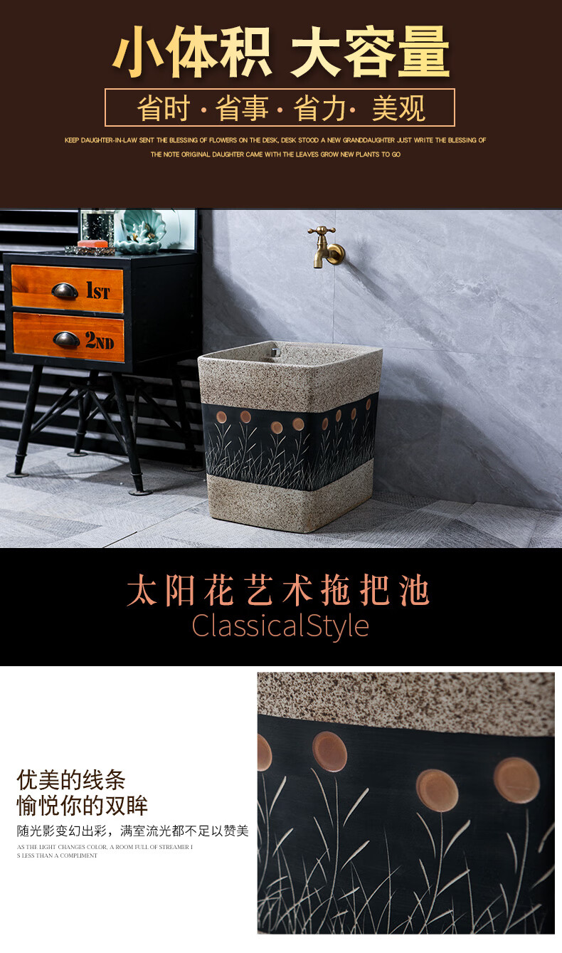 TVboop sunflower mop pool outdoor courtyard ceramic mop pool home balcony bathroom square wash mop pool mop pool three-piece set D