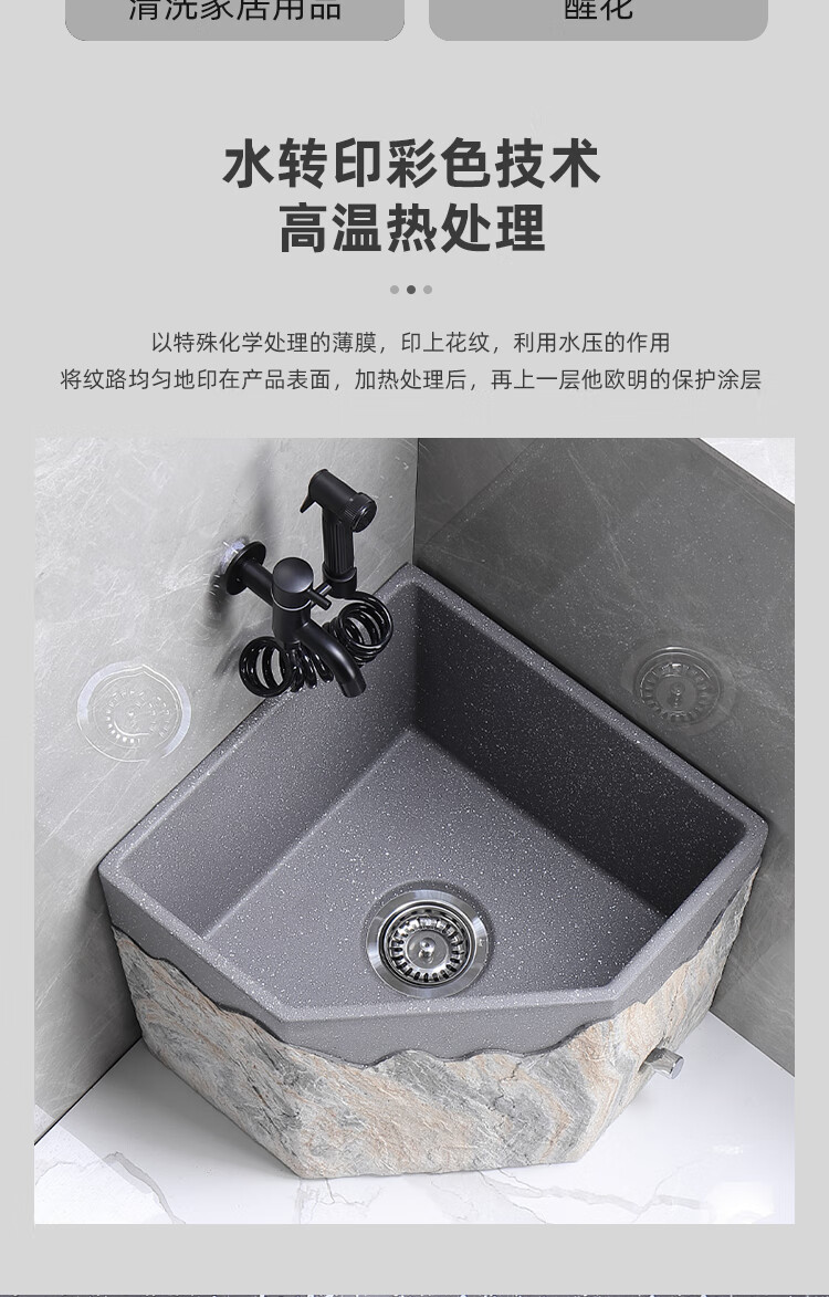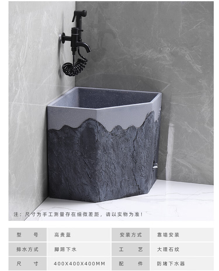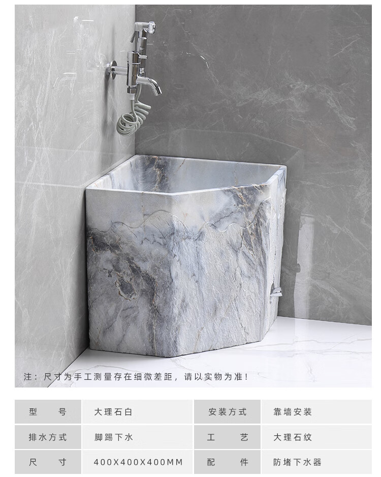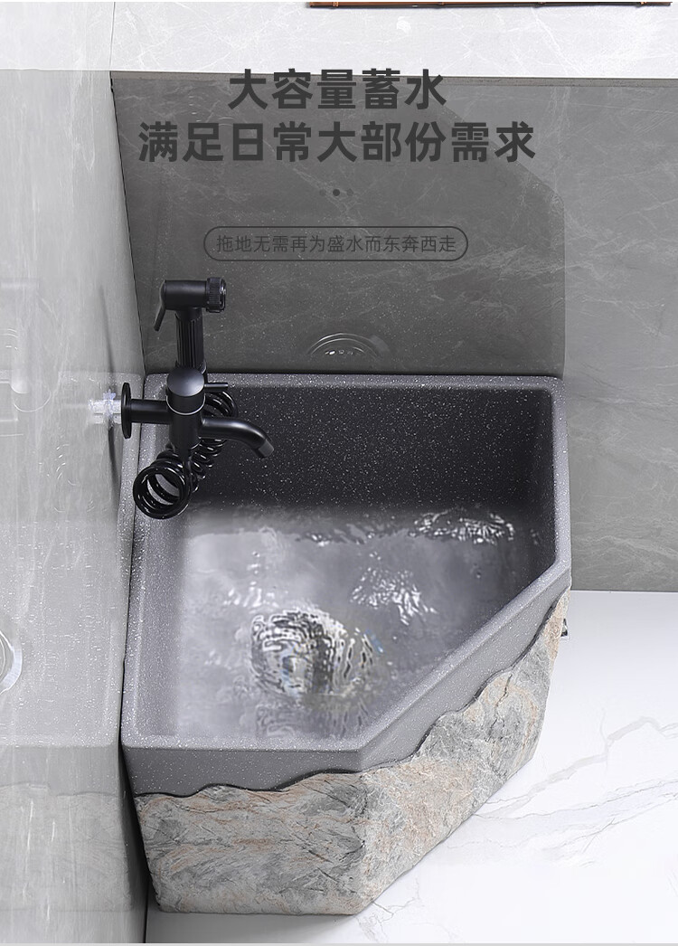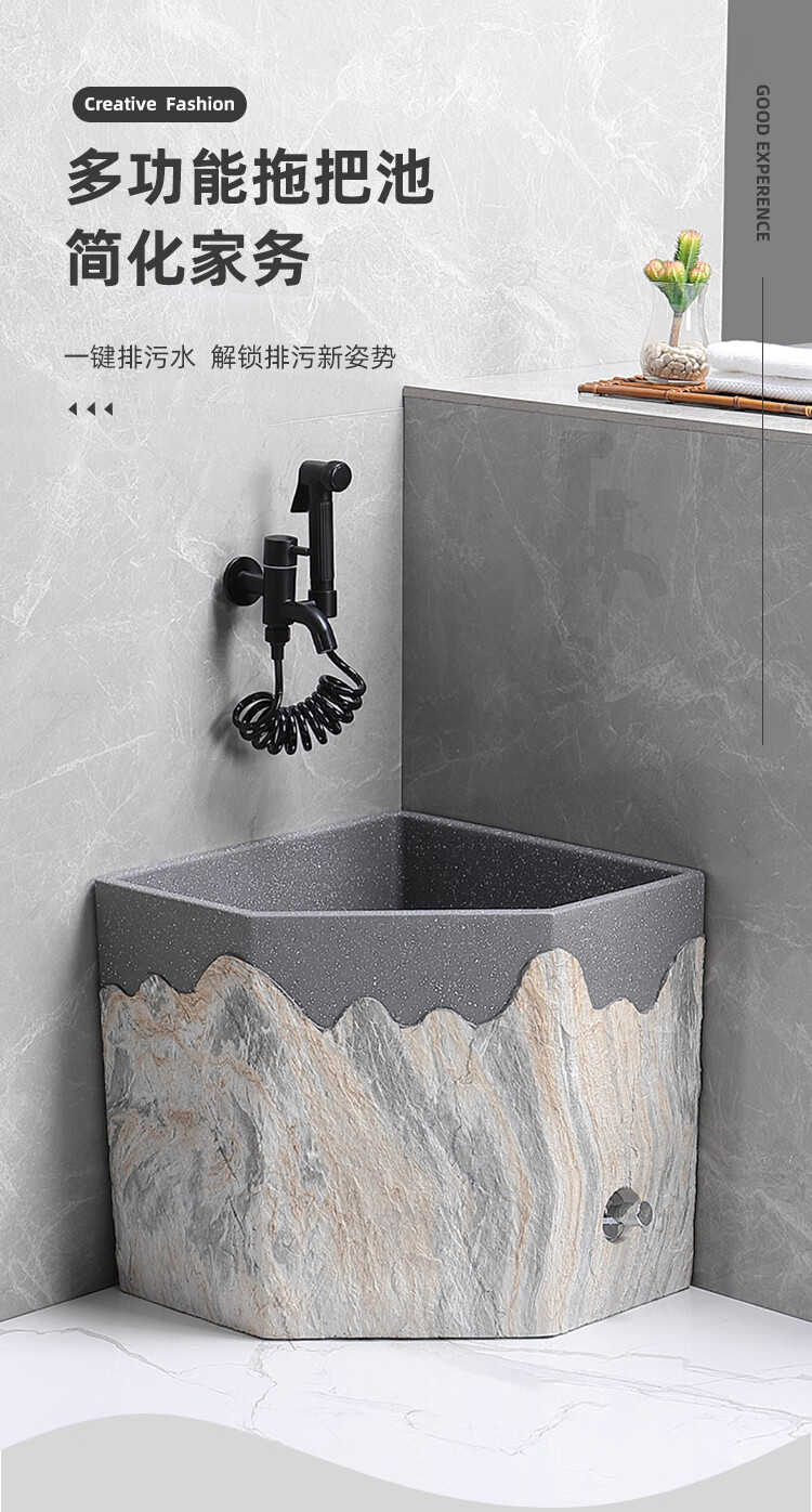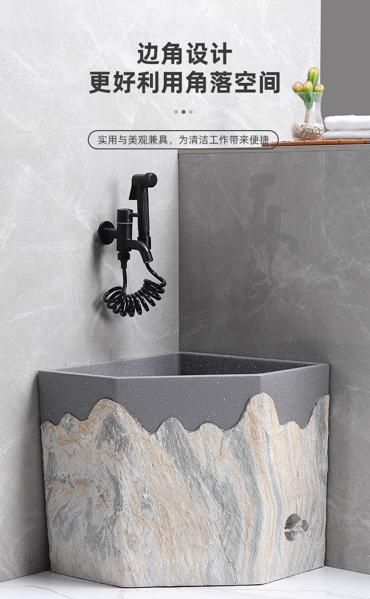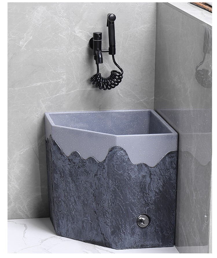 TVboop corner mop pool Chinese style balcony outdoor courtyard garden artificial stone mop pool kick drainage large size corner retro stone mop pool (without faucet)