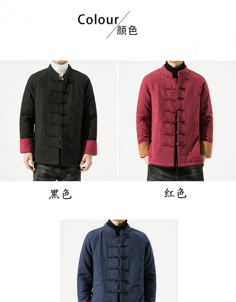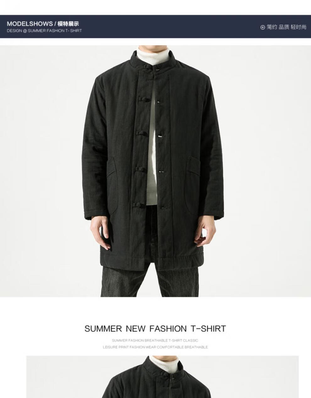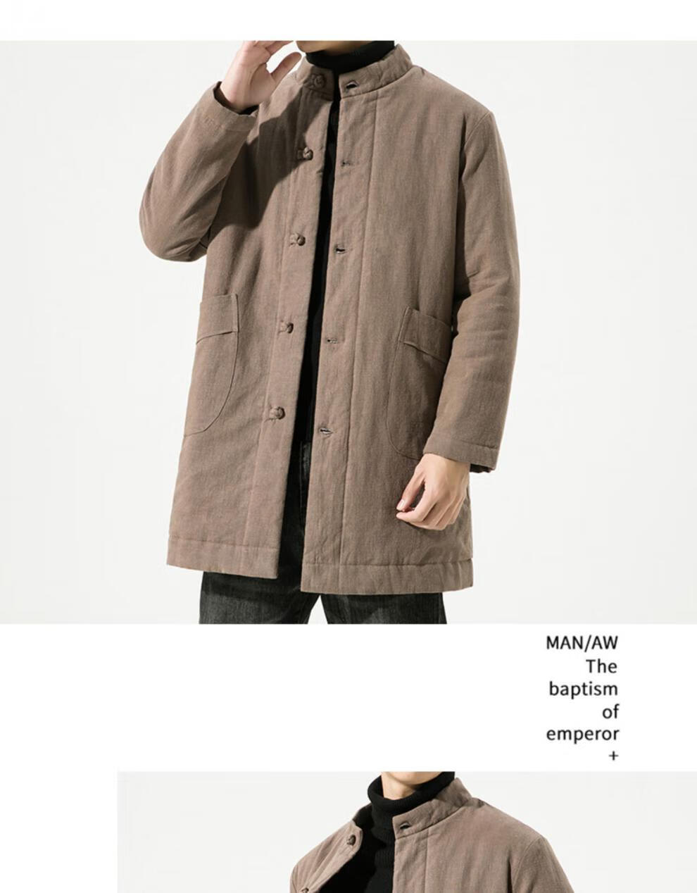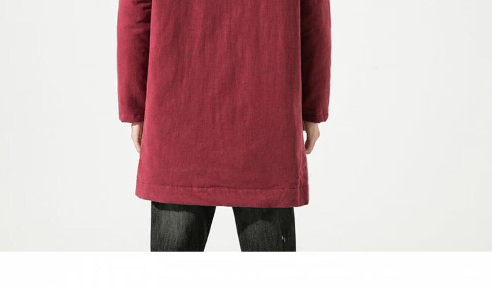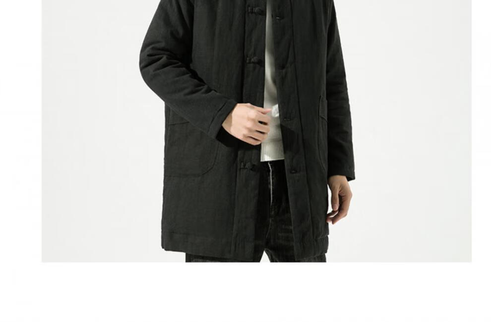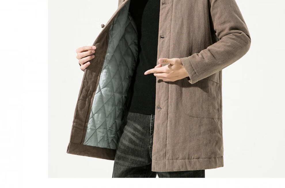 JEEP SPIRIT Winter Chinese Style Mid-Length Hanfu Men's Loose Cotton Clothes Linen Tang Suit Retro Style Cotton Clothes Thickened Cotton Jacket Brown Color 3XL