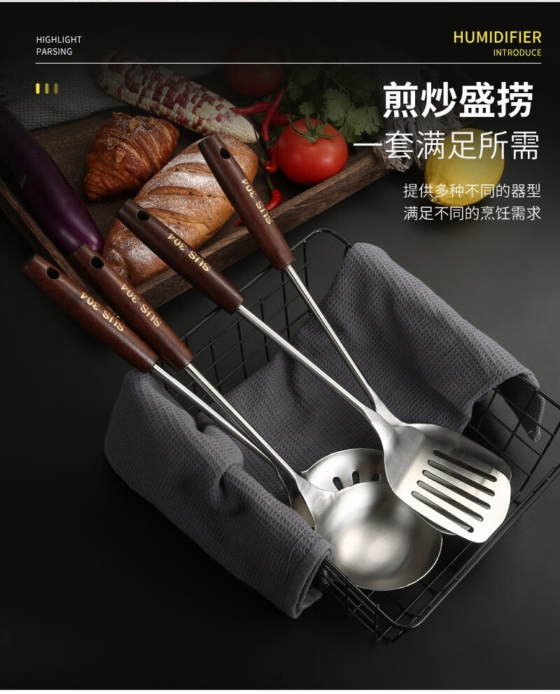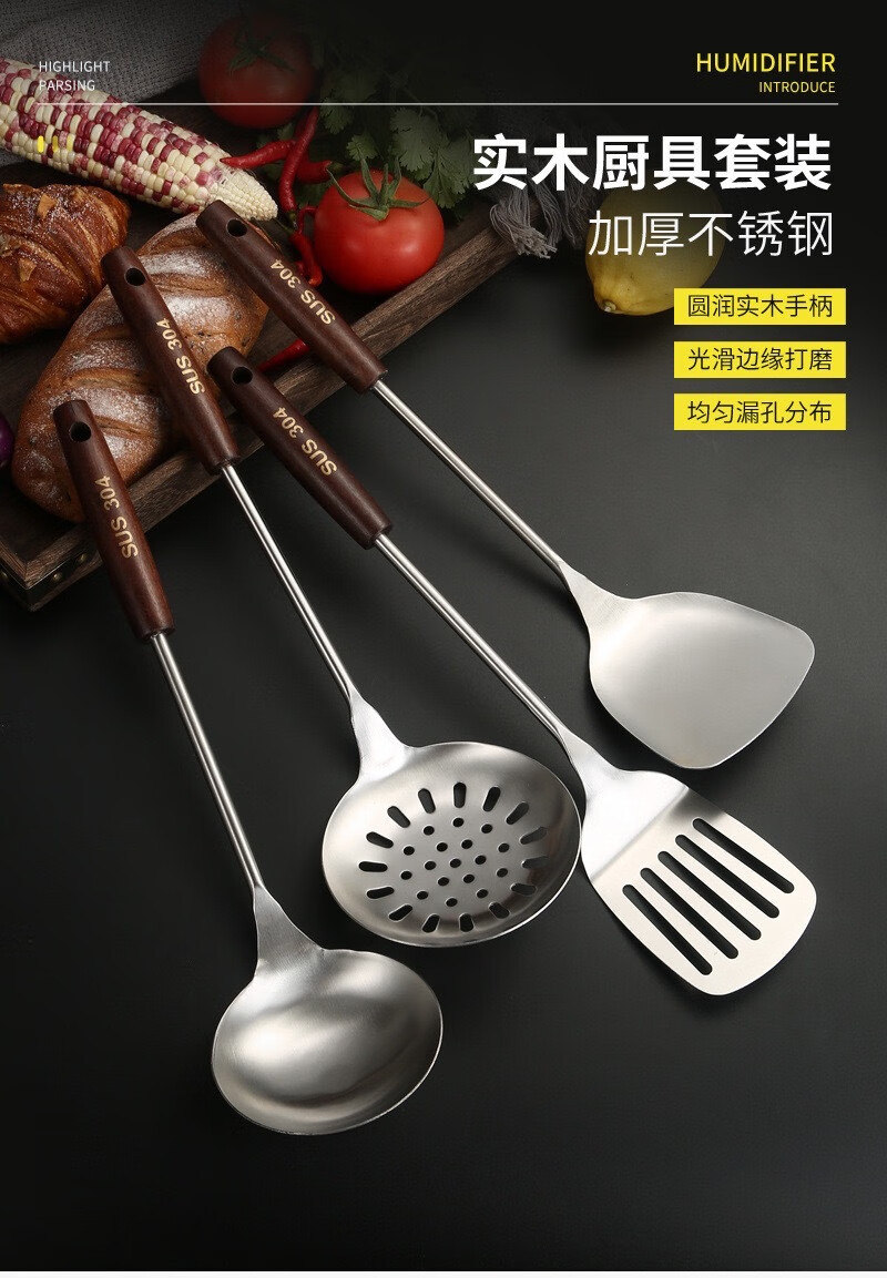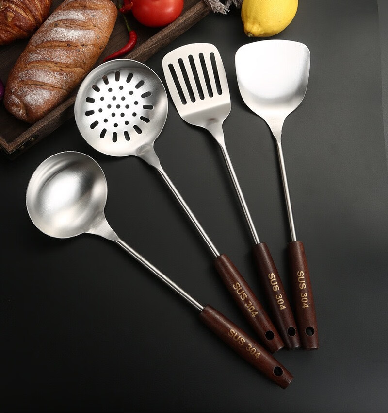 Jidaocook304 spatula household kitchen cooking spatula colander wooden handle kitchenware set food grade thickened 304 stainless steel spatula