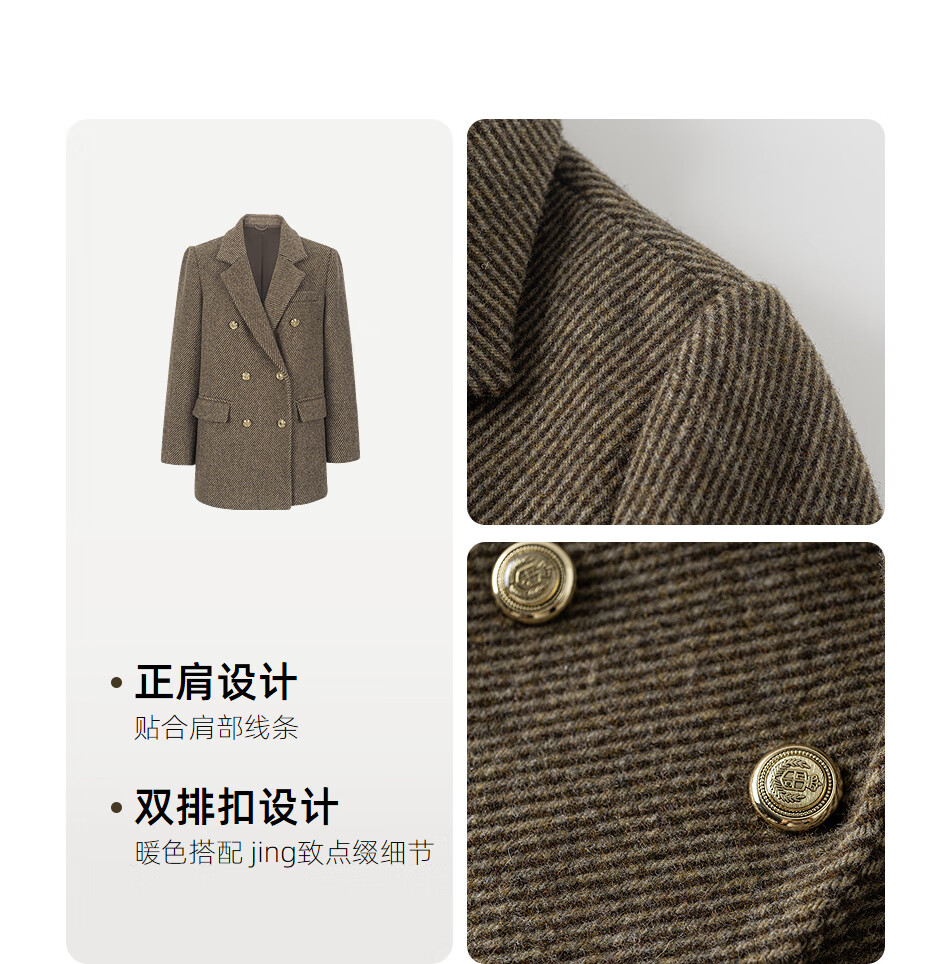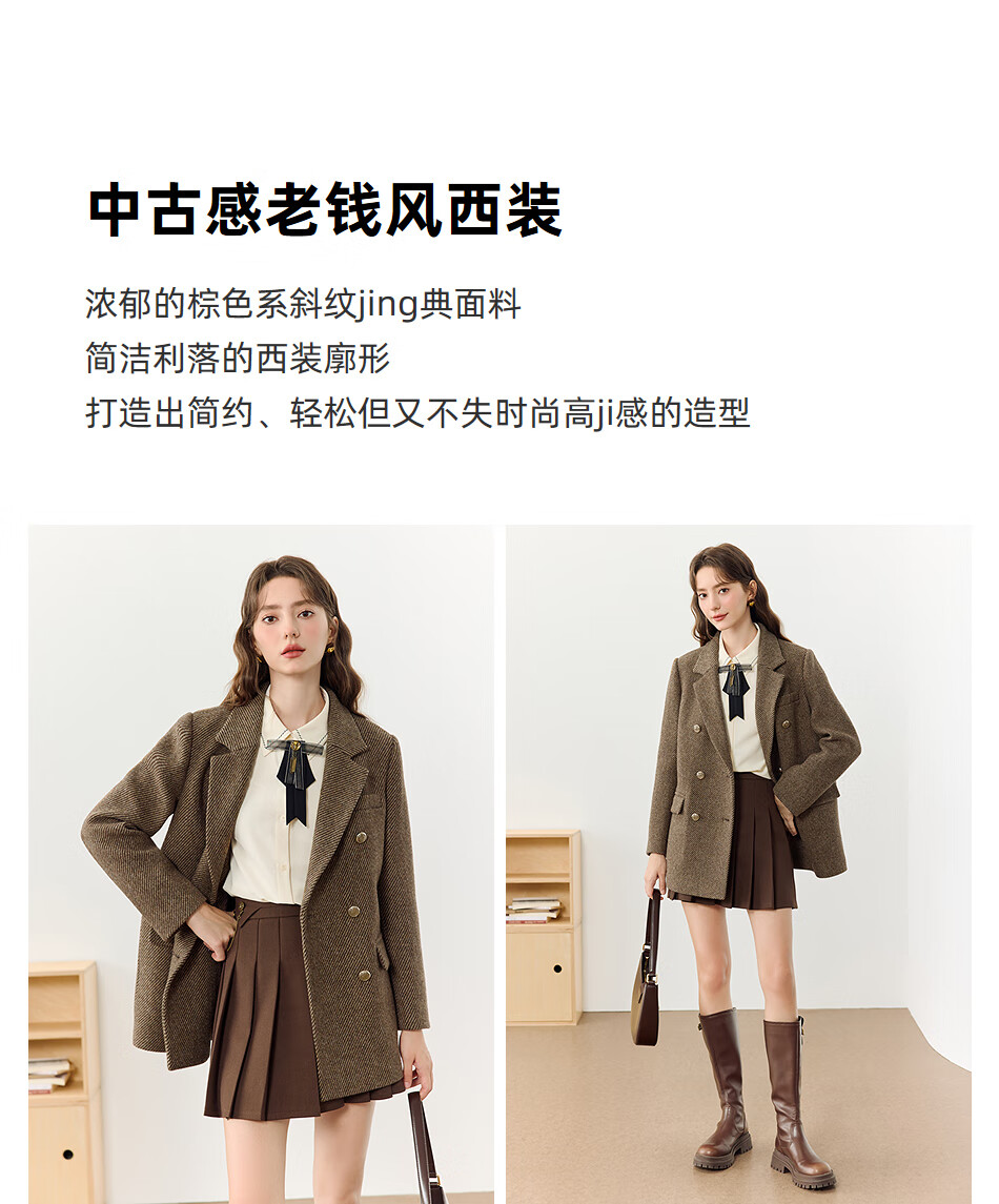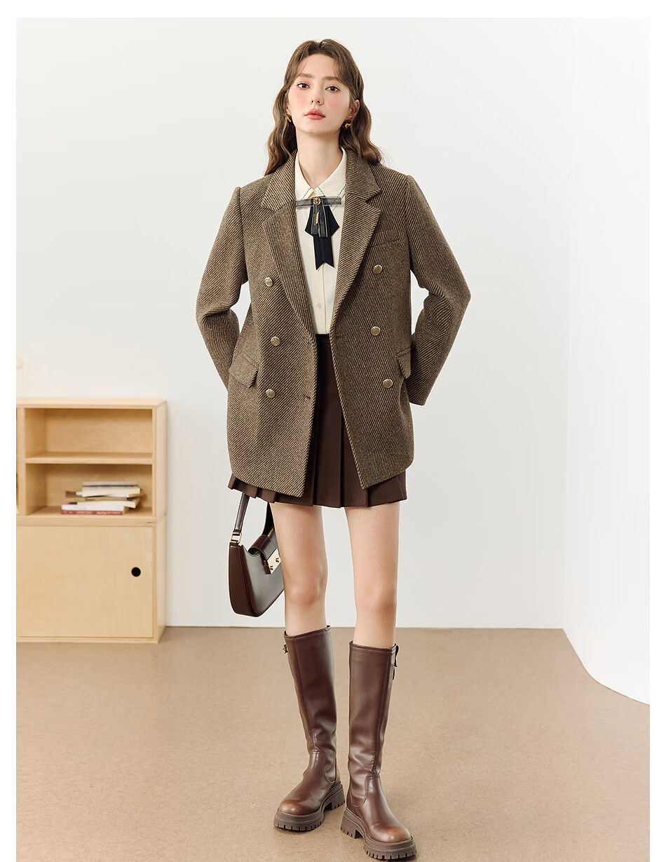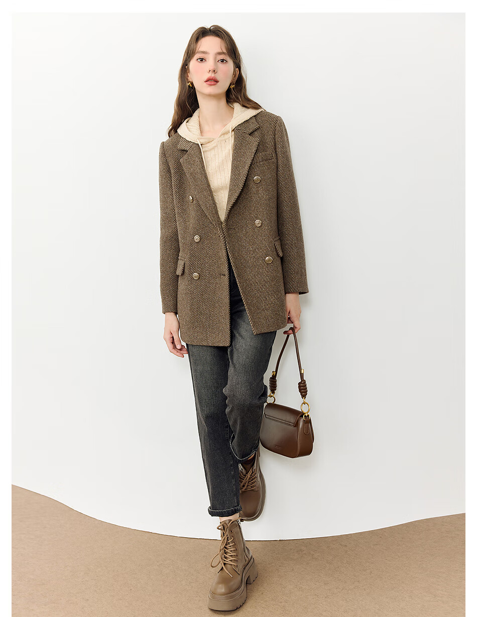 KBNE all wool old money style suit jacket for women in autumn and winter new style lazy high-end casual suit for women brown M