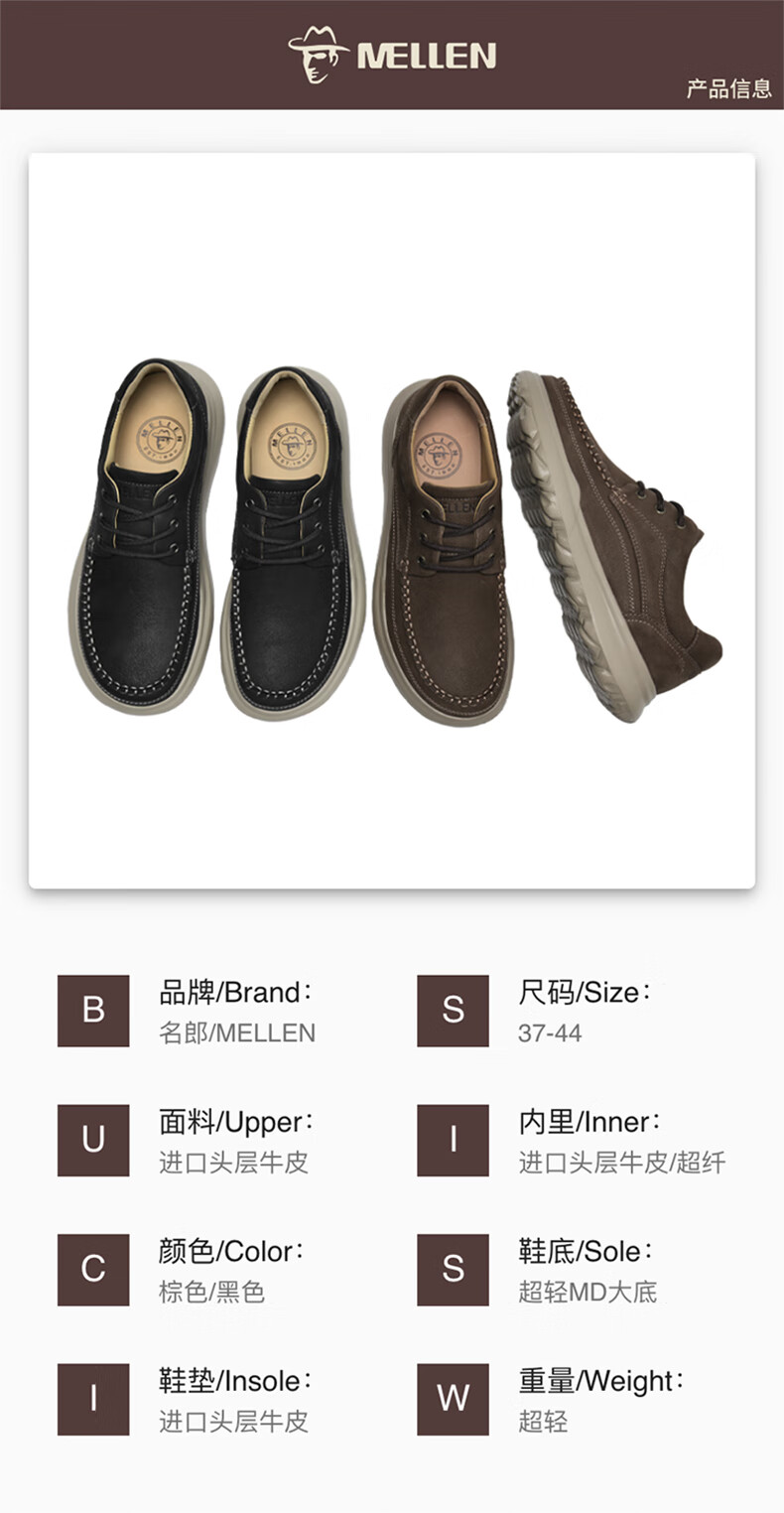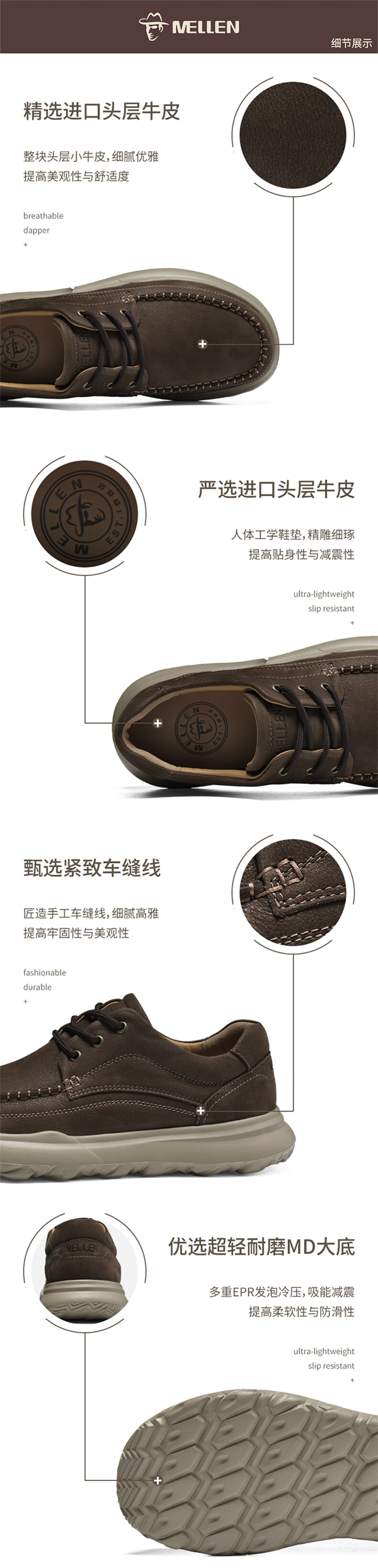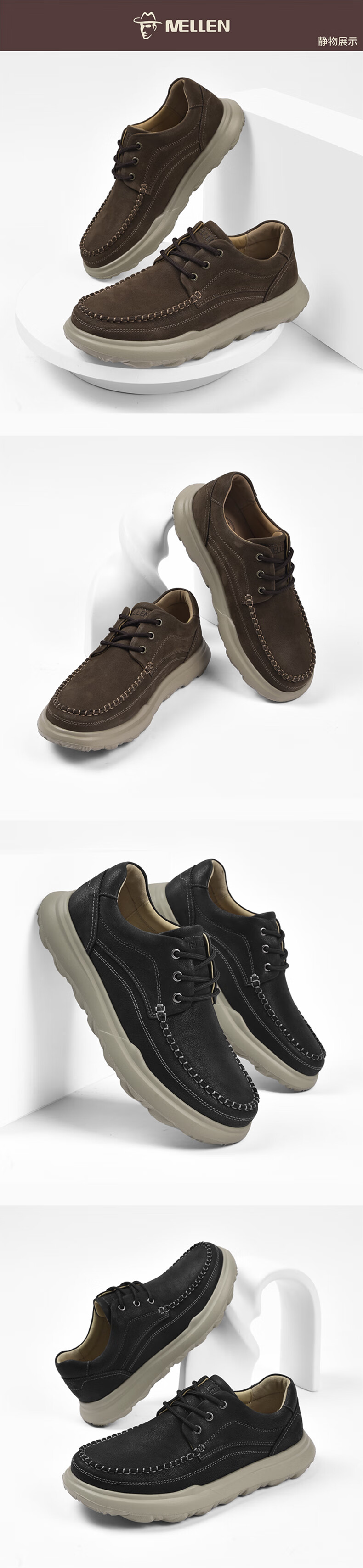 MELLEN Men's Shoes Casual Shoes Genuine Leather Retro Business Men's Shoes Black 37