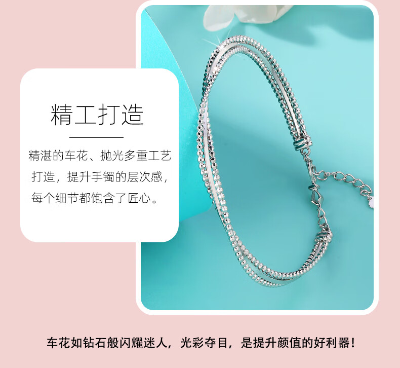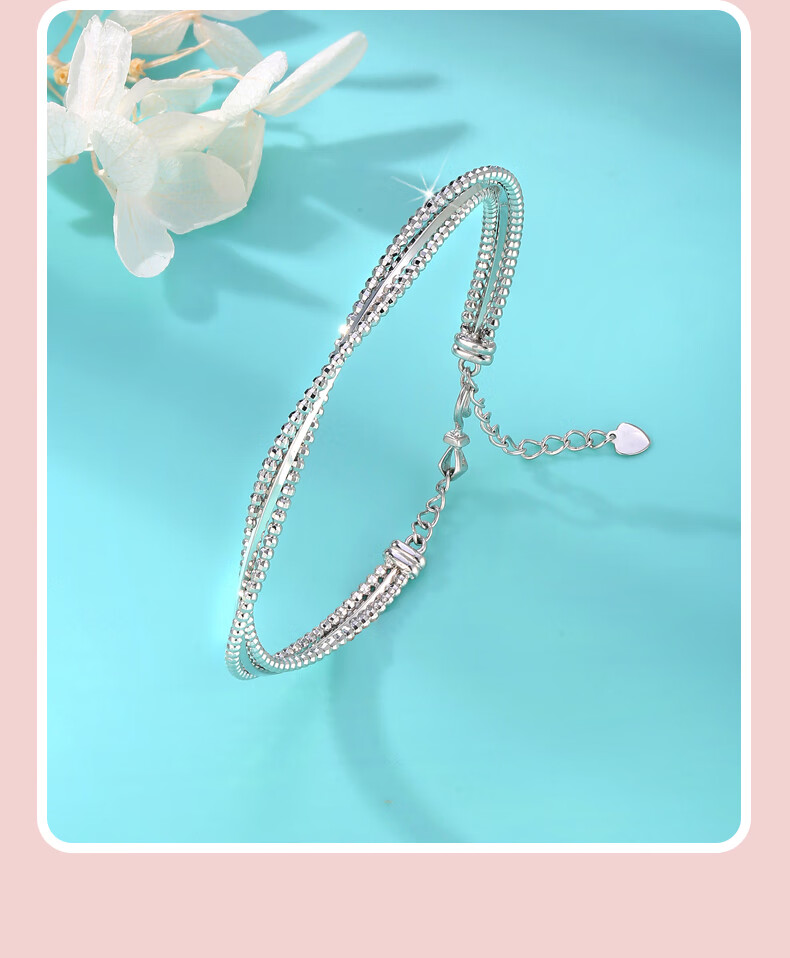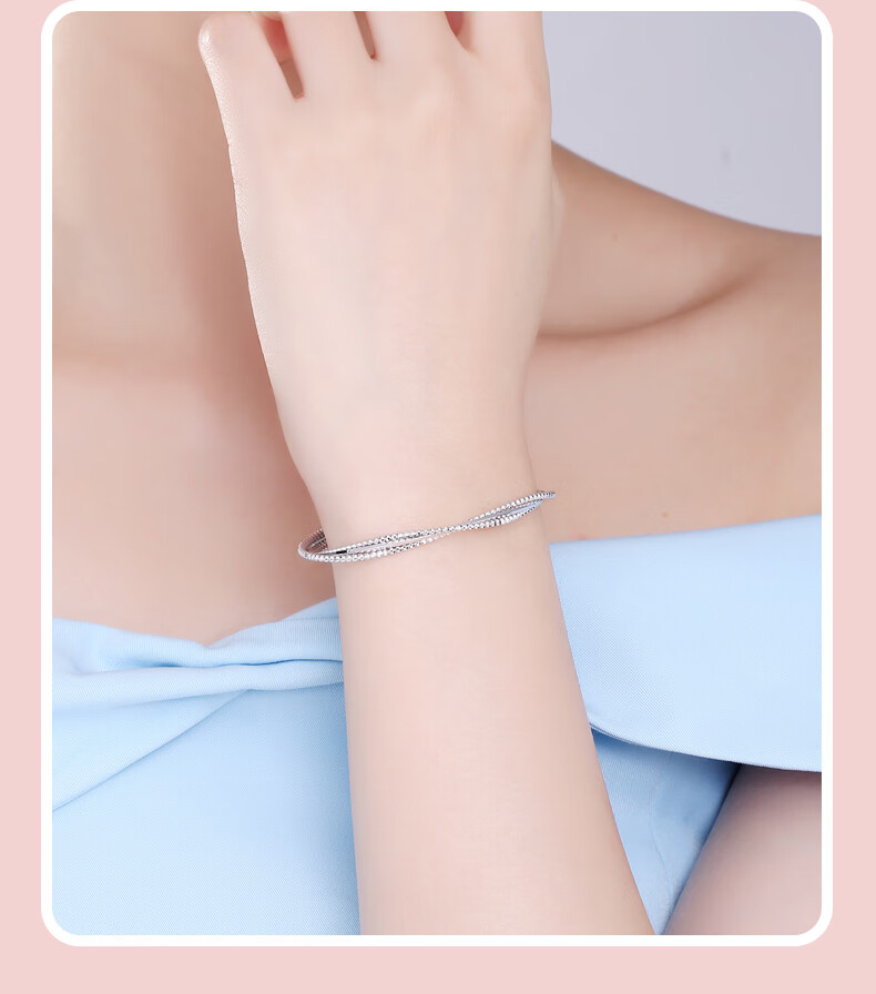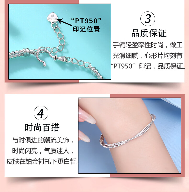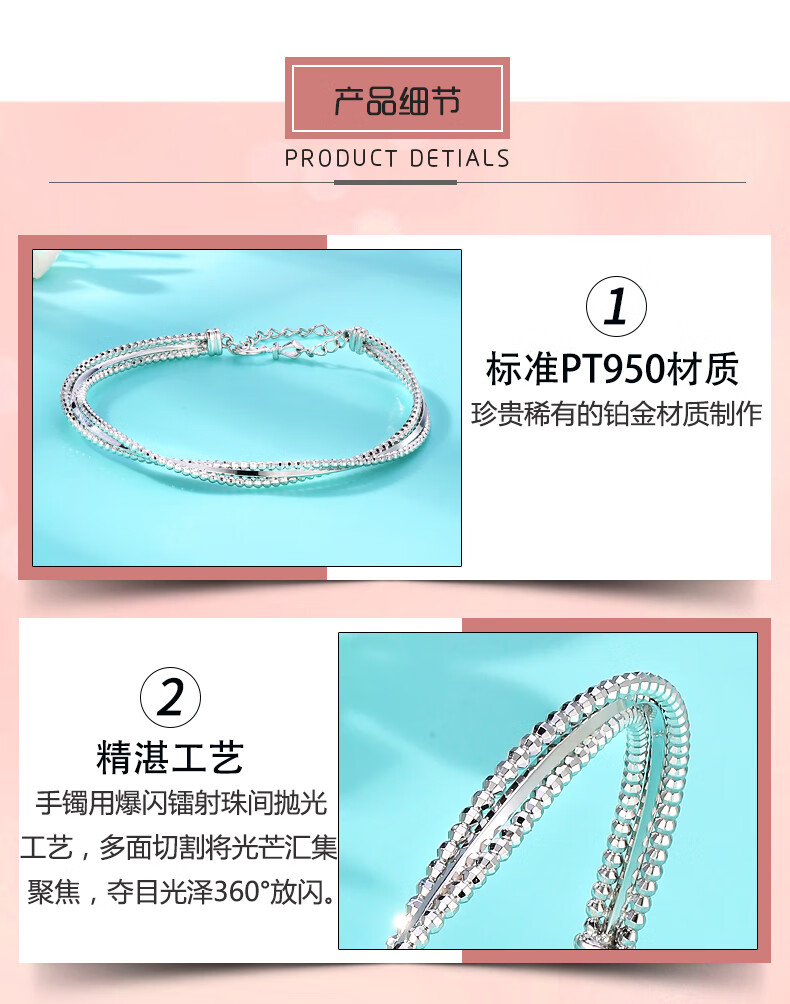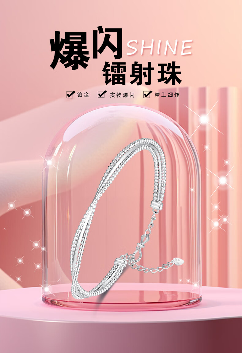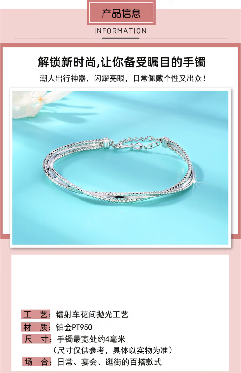 Luo Hua Cing Chun new PT950 fashionable laser bead platinum bracelet. Platinum shiny bracelet with adjustable opening. About 4mm thick. Platinum laser bead bracelet.