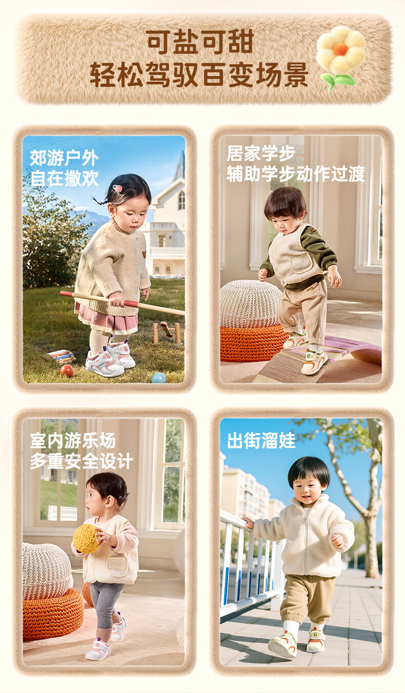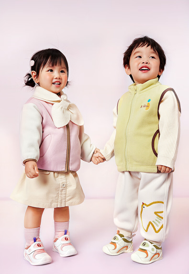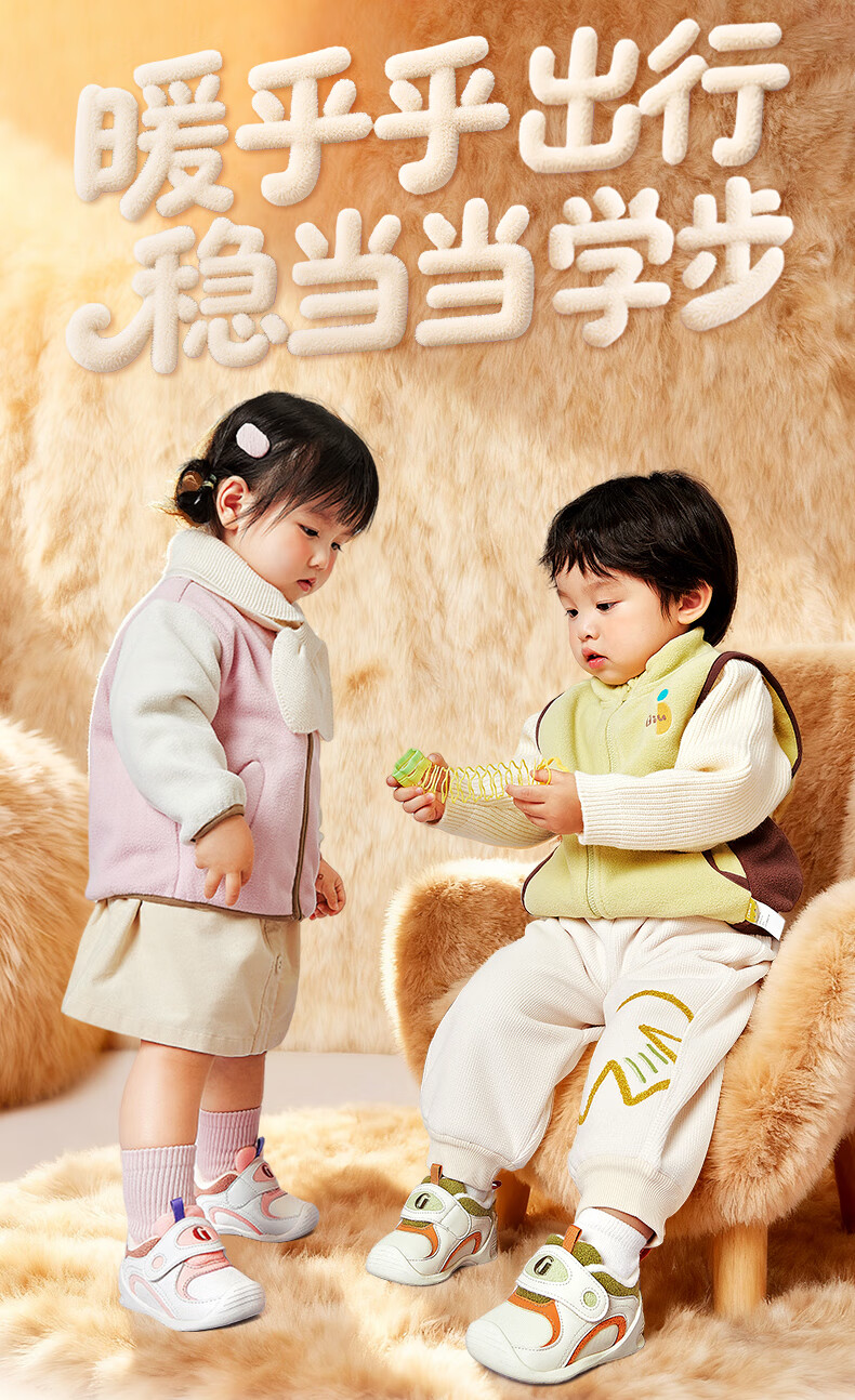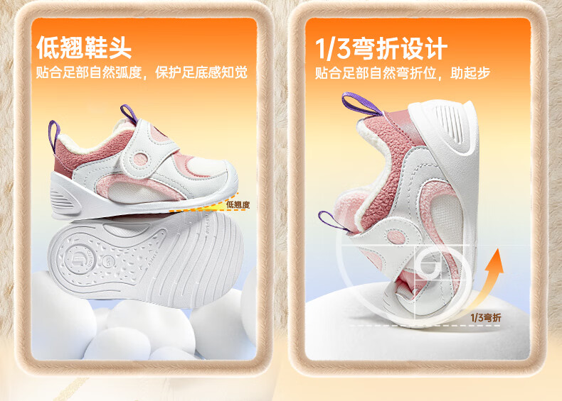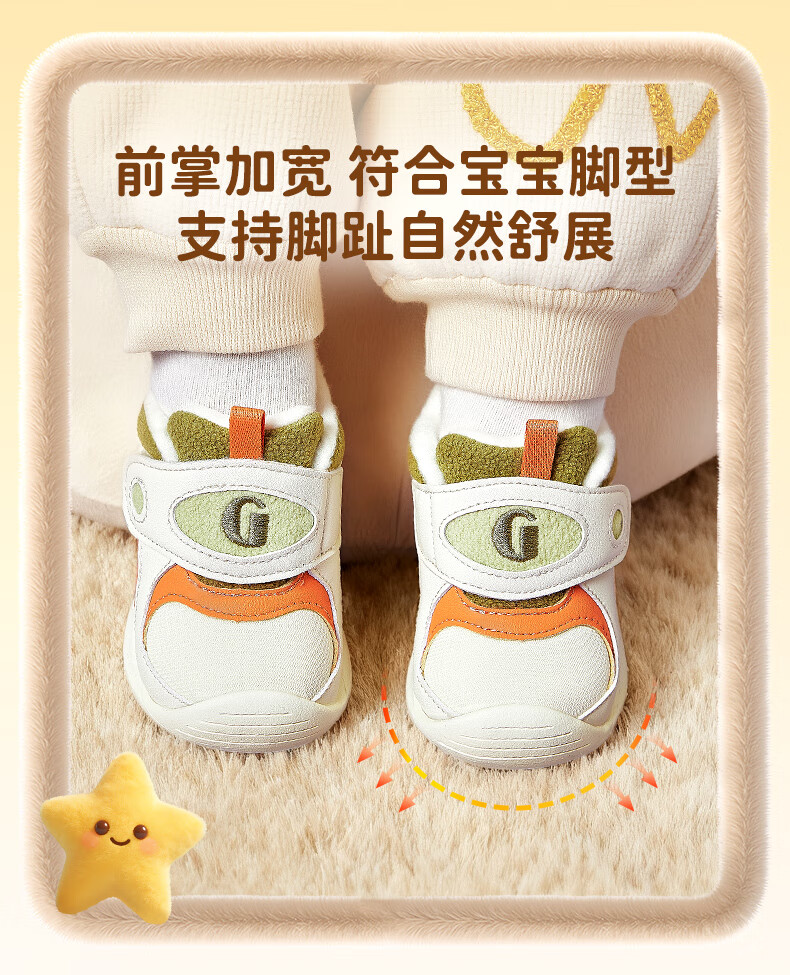 Jinopu baby cotton shoes, polar fleece warm toddler shoes, winter velvet baby shoes for boys and girls, GB2355, ivory white/moss green/coral orange 19.5 120mm, suitable for foot length 116-124mm