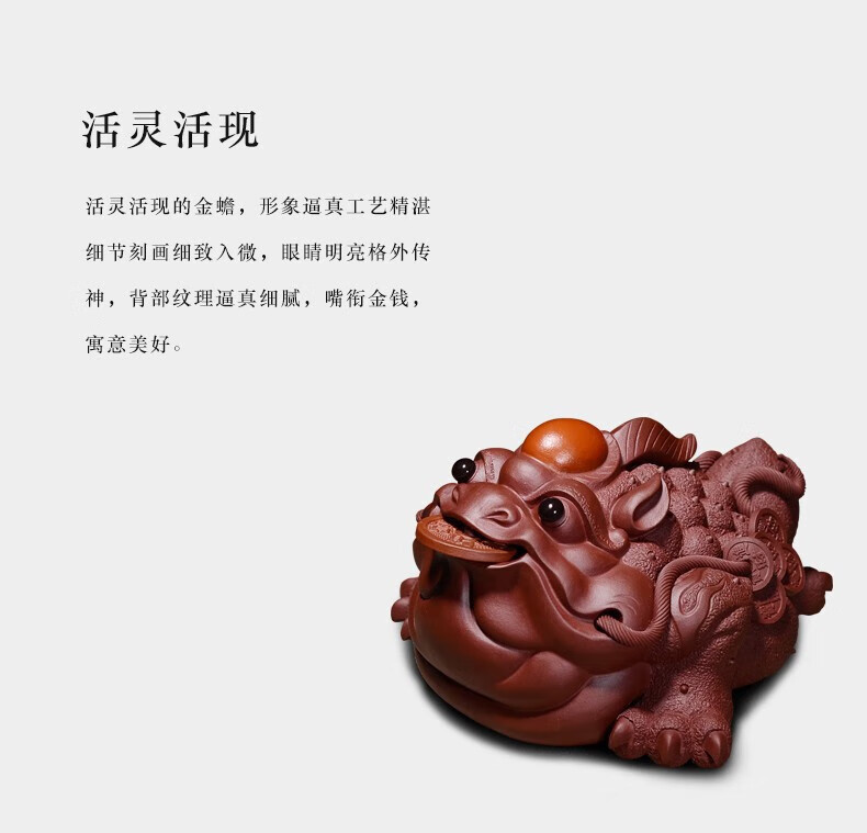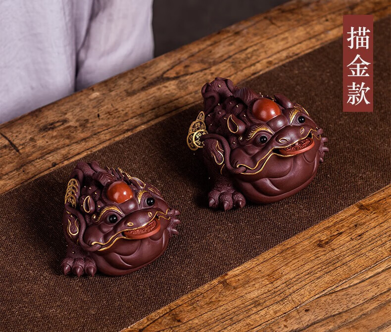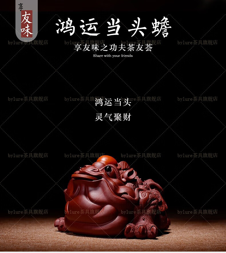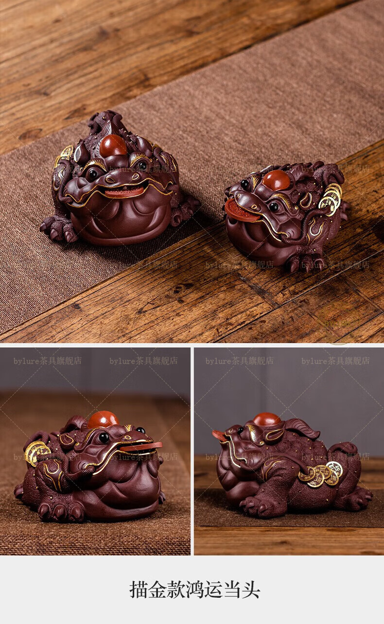 Bylure brand purple clay tea pet Yixing golden toad boutique can be raised tea tray ornaments office decorations good luck to the head good luck to the head golden toad 24k gold pattern - large size