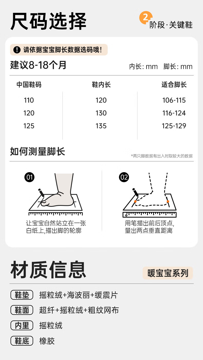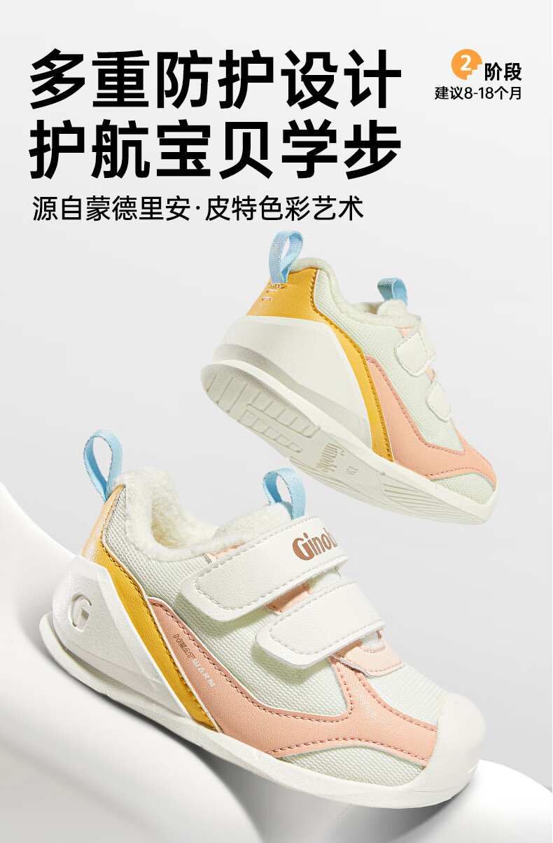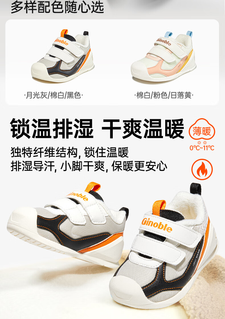 Genopu winter velvet warm polar fleece baby walking shoes, cute toddler shoes for boys and girls GB2361 moonlight gray/cotton white/black 20 125mm suitable for foot length 125-129mm