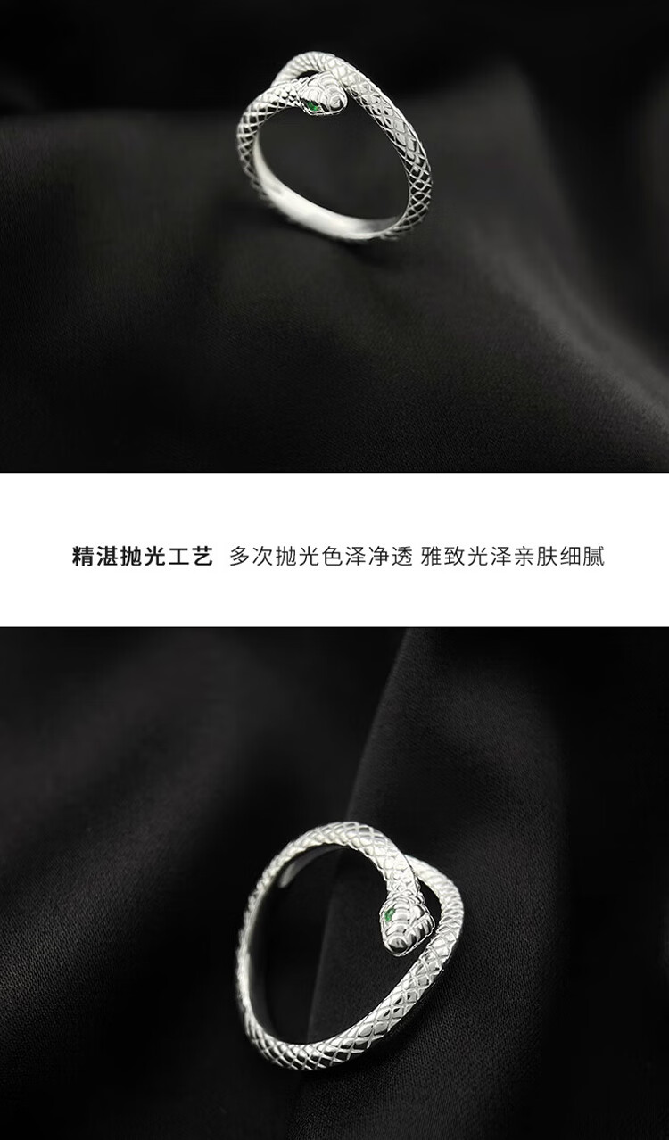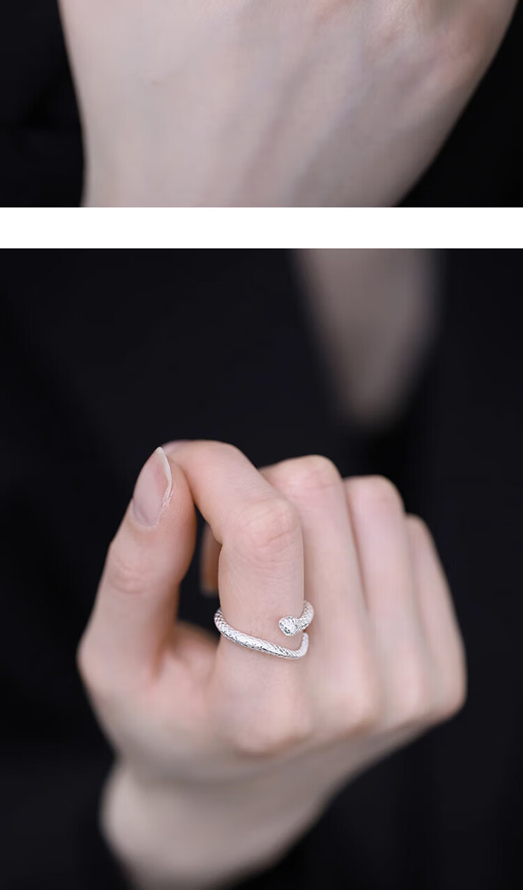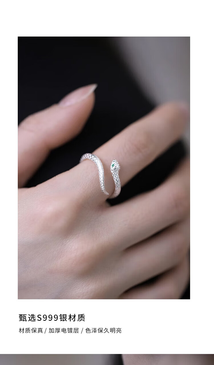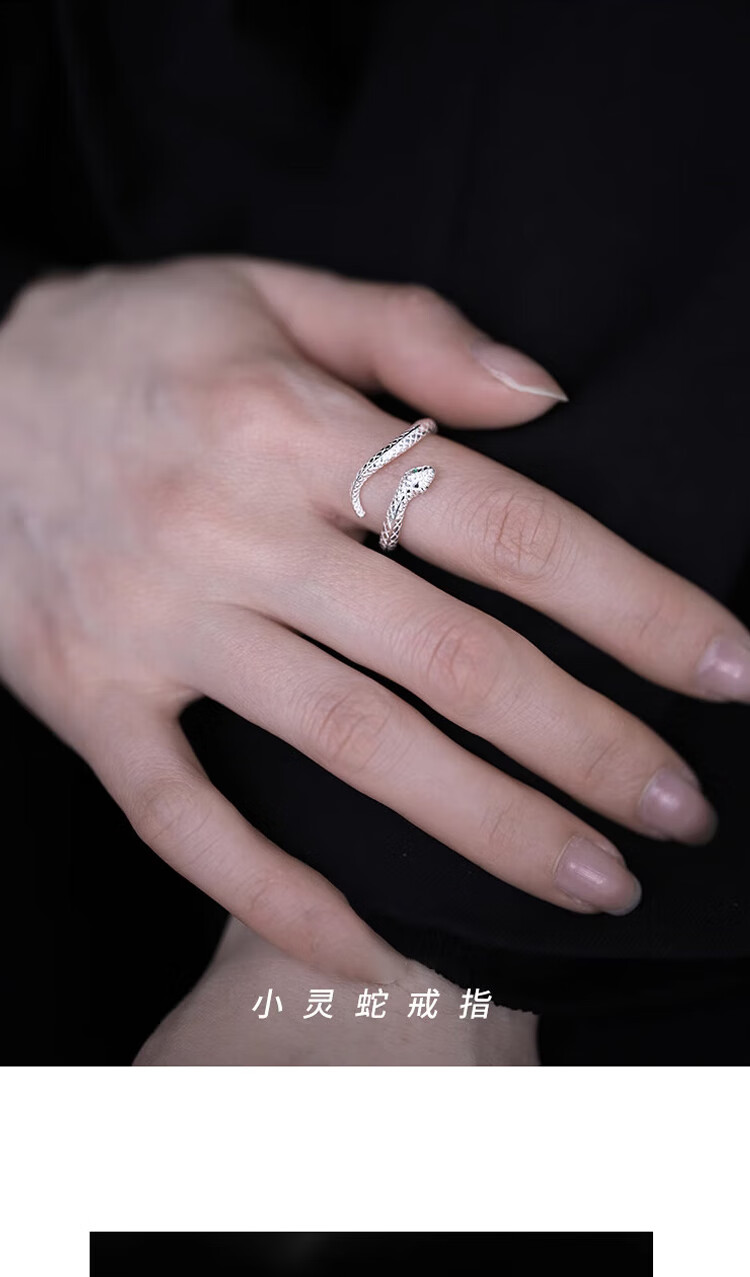 Mansheng 999 Pure Silver Exquisite Little Spirit Snake Index Finger Open Ring Women's Ring Personalized Fingertip Accessory Tail Ring Niche Design Spirit Snake Ring 999 Pure Silver