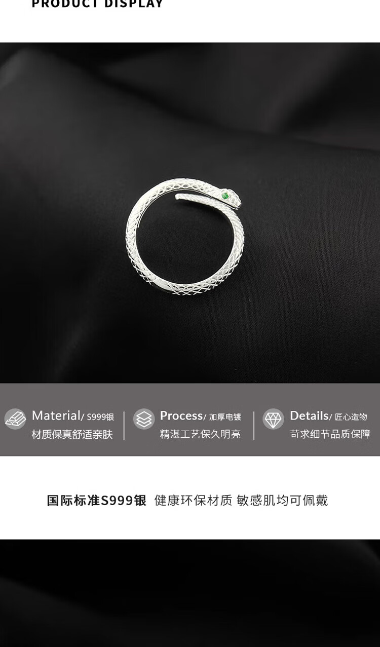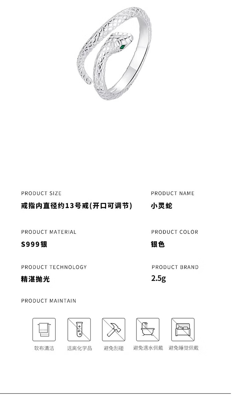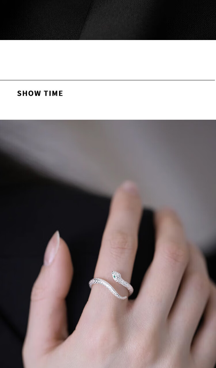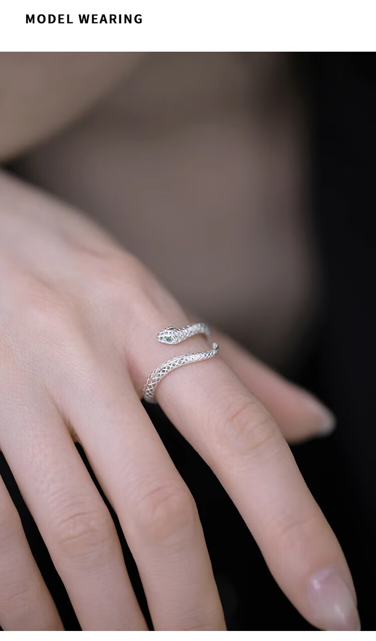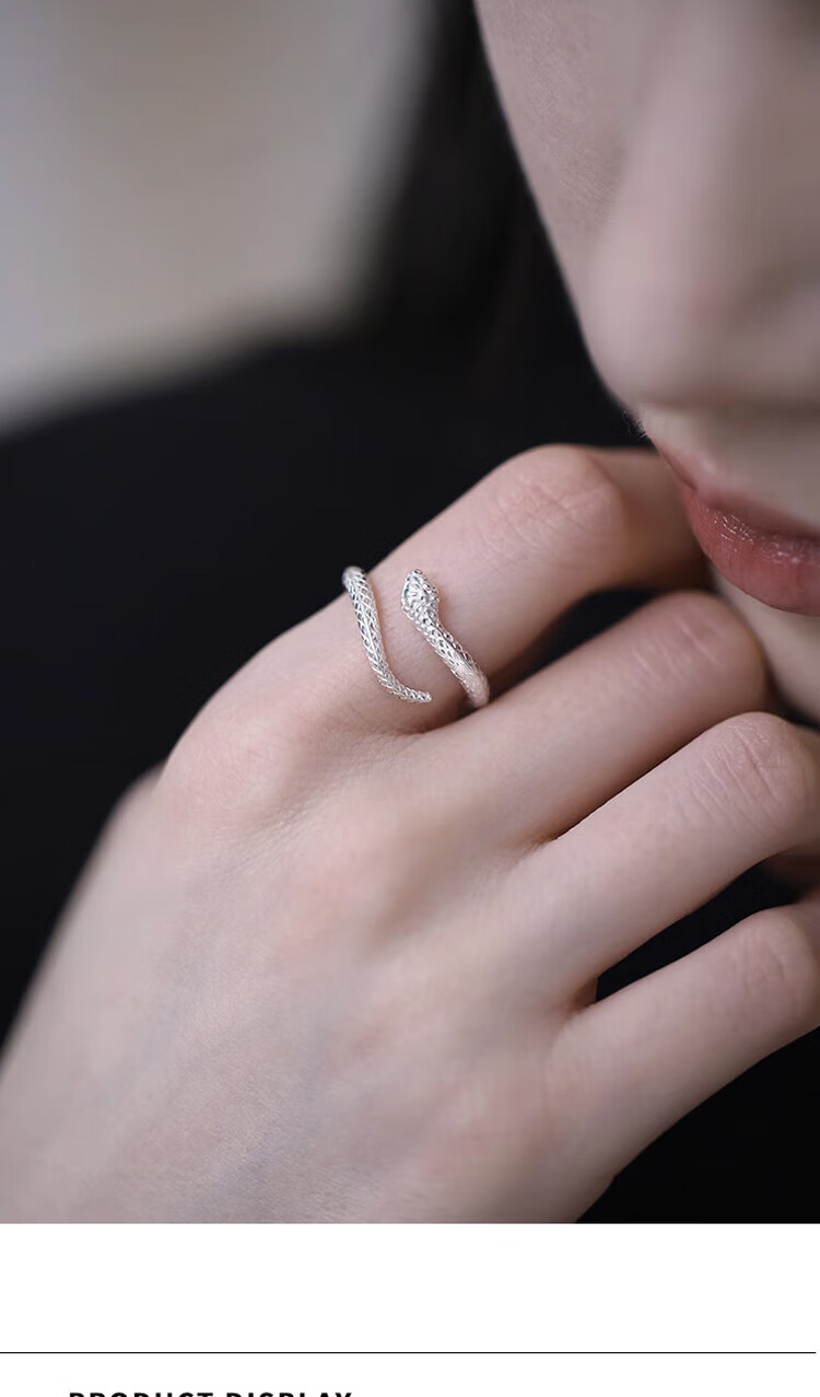 Mansheng 999 Pure Silver Exquisite Little Spirit Snake Index Finger Open Ring Women's Ring Personalized Fingertip Accessory Tail Ring Niche Design Spirit Snake Ring 999 Pure Silver