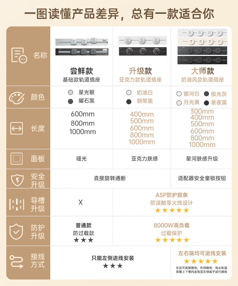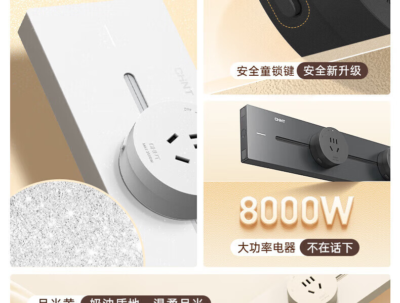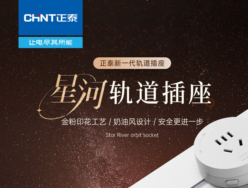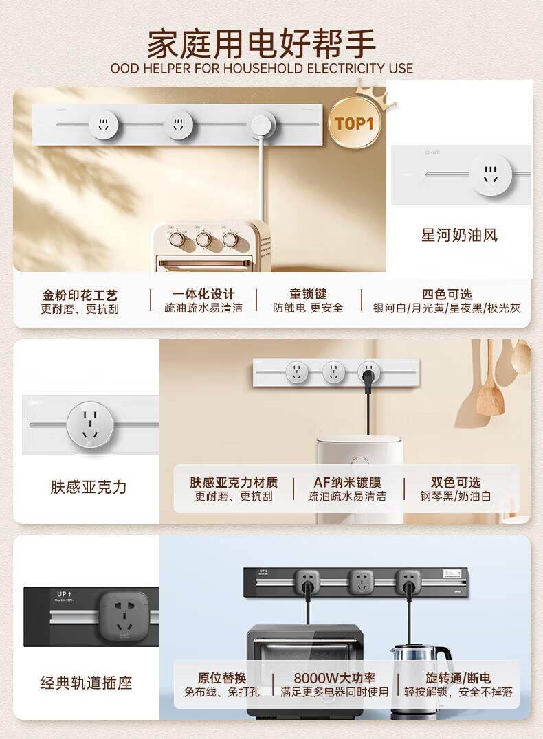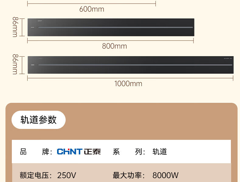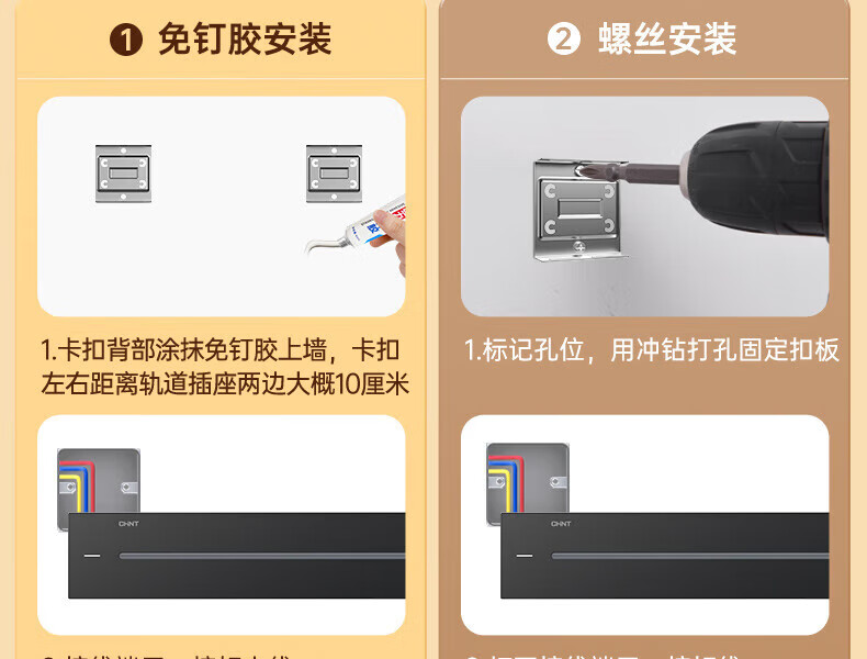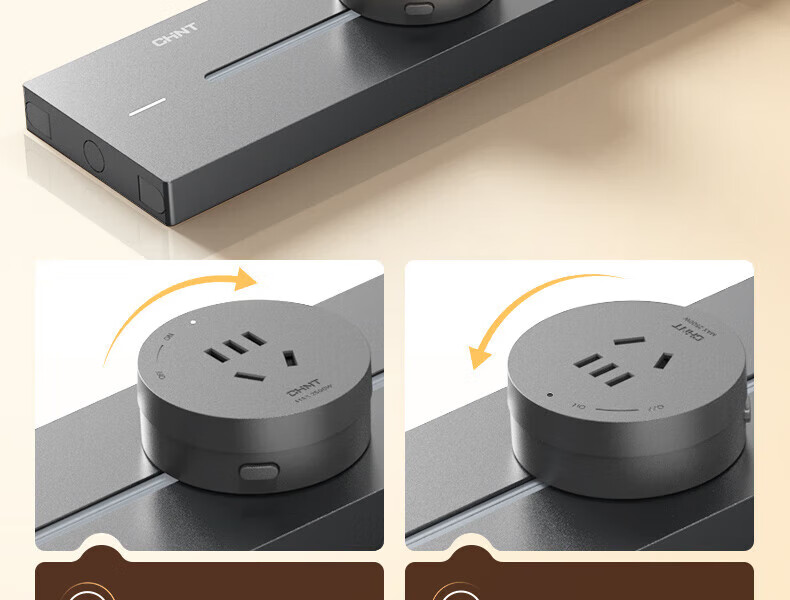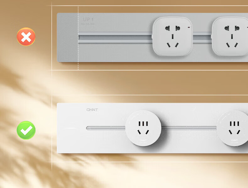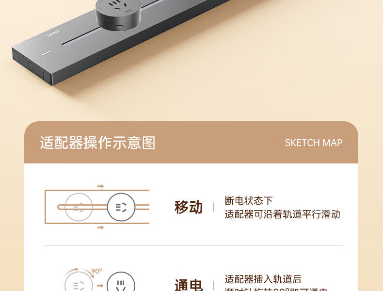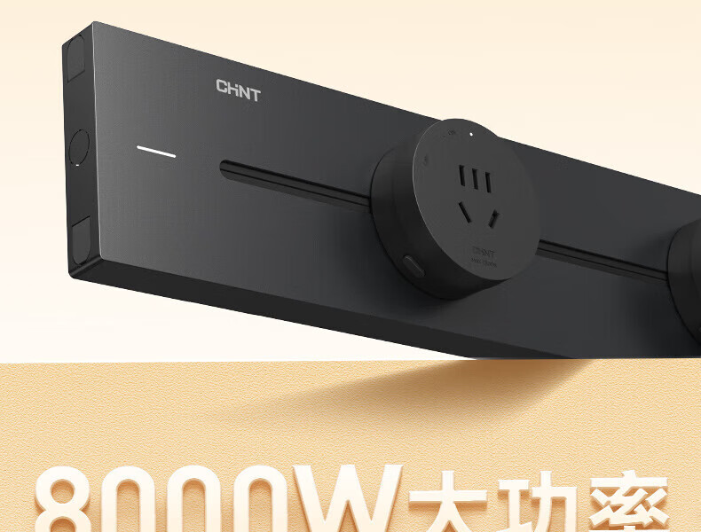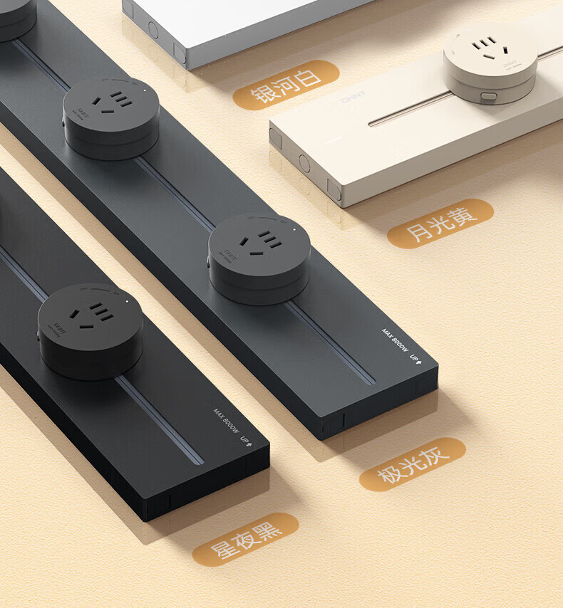 Chint (CHNT) surface-mounted track socket power movable wall guide rail socket upgraded punch-free power strip switch socket wall-mounted multi-function wiring board surface-mounted Aurora Gray 40cm + 3 five-hole adapters