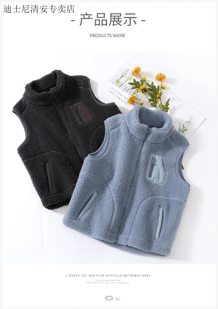 G.DUCKKIDS Boys' Velvet Vest 2024 Autumn Middle and Large Children's Thickened Vest Parent-Child Wear Waistcoat Zipper Jacket Blue 110 (Reference Age 4-5 Years Old)