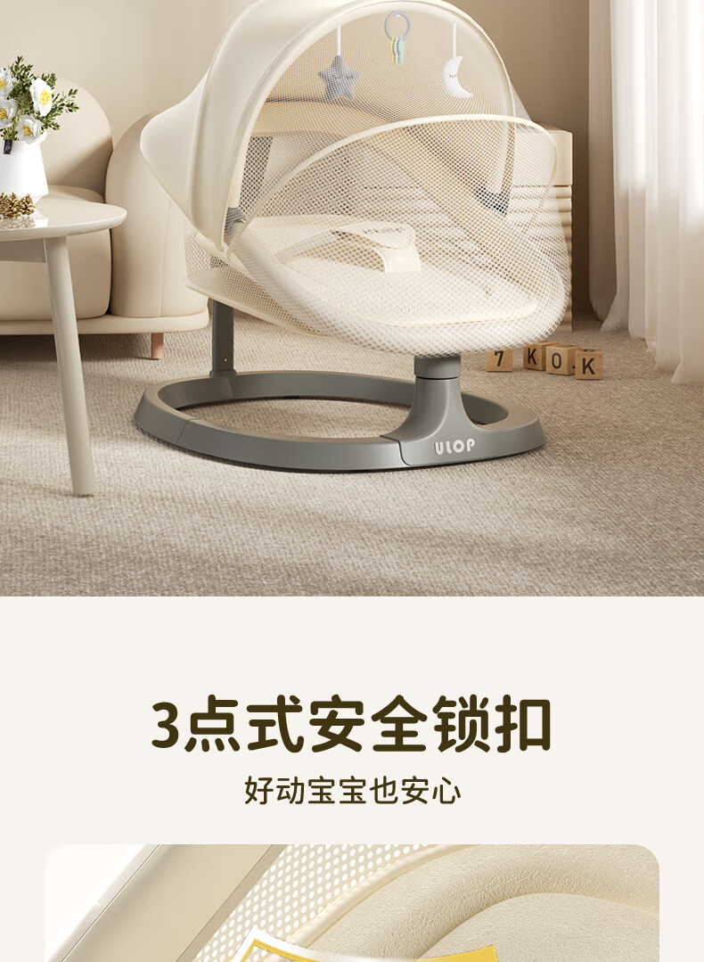 ULOP baby rocking chair, electric rocking chair, a magic tool for coaxing babies, newborn meet-and-greet gift and full-month gift, baby products cradle, rocking chair, rocking bed recliner, a magic tool for newborn babies to sleep, khaki mosquito net + soothing toy stand + double-sided sleeping mat