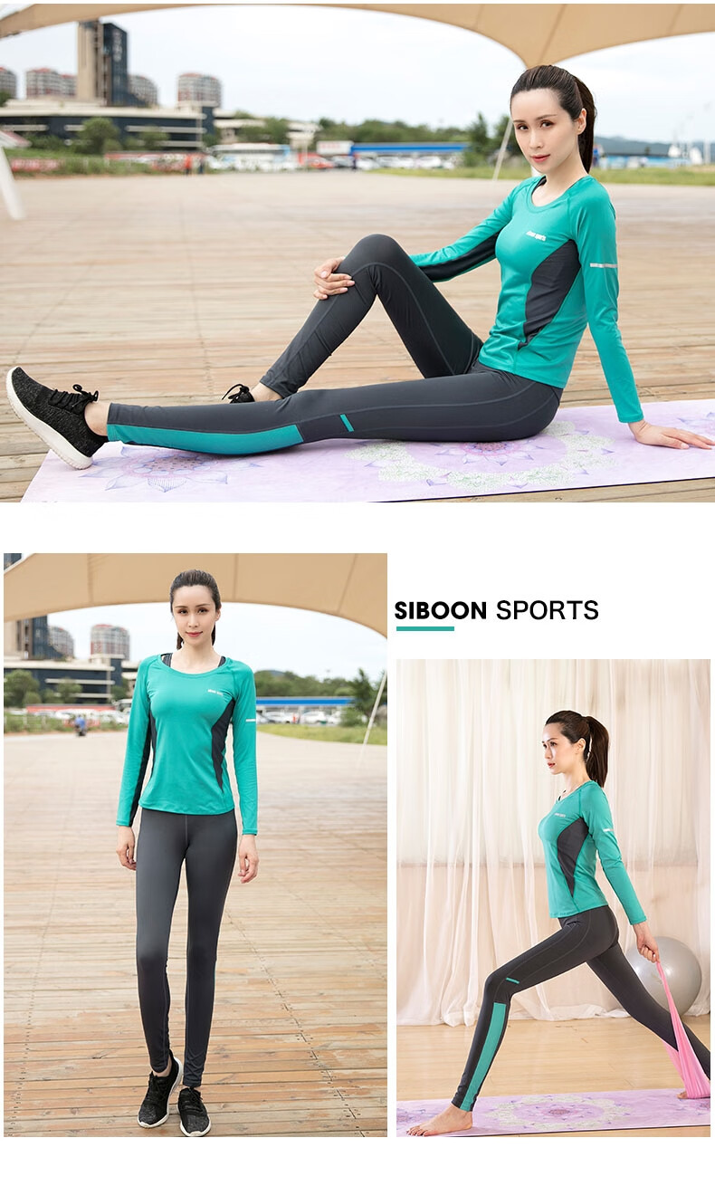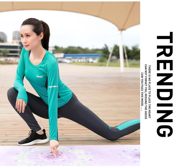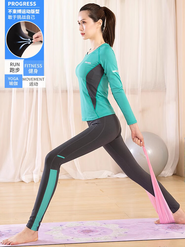 Sporn Yoga Wear Suit Women's Long Sleeve Autumn and Winter New Large Size Pilates Professional Training Wear Running Sports Fitness Top Mint Green Top + Leg Shaping Pants (Two-piece Set) L 100-120Jin Jin is equal to 0.5 kg