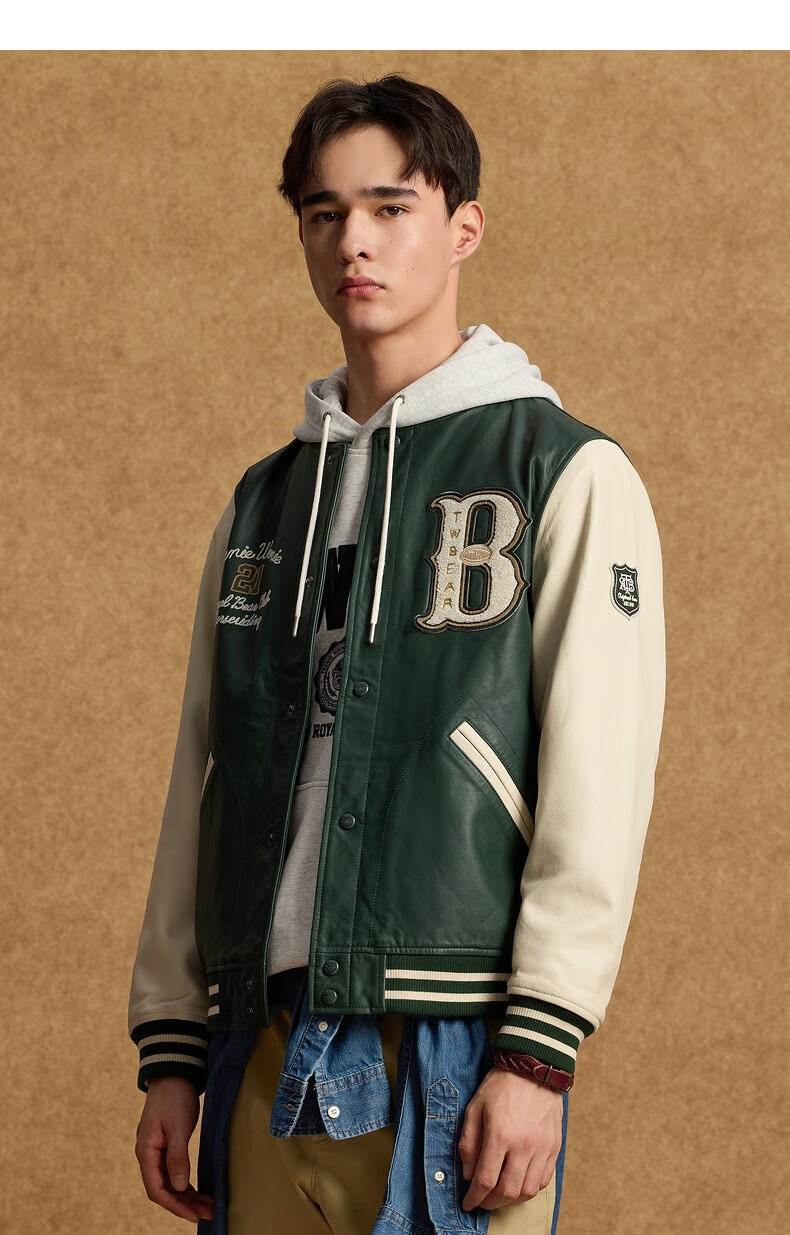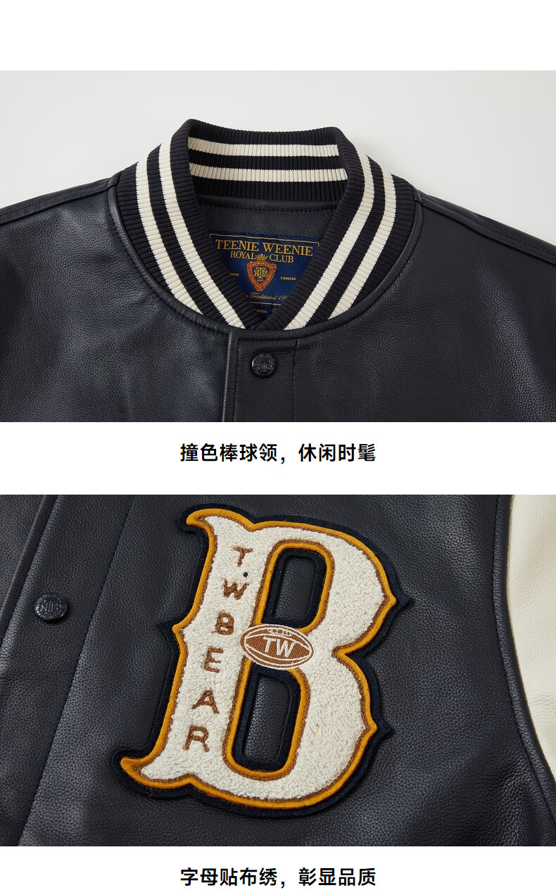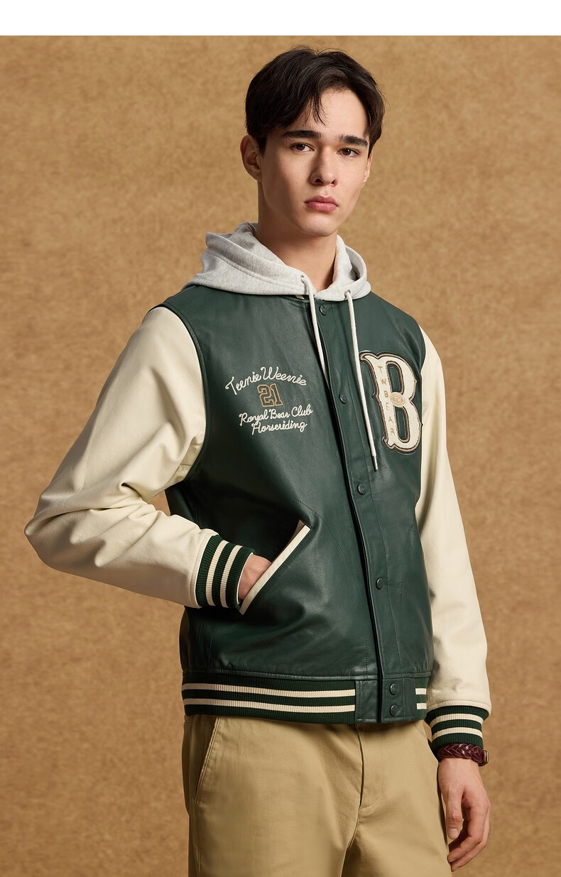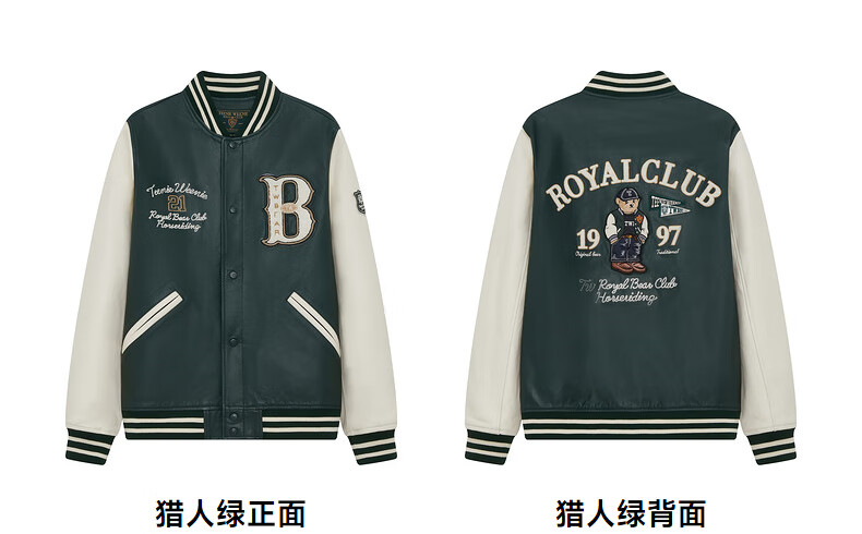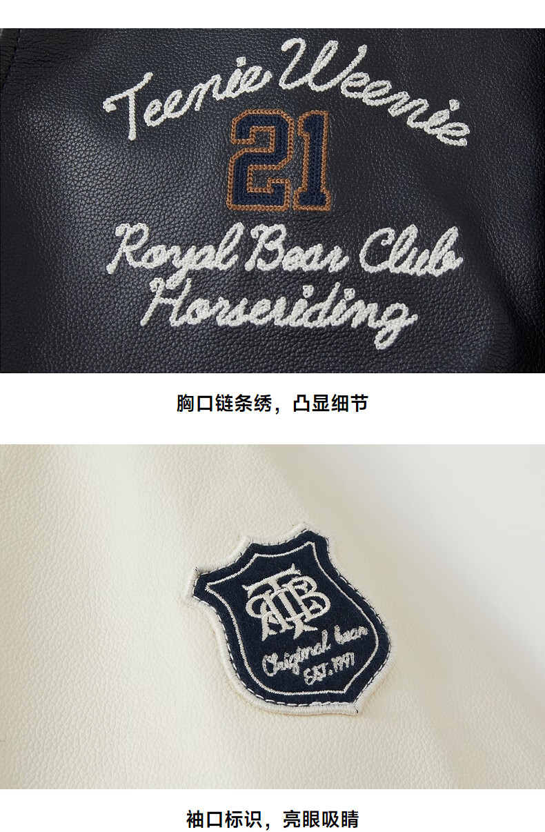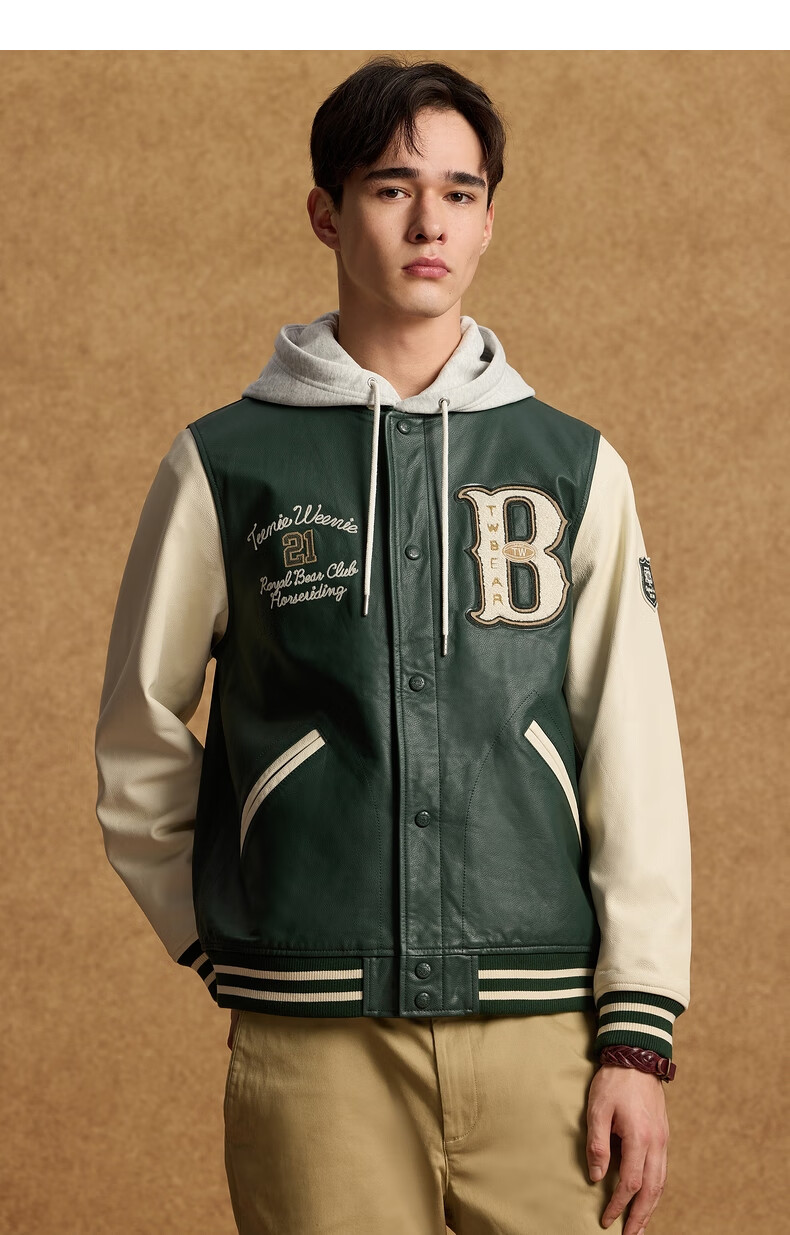 Teenie Weenie Bear Men's Fashion Comfortable Simple Style Casual Letter Contrast Color Leather Jacket Men's Winter Hunter Green M 170