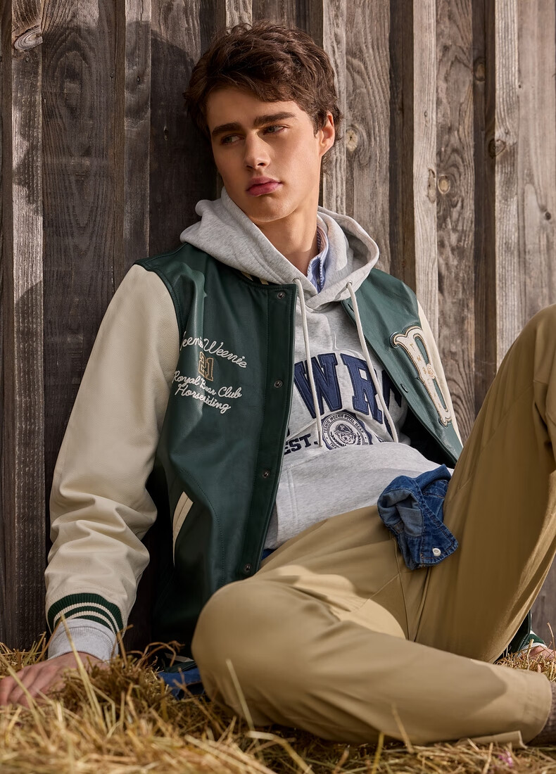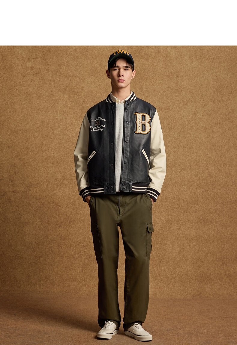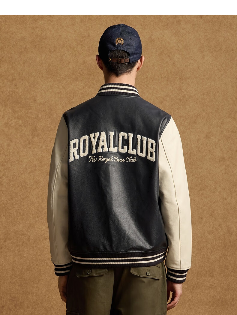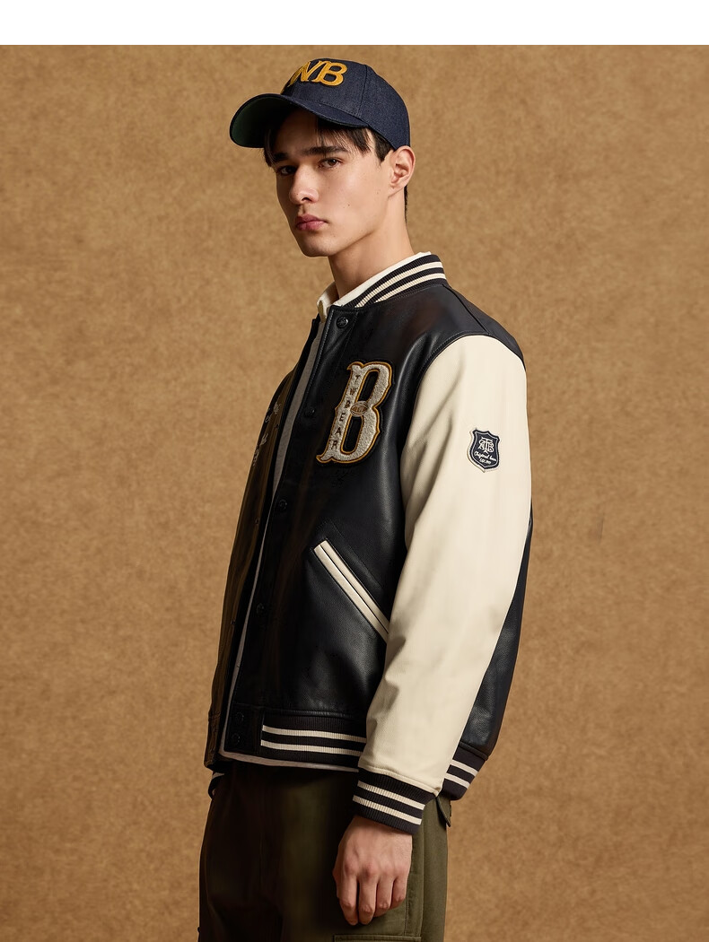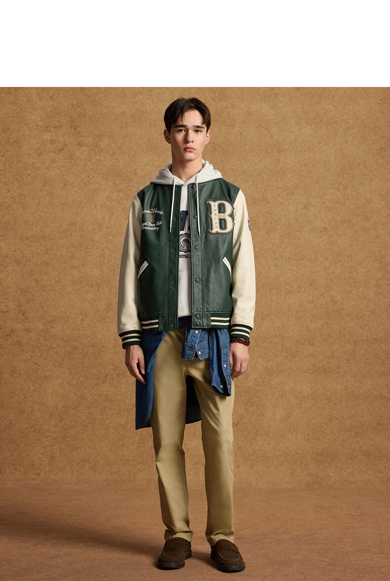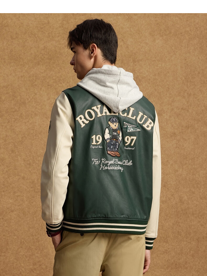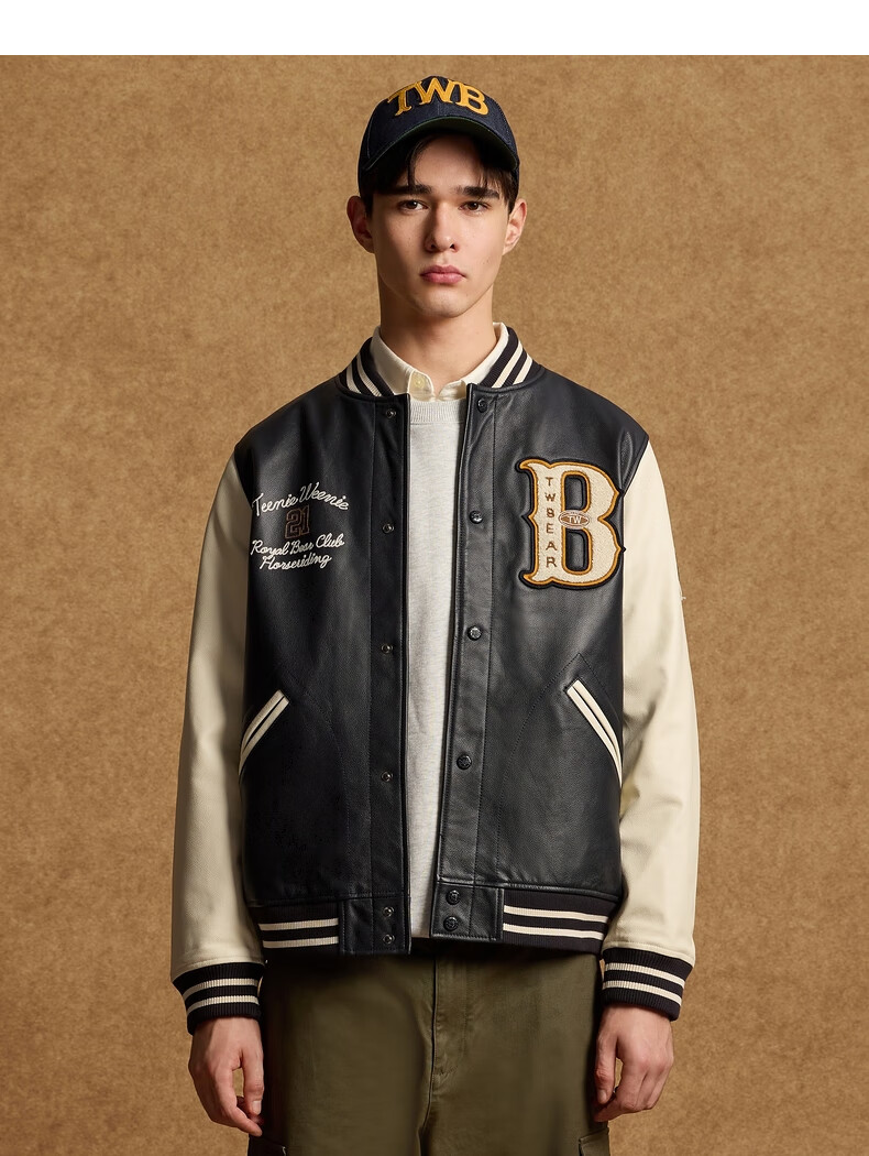 Teenie Weenie Bear Men's Fashion Comfortable Simple Style Casual Letter Contrast Color Leather Jacket Men's Winter Hunter Green M 170