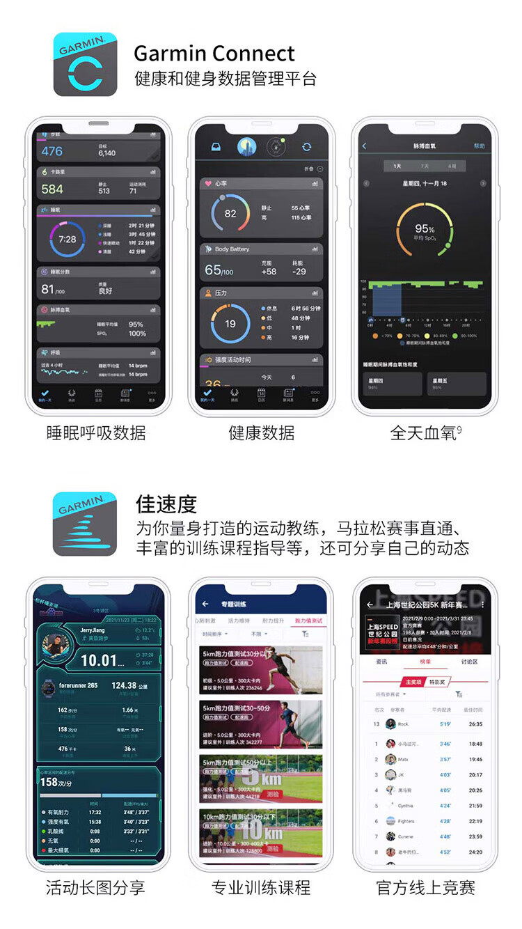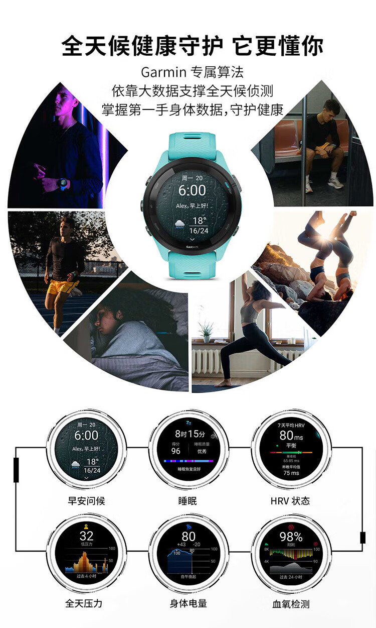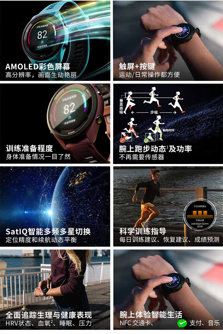 GARMIN Sports Watch Forerunner 265/265S Running Swimming Blood Oxygen Heart Rate GPS Outdoor Smart Watch 265 Extreme Night Black 46mm