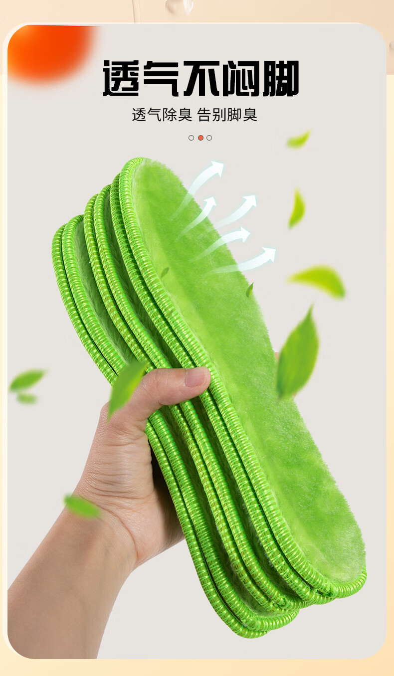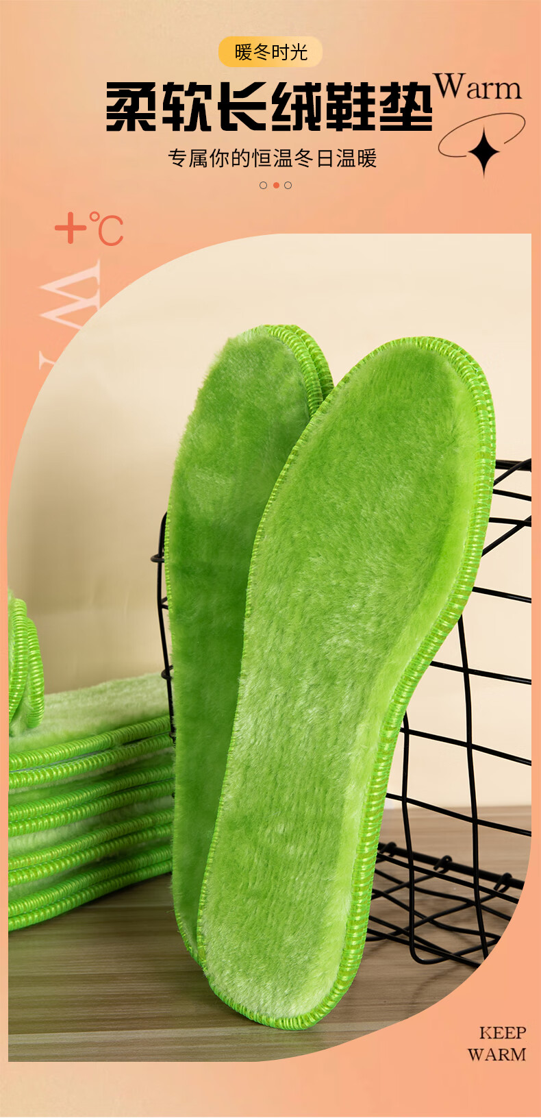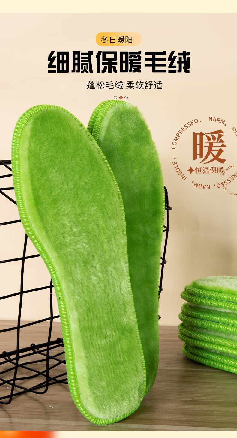 Winter warm insoles that absorb sweat, are breathable, thickened and velvet, deodorizing blankets for men and women, insoles are cold-proof and soft, 1 pair of green velvet 37