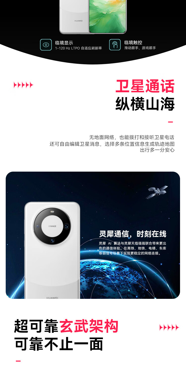 Huawei (HUAWEI) Mate 60, the new Huawei mobile phone, equipped with satellite calls, clear images, AI, fast charging and long battery life, YX55, national subsidy, Mate 60-White Sand Silver, 12GB+512GB, official standard configuration