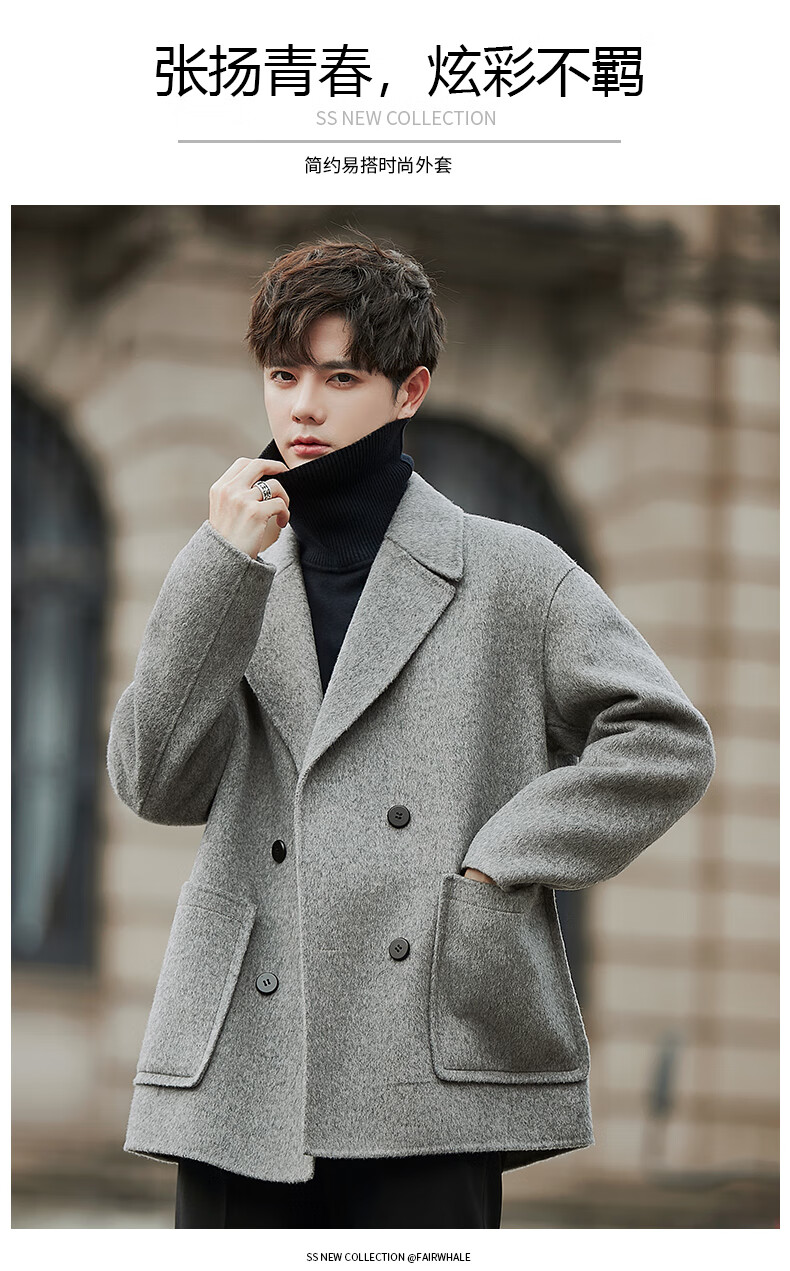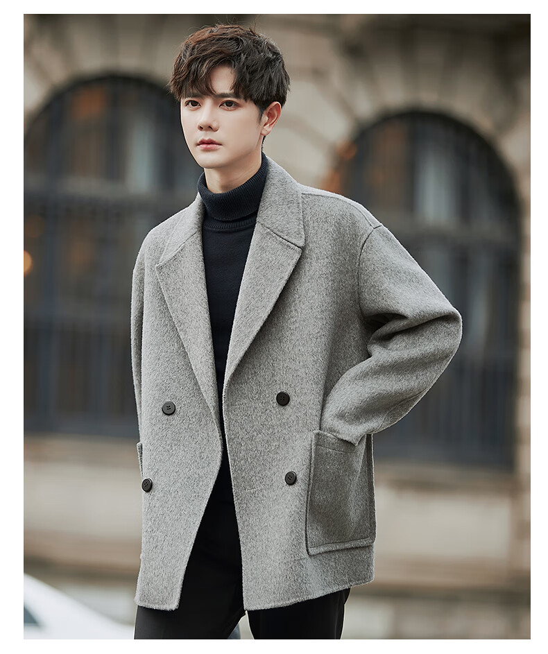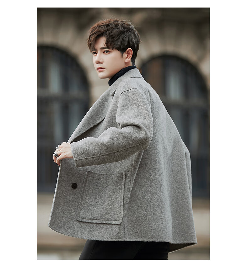 ROMON double-sided fleece coat men's short 2025 new Korean style windbreaker winter thickened wool suit jacket black M (120~140Jin Jin equals 0.5 kg)
