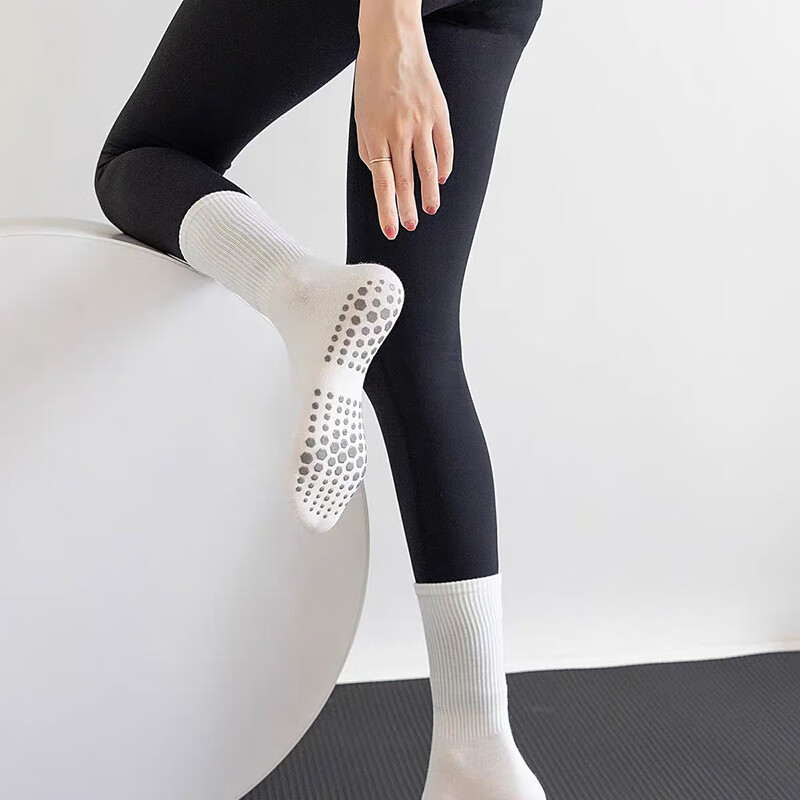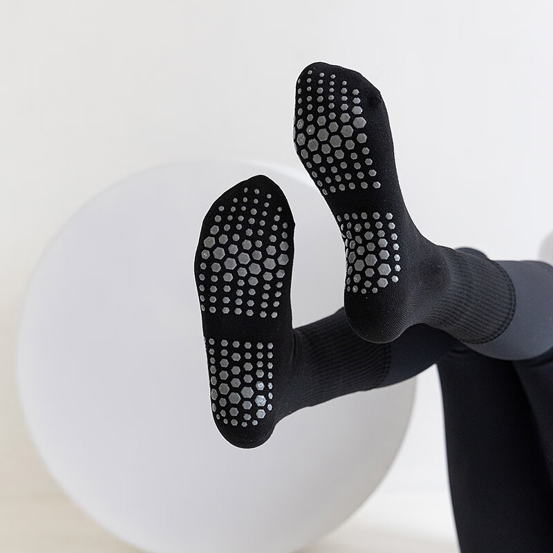Suican Yoga Socks Women's Non-Slip Pilates Modern Dance Socks Indoor Floor Sports Dance Socks Silicone Dot Sports Socks Non-Slip Socks Medium Tube Black 1 Pair One Size