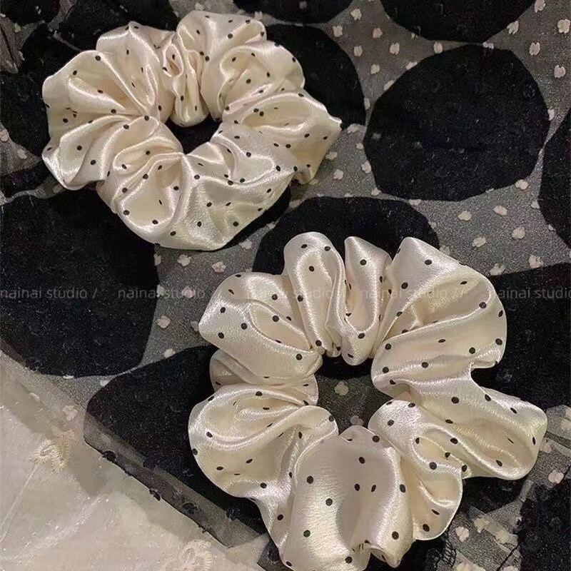 French satin polka dot large intestine retro gentle hair ring high elastic ball scalp hair rope headband new satin polka dot 1 pack