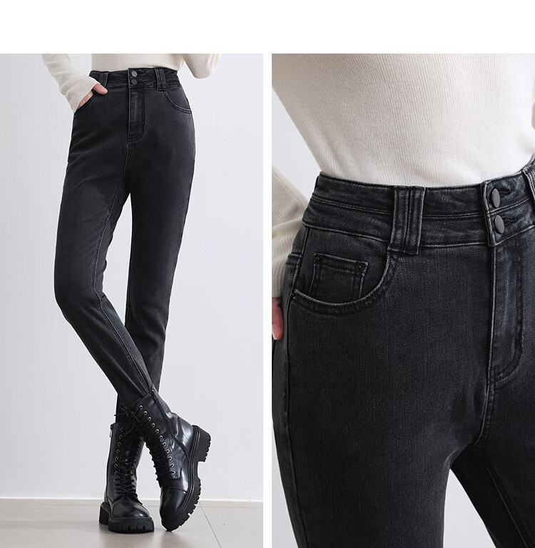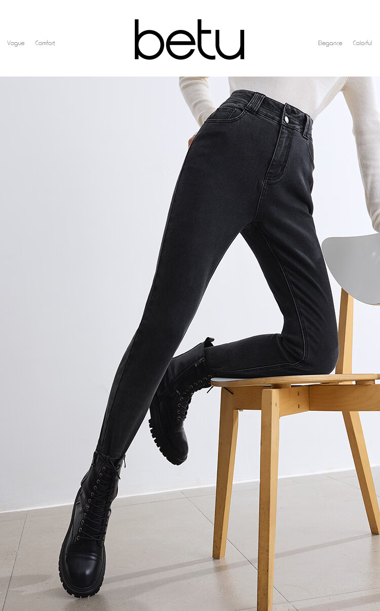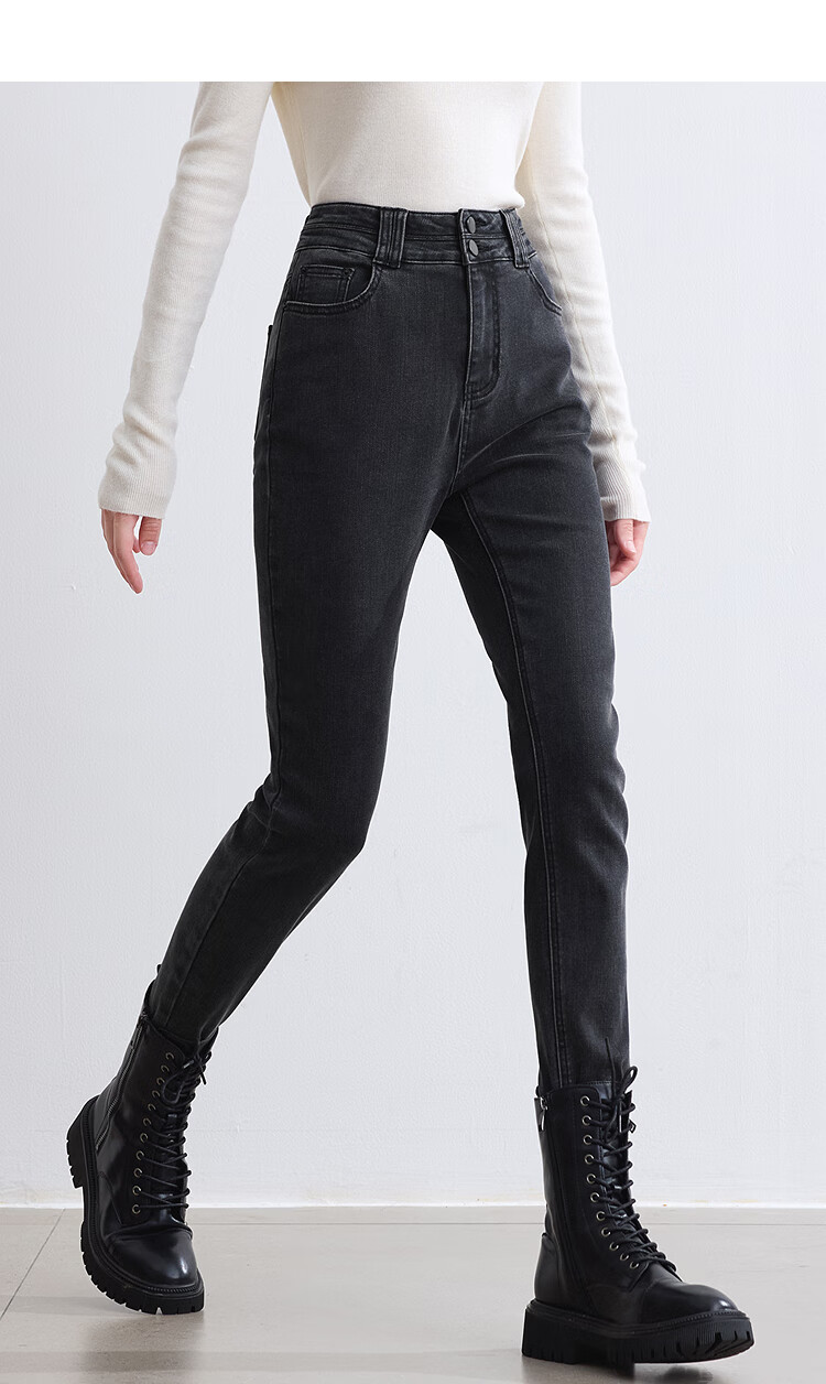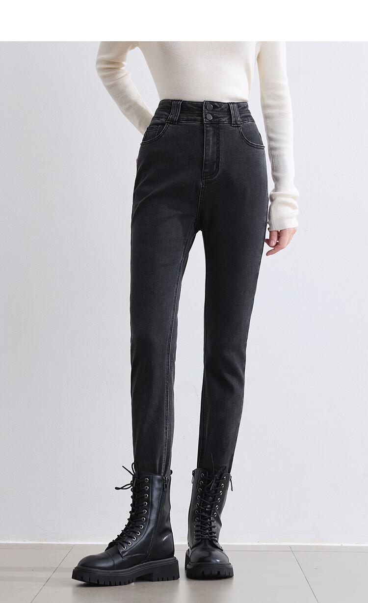 Betu women's new winter jeans brushed high waist slim pencil pants women 2410T87 dark gray M