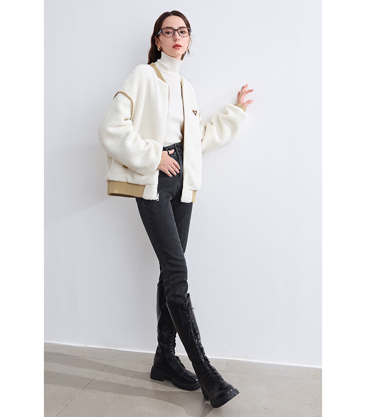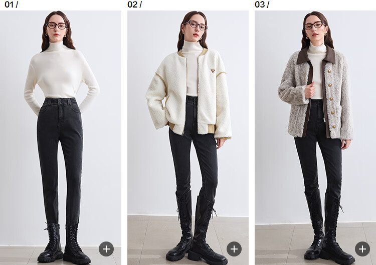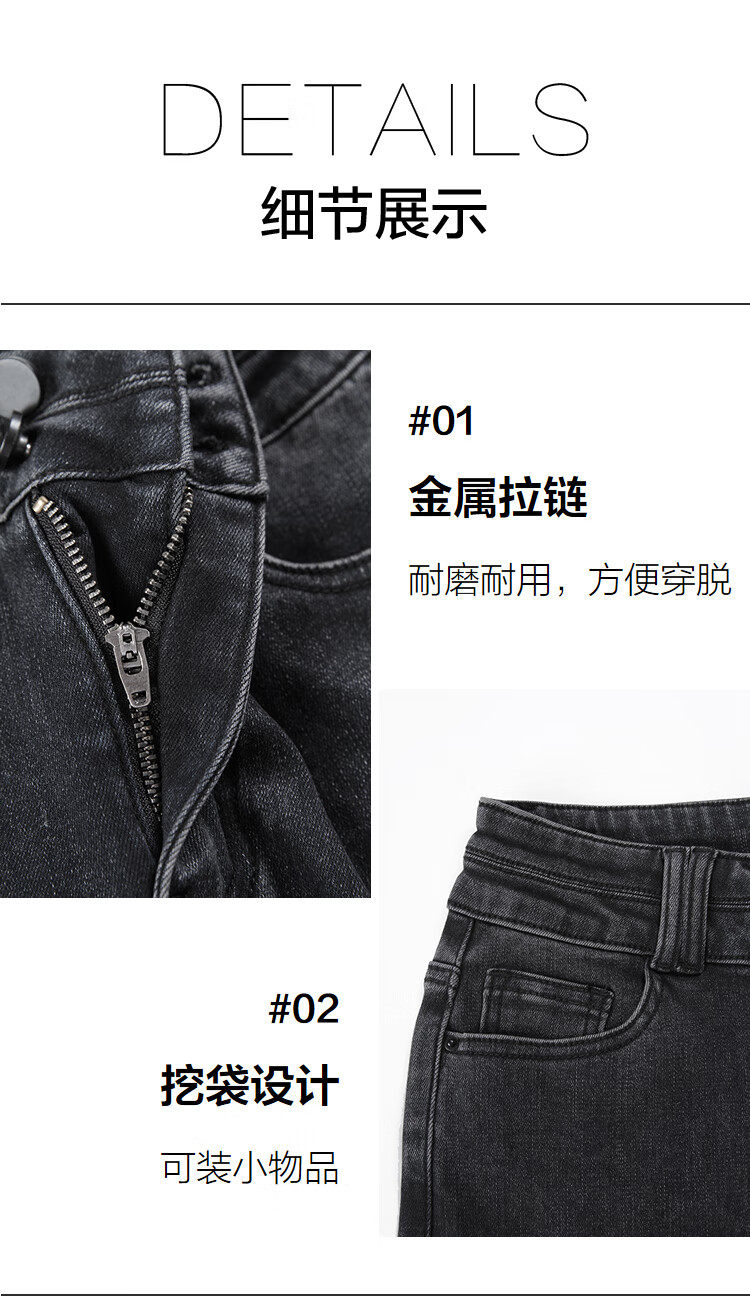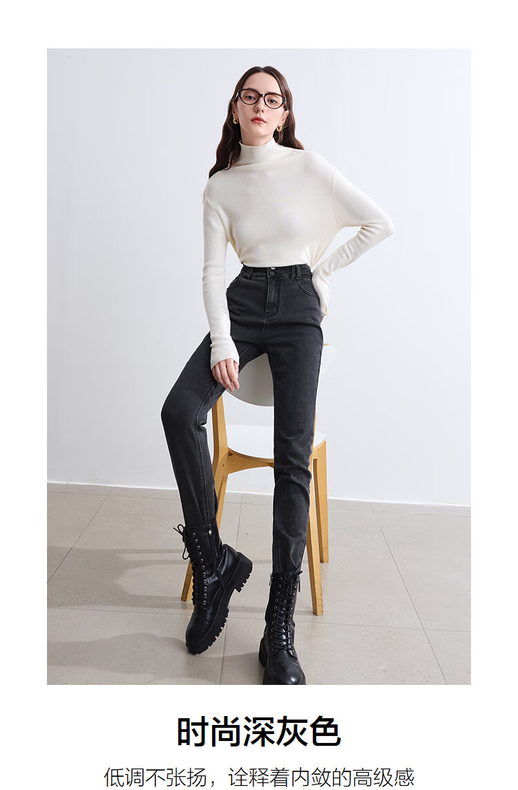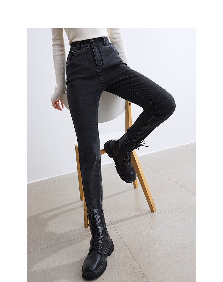 Betu women's new winter jeans brushed high waist slim pencil pants women 2410T87 dark gray M