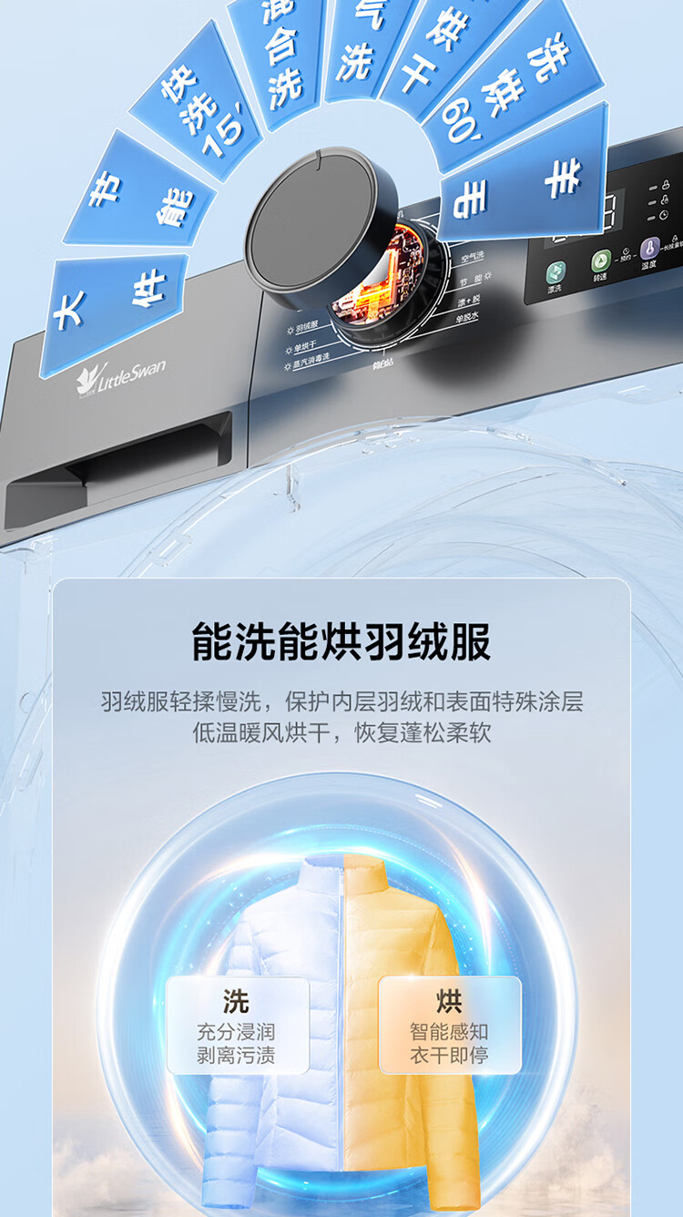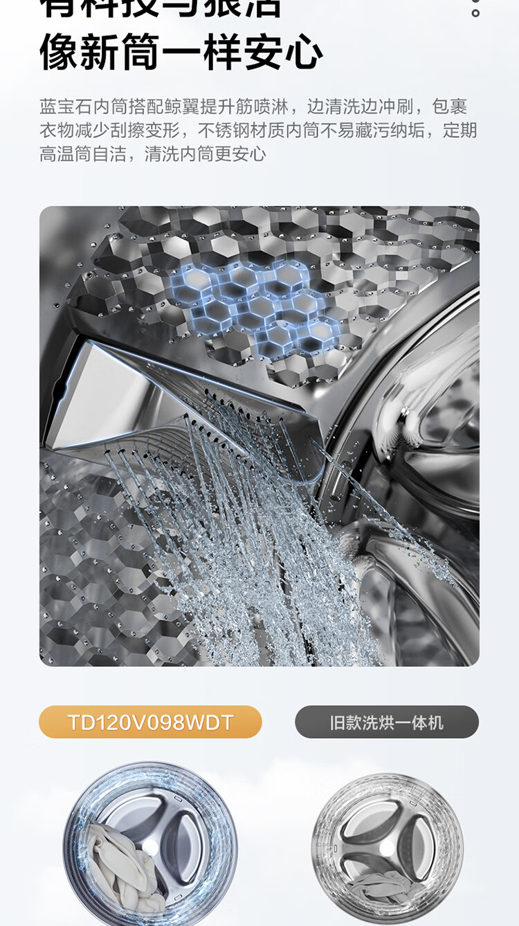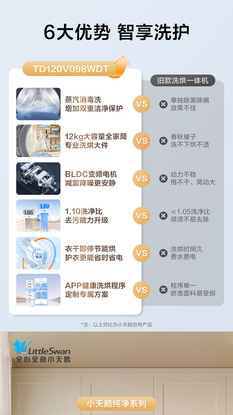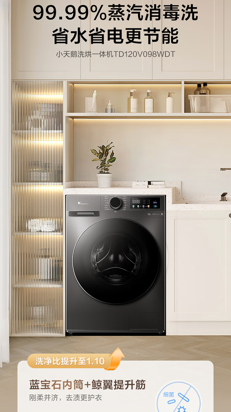 LittleSwan 12KG large-capacity fully automatic washing machine, drum washing and drying in one, home appliance subsidy, steam disinfection, warm drying, air washing, first-level energy efficiency TD120V098WDT, washing and drying in one