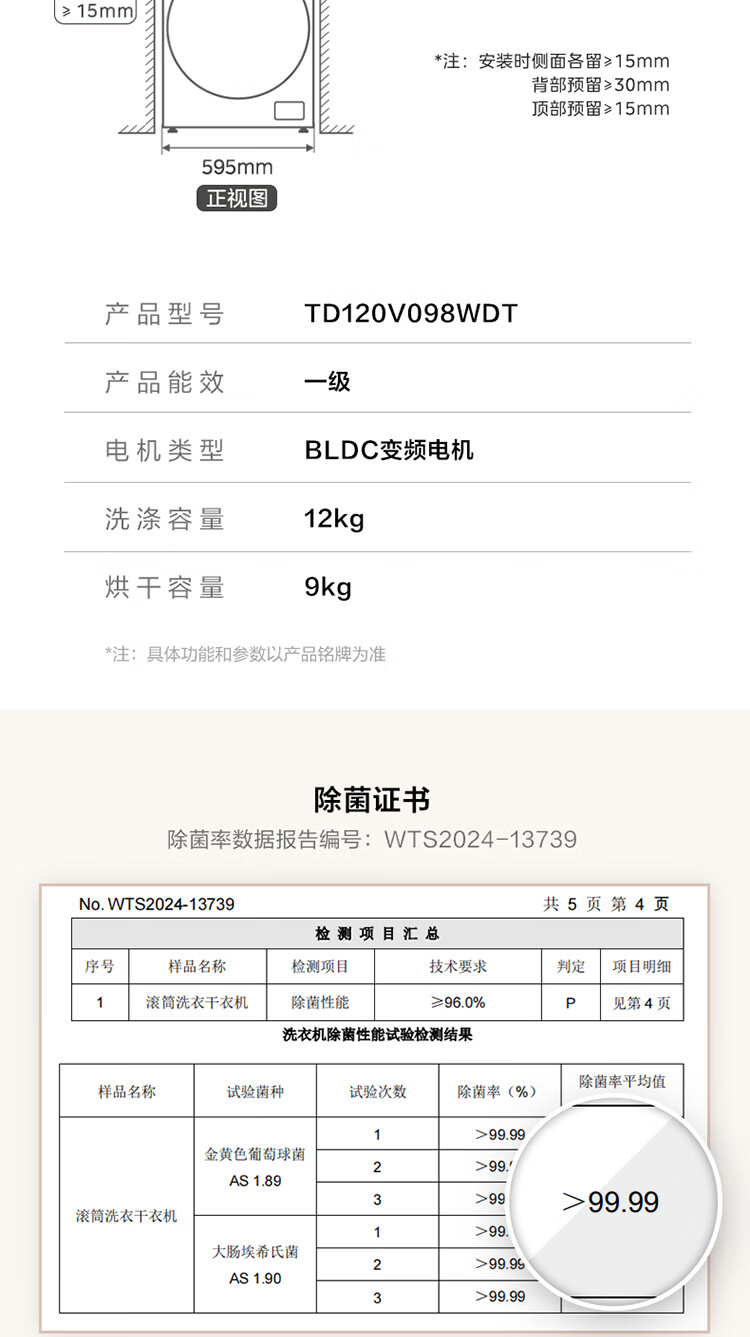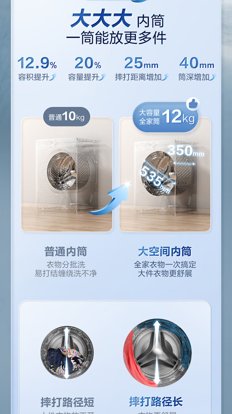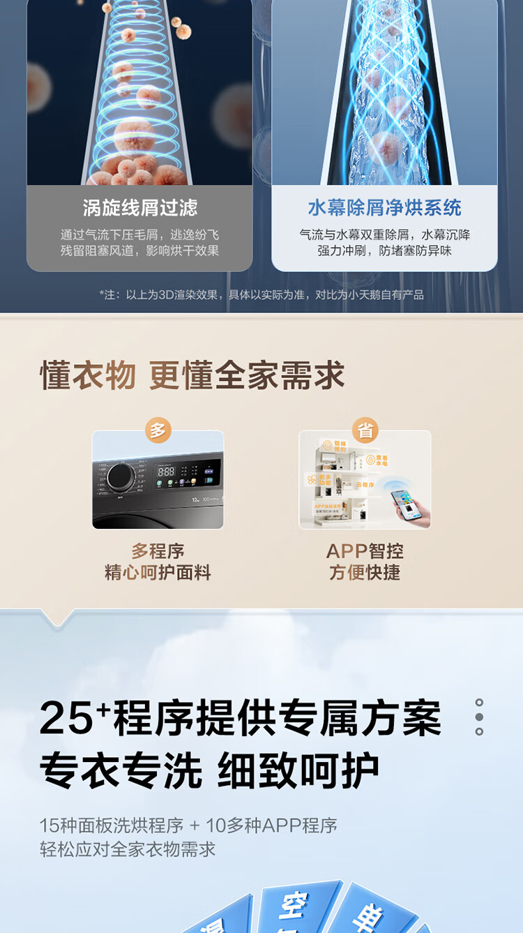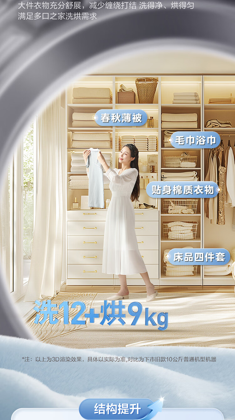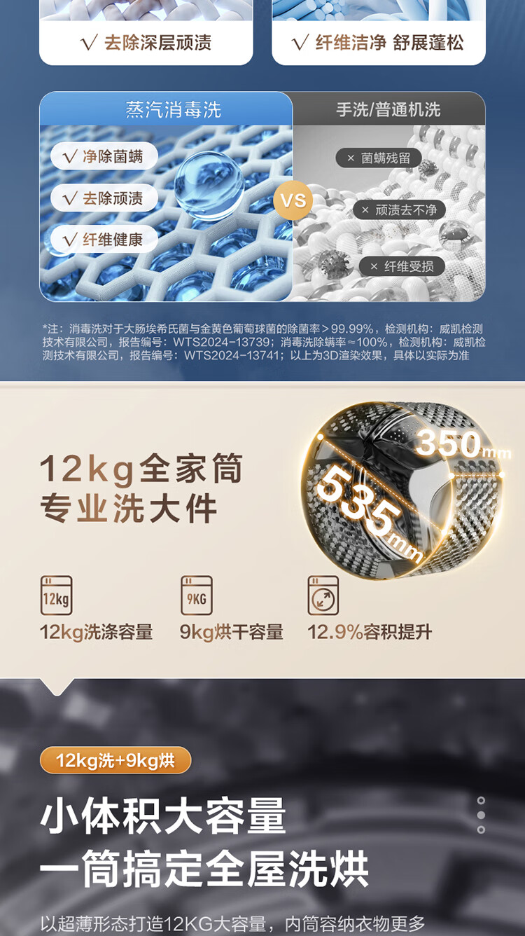 LittleSwan 12KG large-capacity fully automatic washing machine, drum washing and drying in one, home appliance subsidy, steam disinfection, warm drying, air washing, first-level energy efficiency TD120V098WDT, washing and drying in one