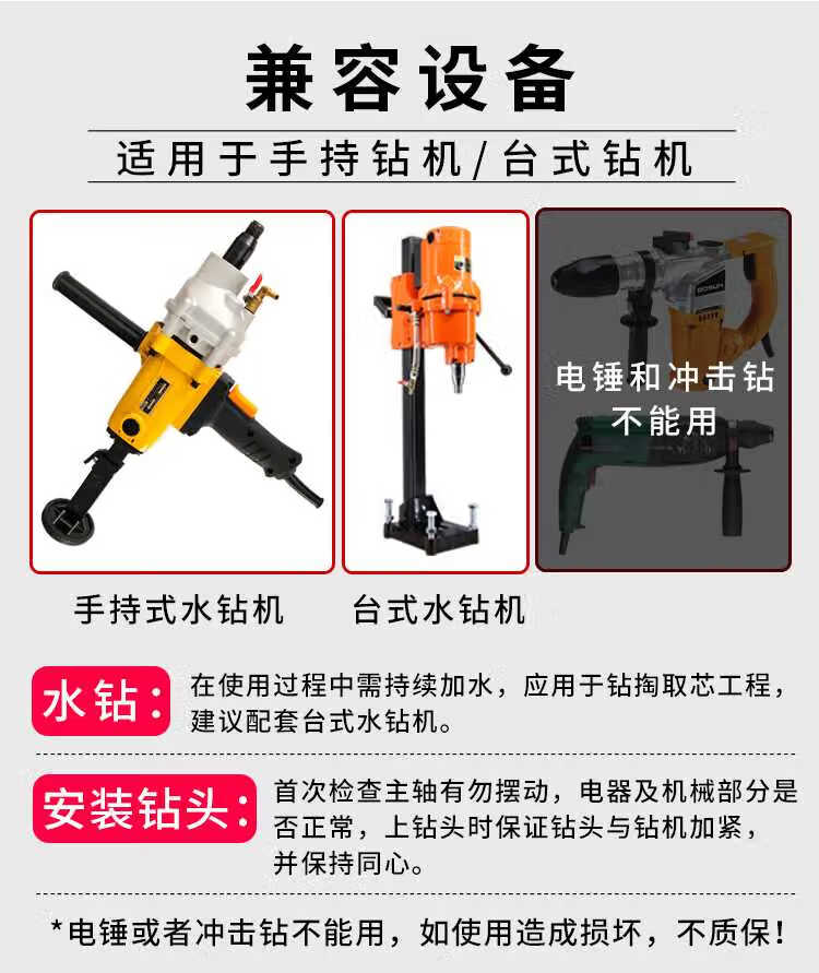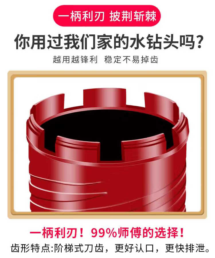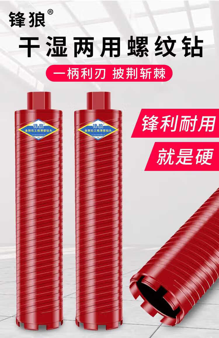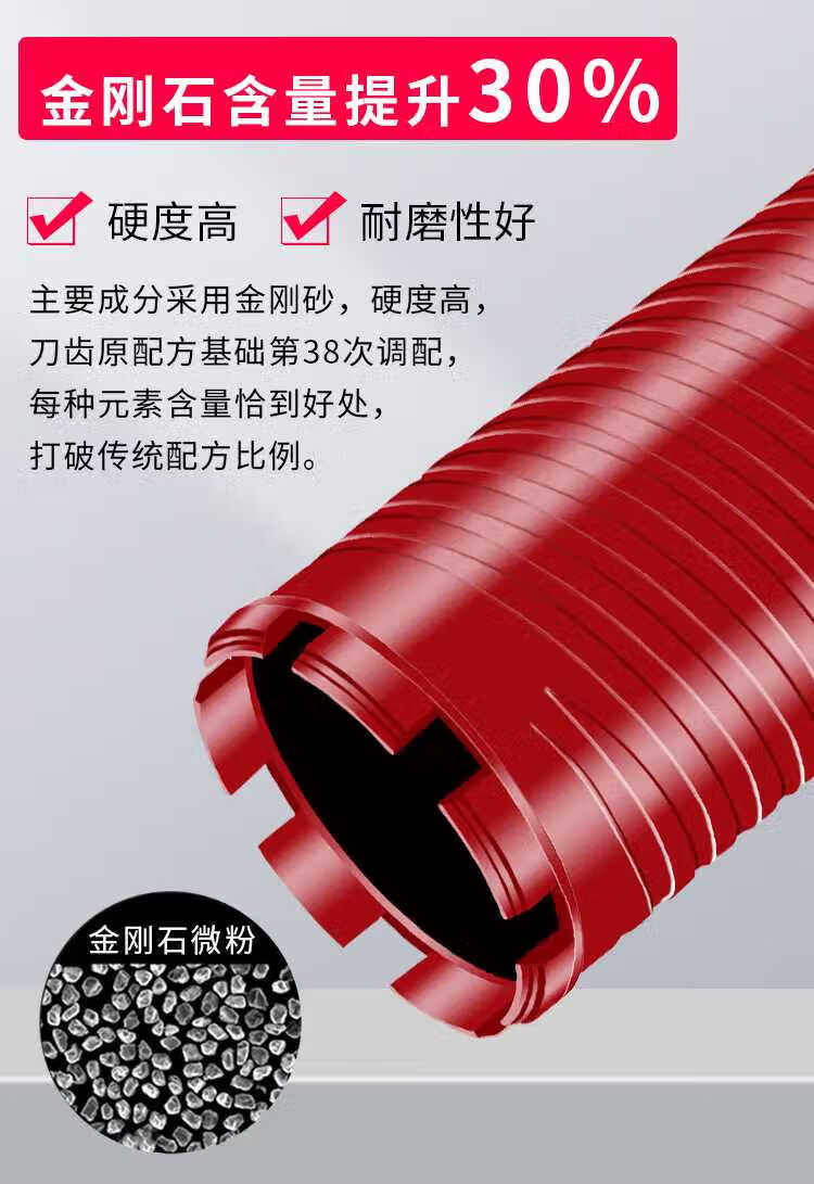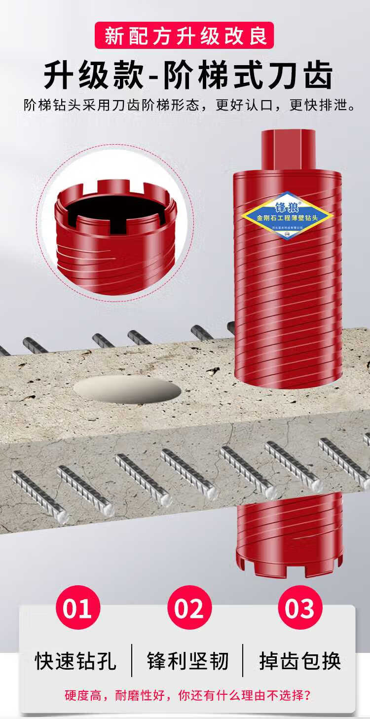 Rhinestone drill bit, wet and dry use, step tooth sharp type concrete steel bar water drilling machine fast drilling drill bit, brazed thin wall drill 76*370-dry and wet use