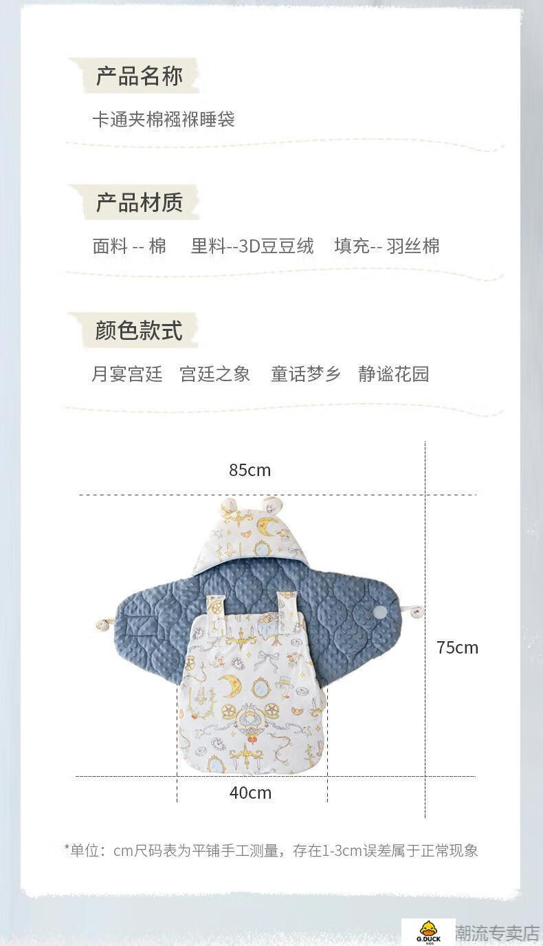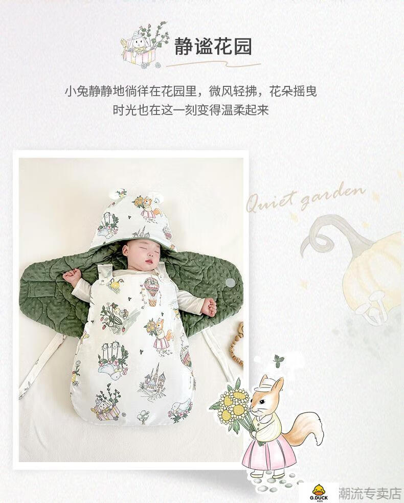 G.DUCKKIDS baby quilt autumn and winter new all-in-one sleeping bag anti-jump baby sleeping bag anti-kicking quilt Class A pure cotton Palace Image - quilted (recommended room temperature 5-15) 0-3 months