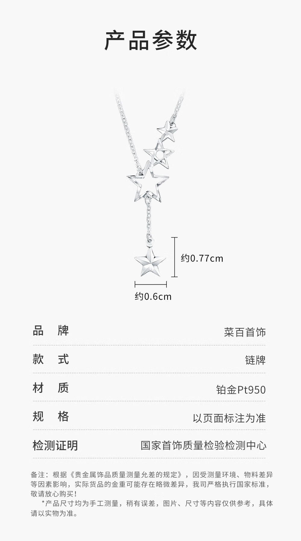 Caibai Jewelry Platinum Chain Tag Pt950 Platinum Personalized Fashion Five-Pointed Star Clavicle Chain Chain Tag Price BJ Platinum Chain Tag Approximately 2.63g Approximately 40cm