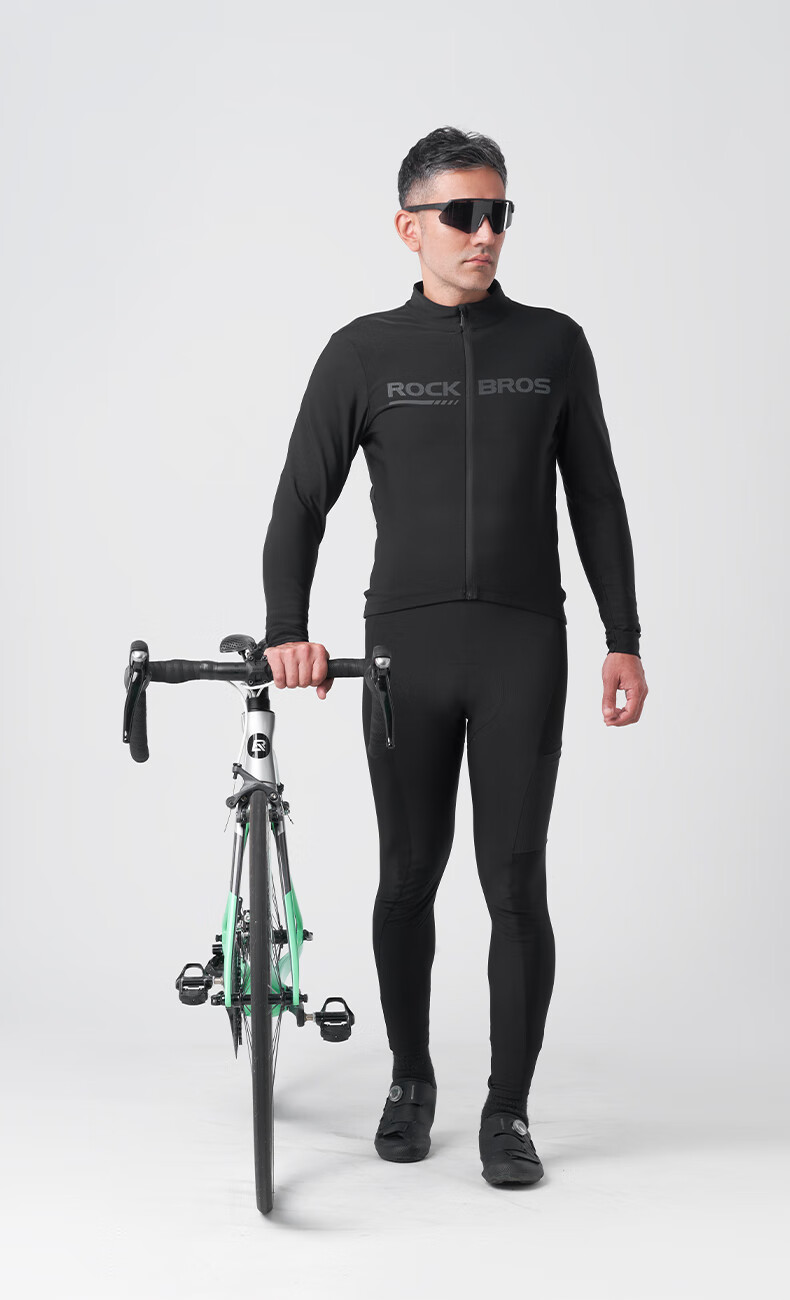 Locke Brothers Cycling Suit Winter Warm Fleece Suit Road Bike Long Sleeve Pants Men's and Women's Autumn and Winter Cycling Suit Snow+Koehler Thickened Top Fleece Suit Black XL
