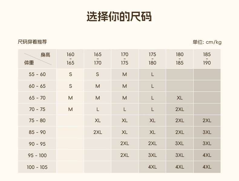 China (cm) 165 / 88-90 170 / 96-98 175 / 108-110 180 / 118-122 185 / 126-130