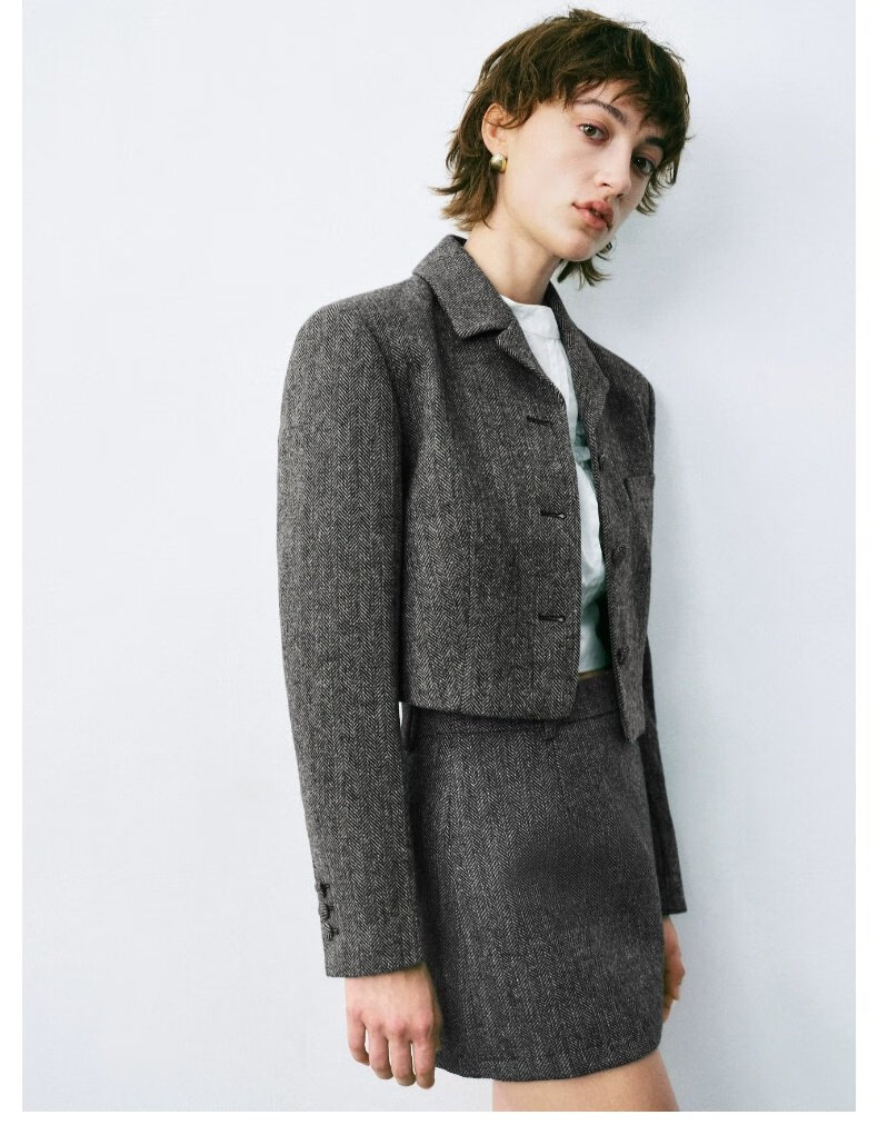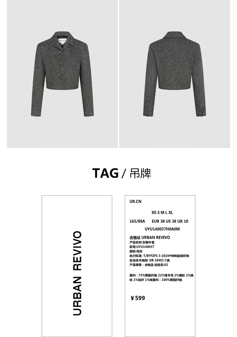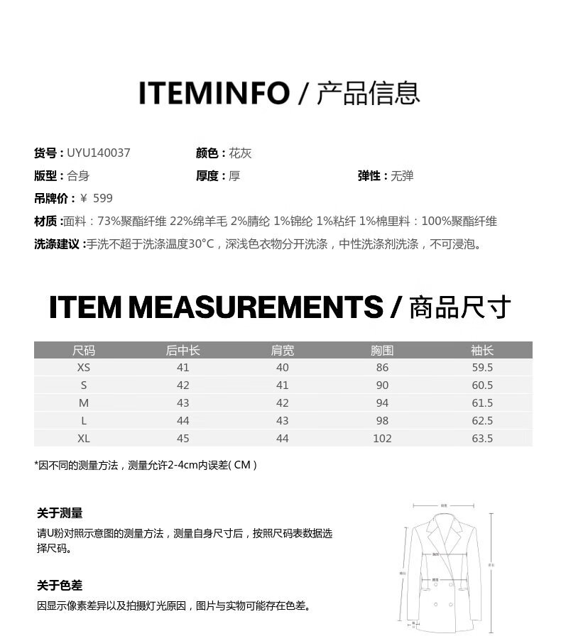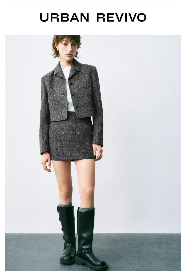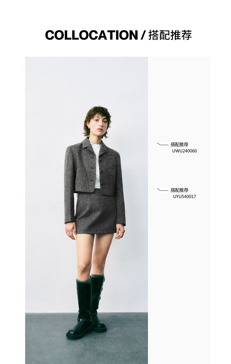 UR new autumn and winter women's gray high-intelligence buckle short suit jacket UYU140037 floral gray XS