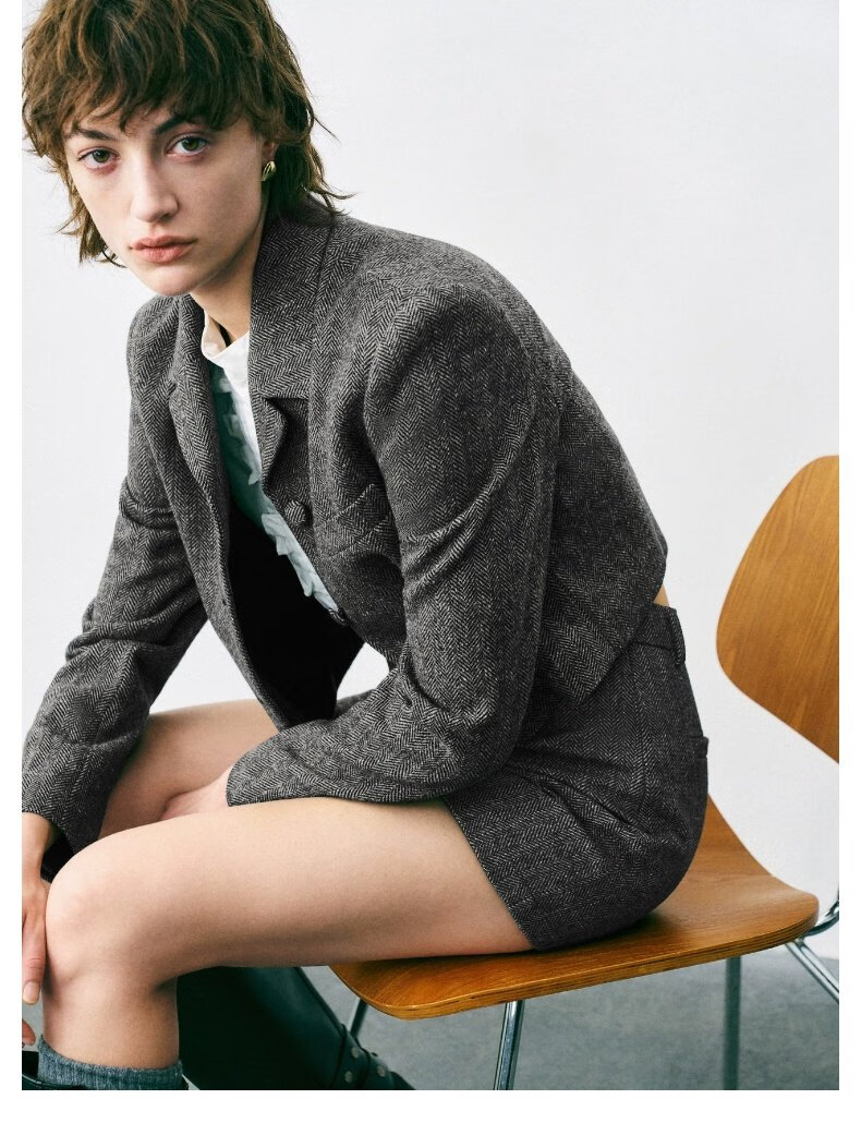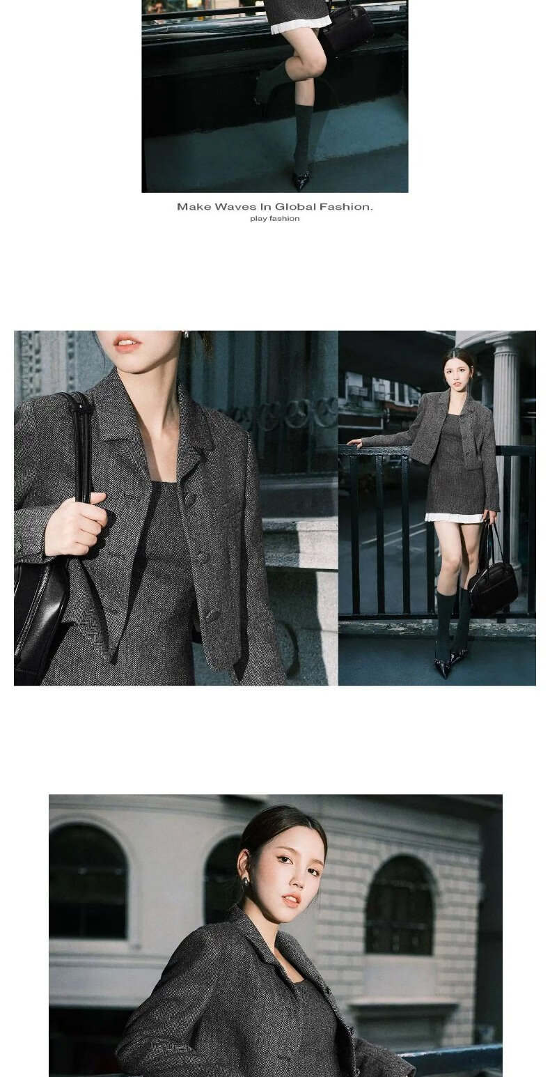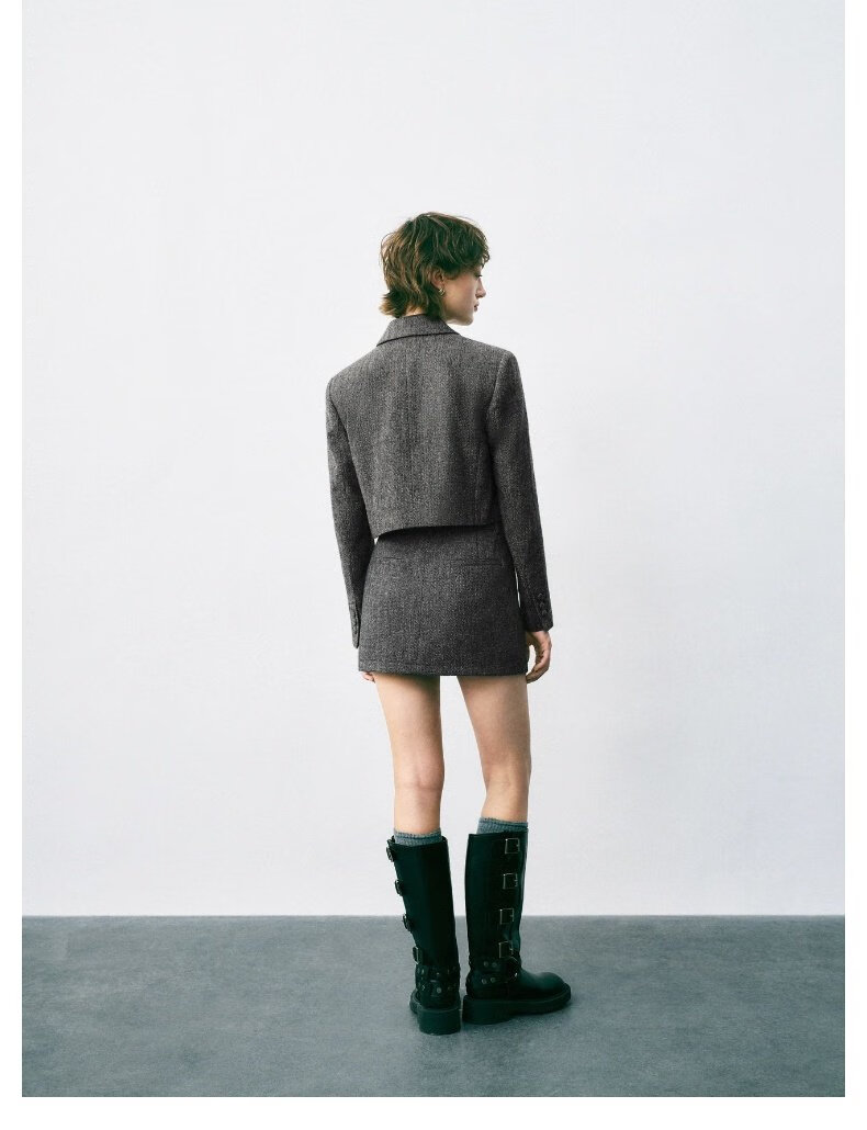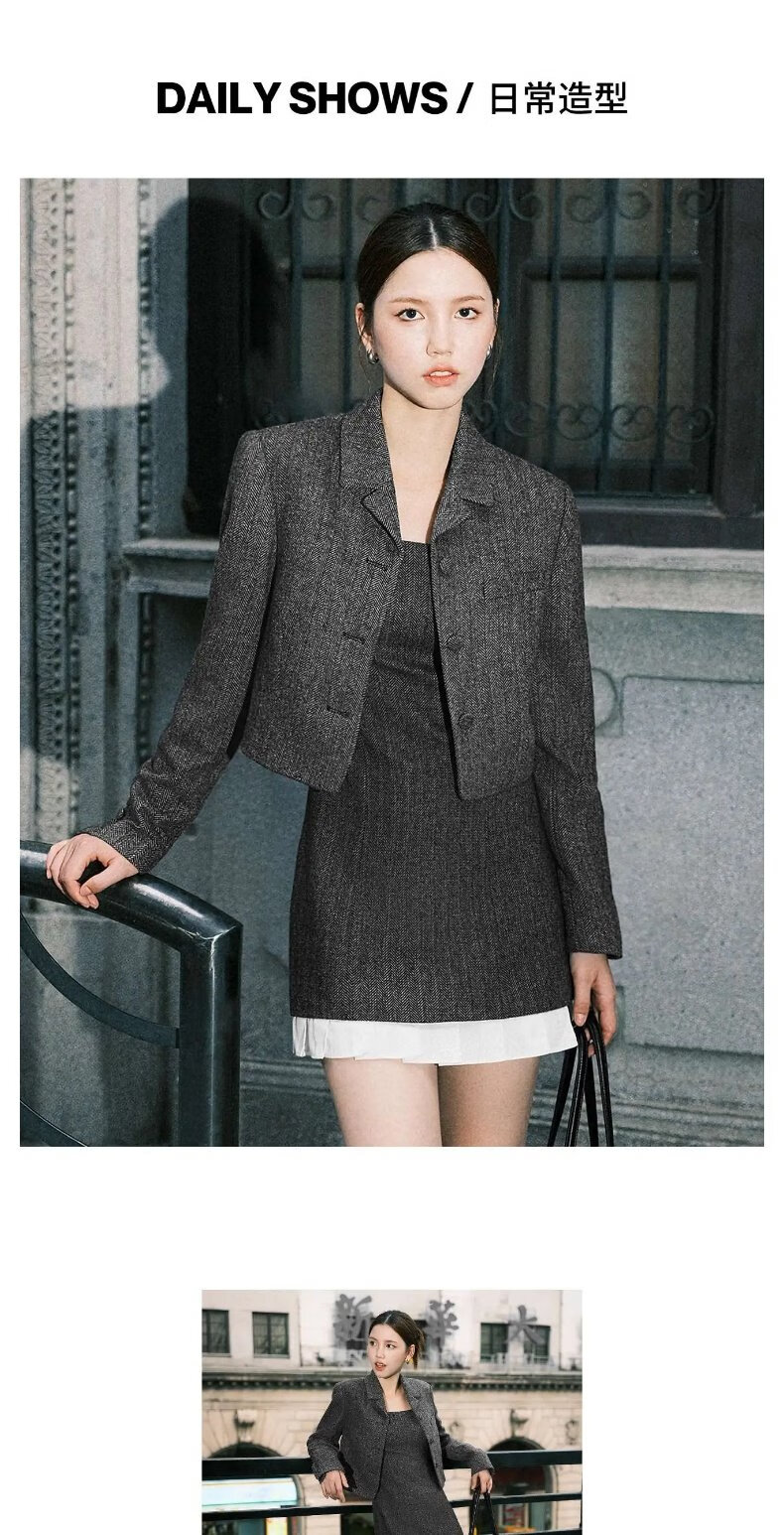 UR new autumn and winter women's gray high-intelligence buckle short suit jacket UYU140037 floral gray XS