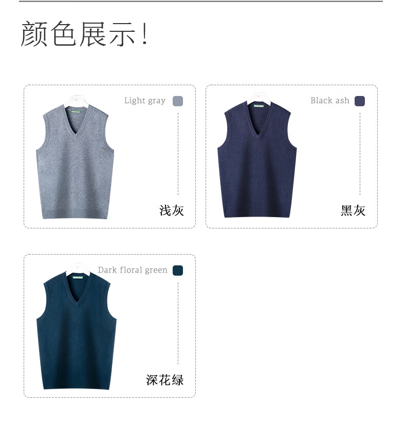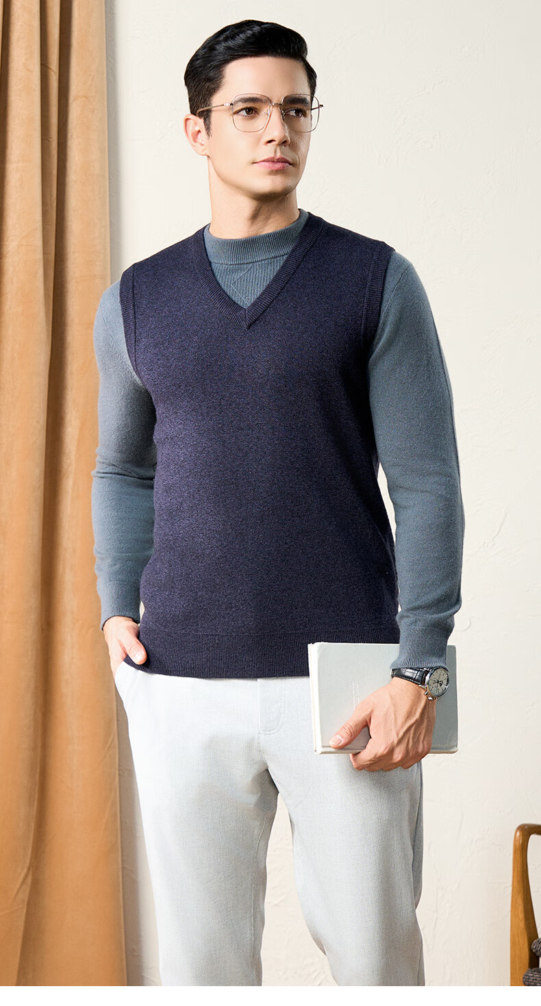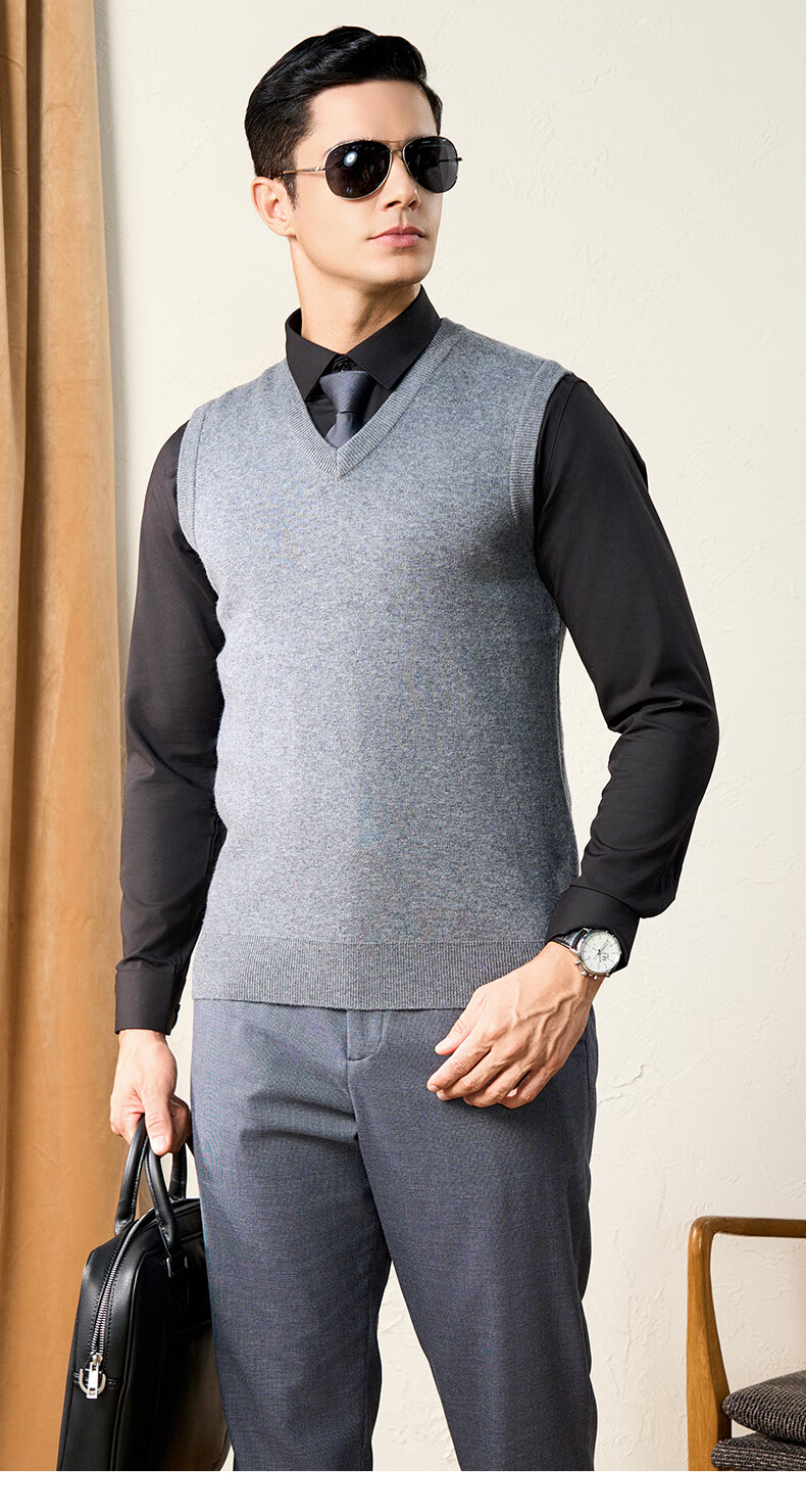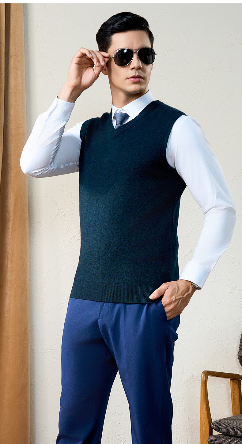 Chunzhu 100% pure wool vest men's business casual commuting sleeveless vest warm base knitted V-neck vest dark floral green M (105CM)