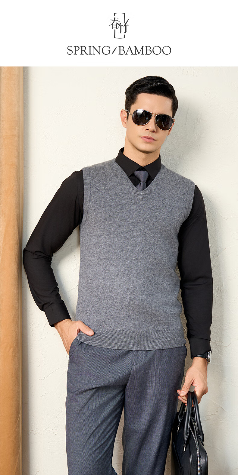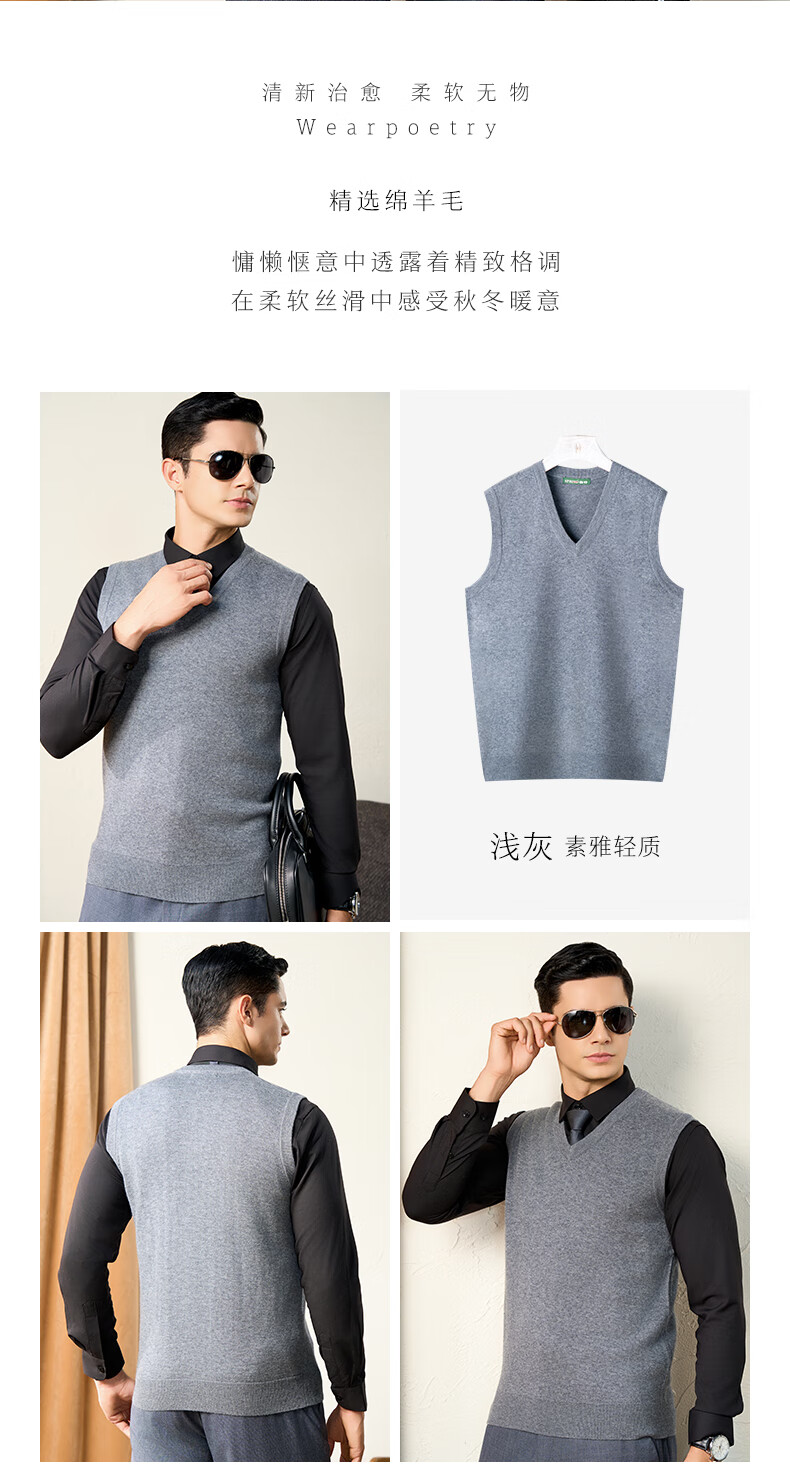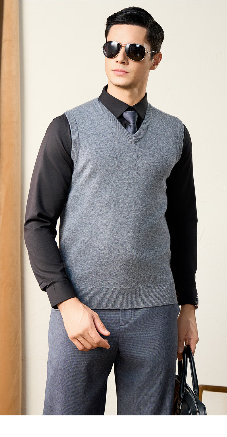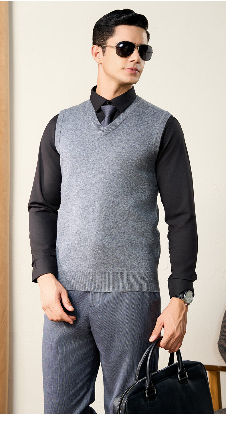 Chunzhu 100% pure wool vest men's business casual commuting sleeveless vest warm base knitted V-neck vest dark floral green M (105CM)