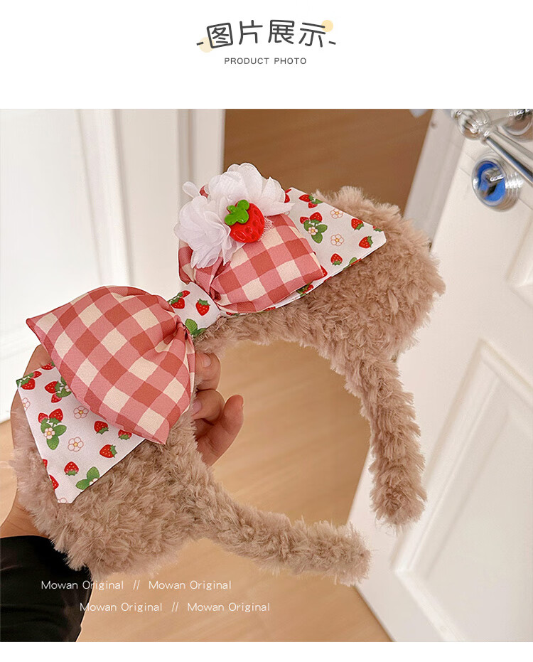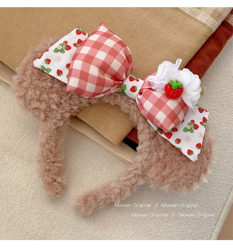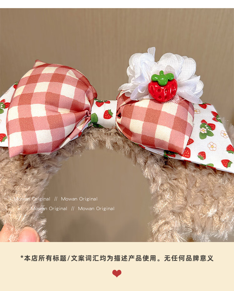 Morning Star Cute Bow Strawberry Plush Disney Headband Women's 2025 New Outing Versatile High Headband Hairpin Strawberry Shirley Rose Hairband