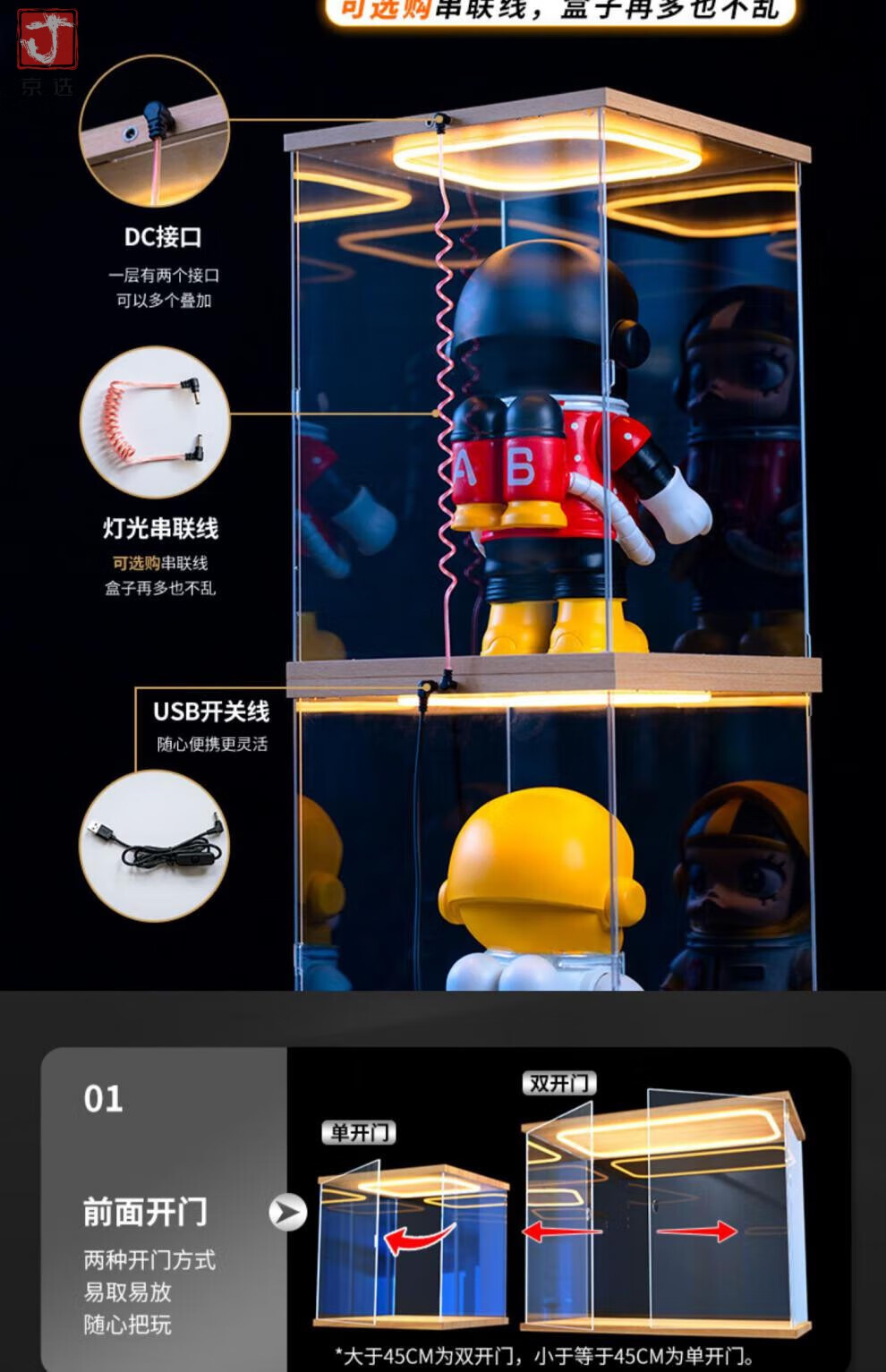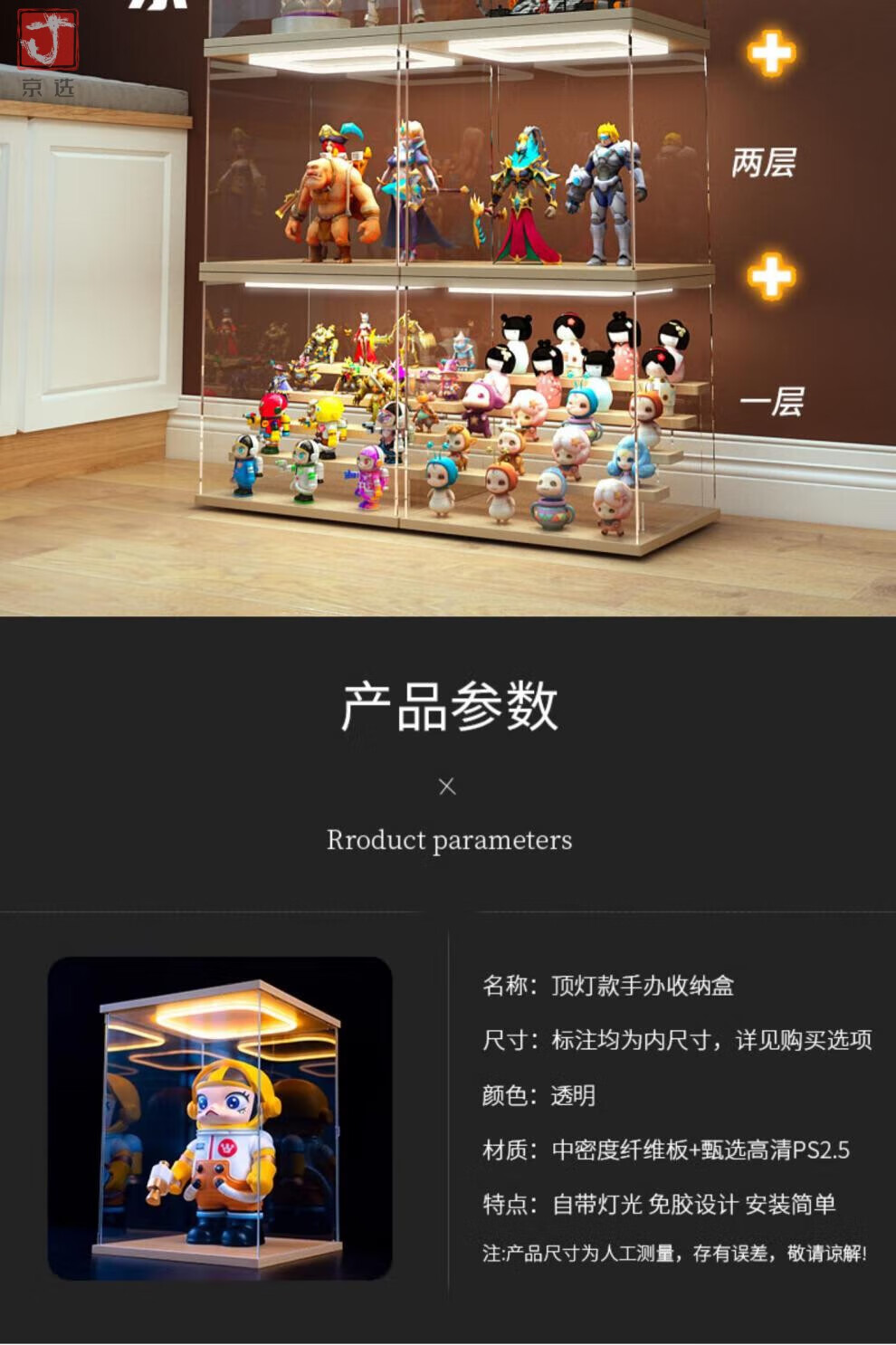 Back-shaped light acrylic display box suitable for LEGO model building blocks, anime figures, dust cover storage box Back-shaped light display box 10cm 10cm 10cm (height*length*width)