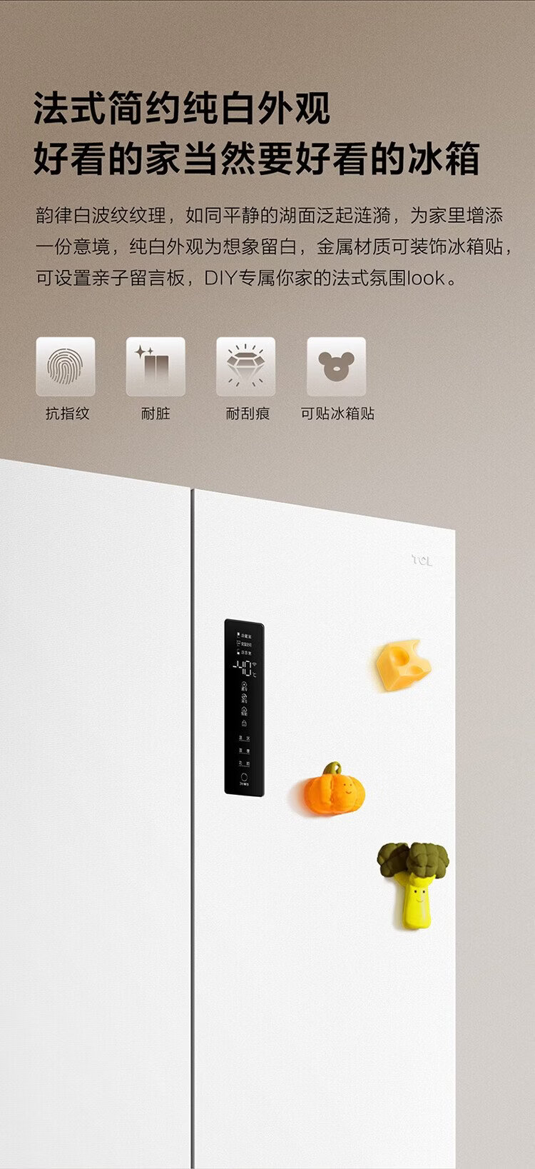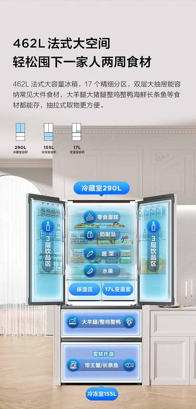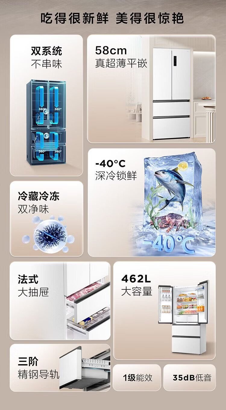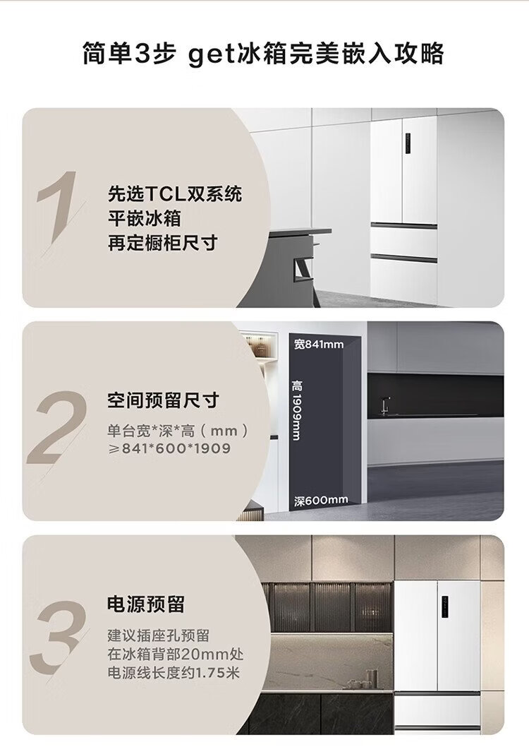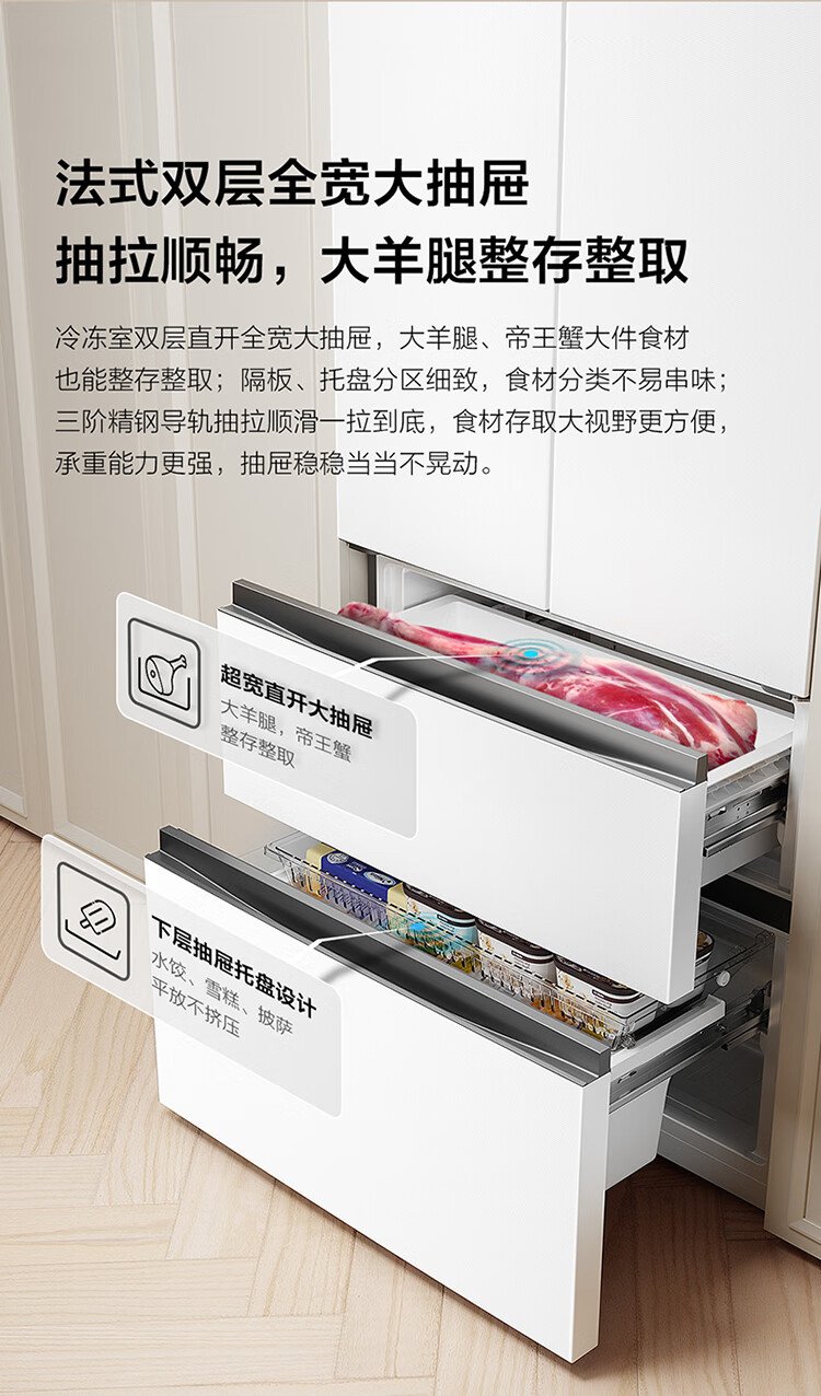 TCL Big Unbounded 462-liter T9 Pro French multi-door four-door 58cm ultra-thin zero-embedded dual system dual cycle household refrigerator first-class energy efficiency trade-in R462T9-DQS Rhythm White