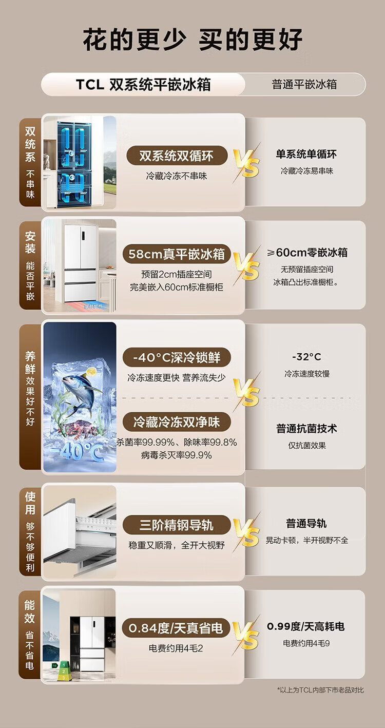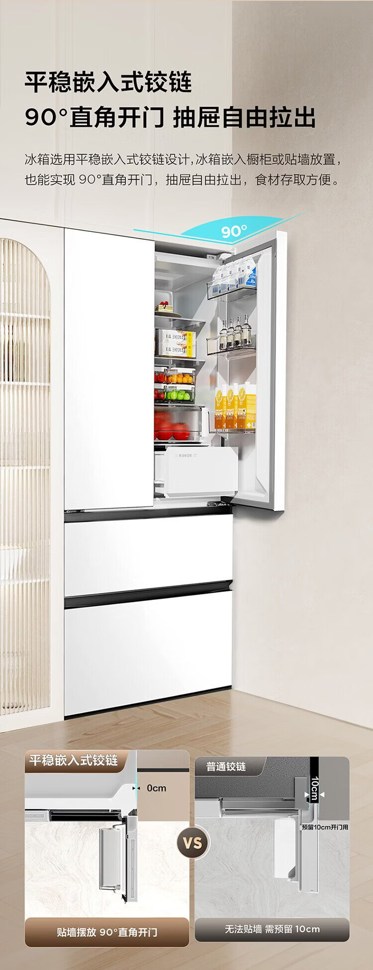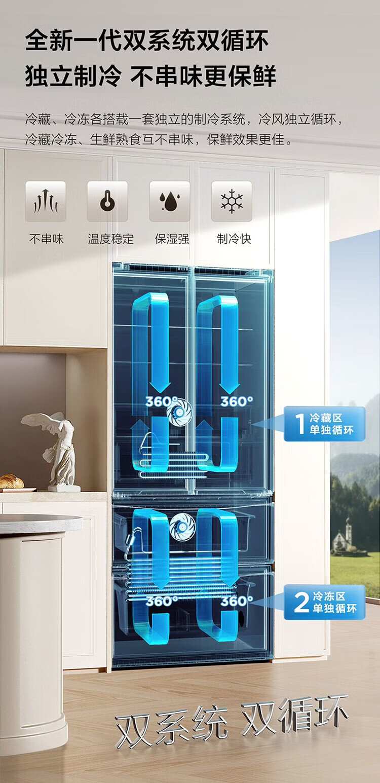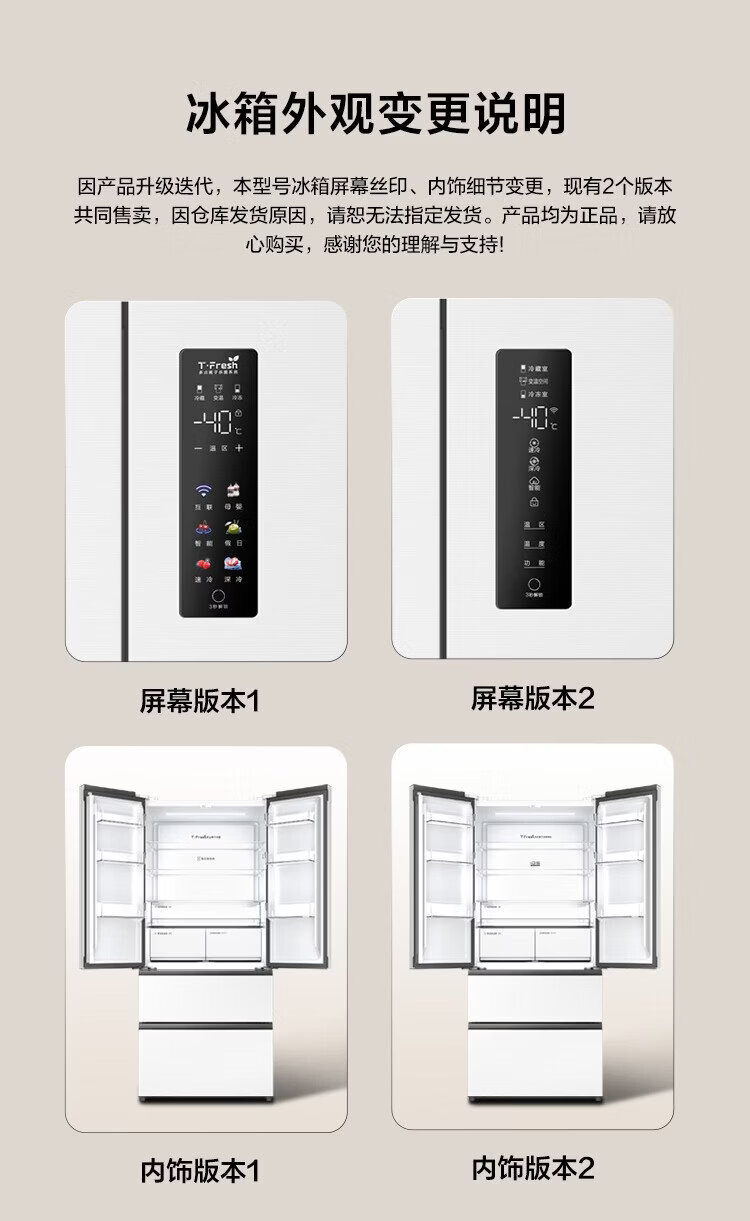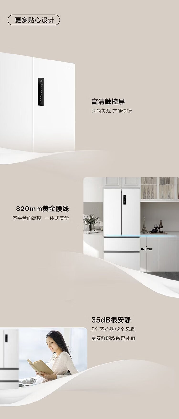 TCL Big Unbounded 462-liter T9 Pro French multi-door four-door 58cm ultra-thin zero-embedded dual system dual cycle household refrigerator first-class energy efficiency trade-in R462T9-DQS Rhythm White