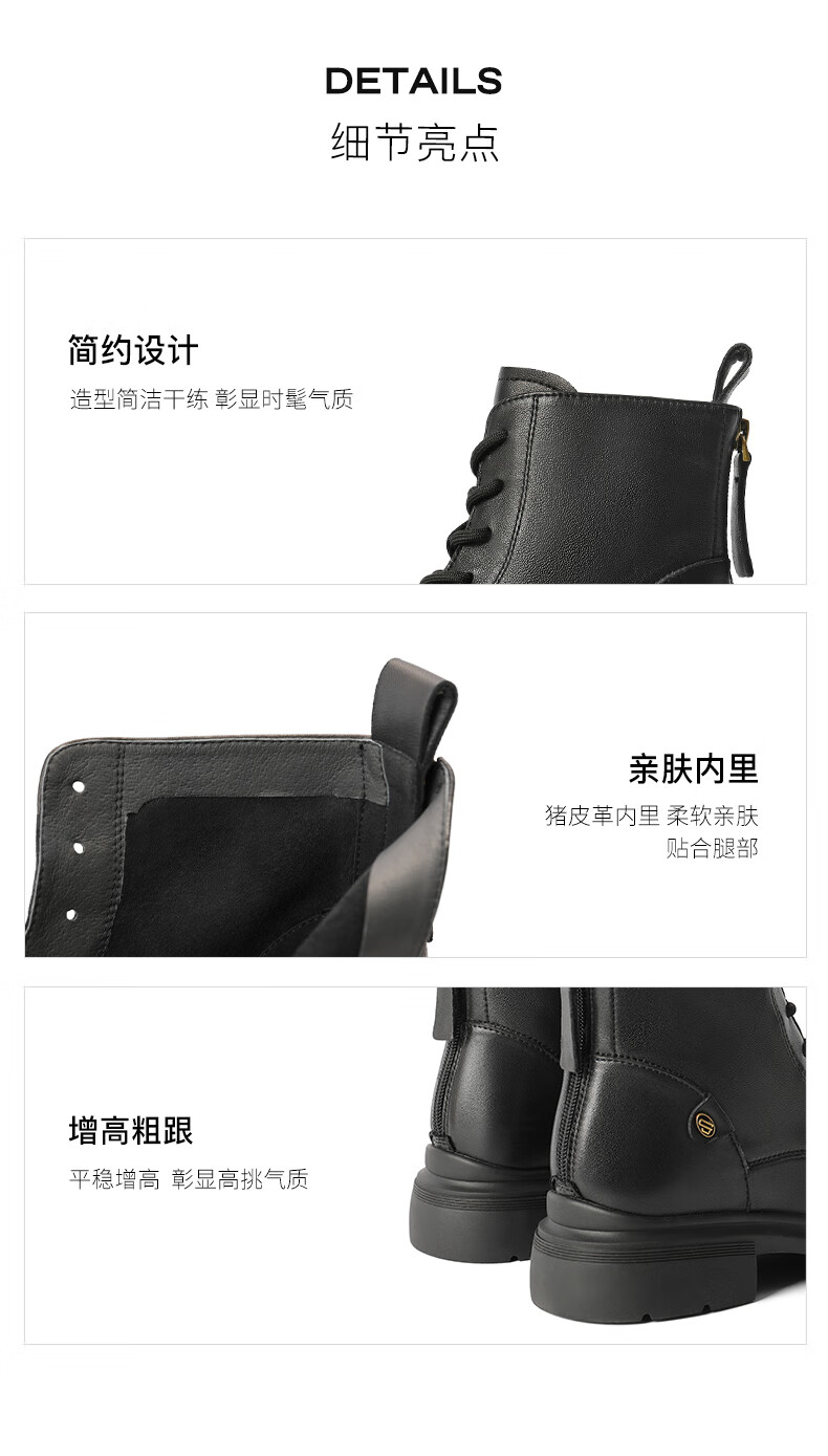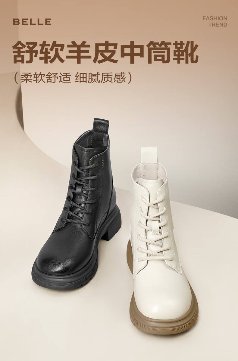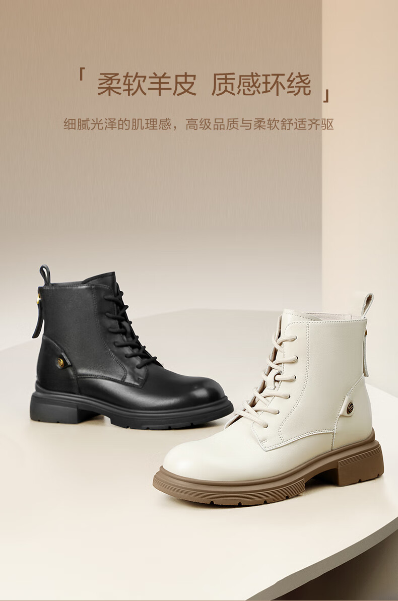 Belle Comfortable Martin Boots Women's Winter New Shopping Mall Sheepskin Fashion Boots B7E2DDD4 Black - Velvet Lining 40 (250mm)