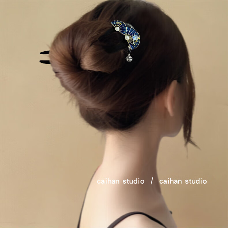 Antime ethnic style ebony hairpin new Chinese style retro fairy hairpin headdress U-shaped hairpin fairy hairpin 1# ebony hairpin (double fan pendant bell)